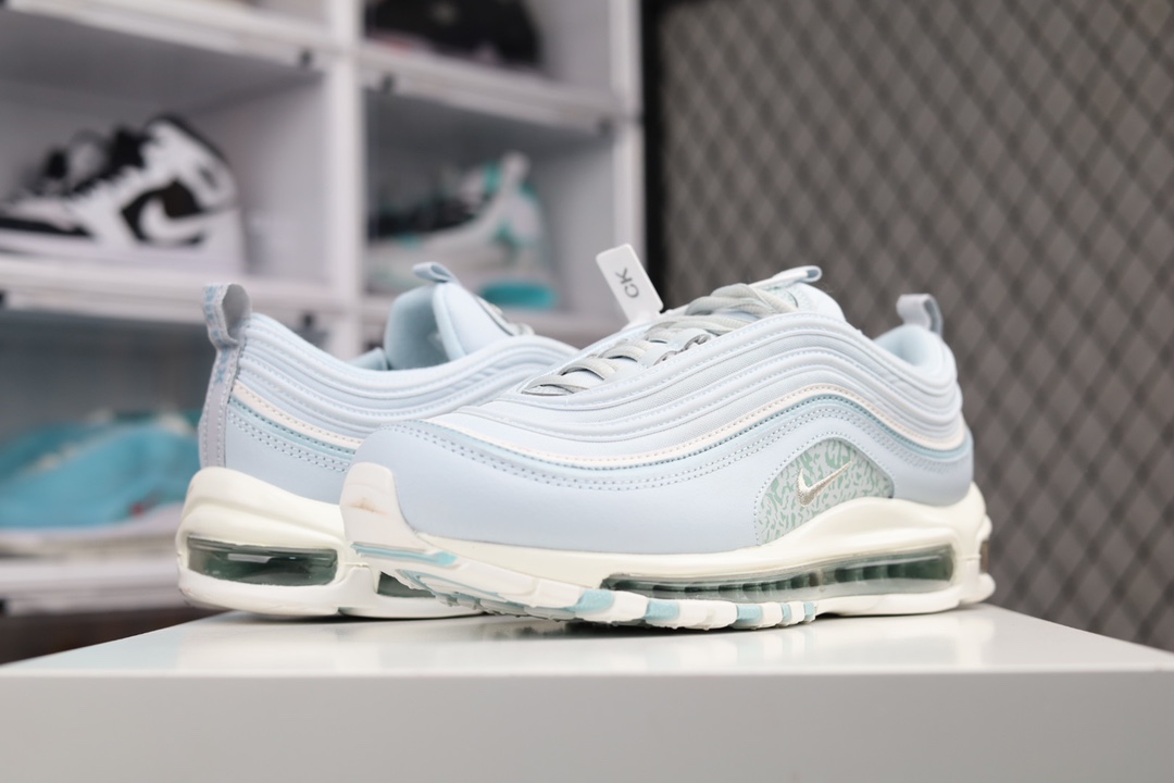 H0 Nk Air Max 97 SE 暗光蓝 子弹气垫运动跑步鞋 DJ5434- K0 整双鞋以浅蓝色装扮与鞋身线条完美结合,速度感十足,鞋侧点缀类似迷彩图案,鞋舌 Logo、鞋面覆盖 3M 反光,在暗光下十分吸睛×885XQ