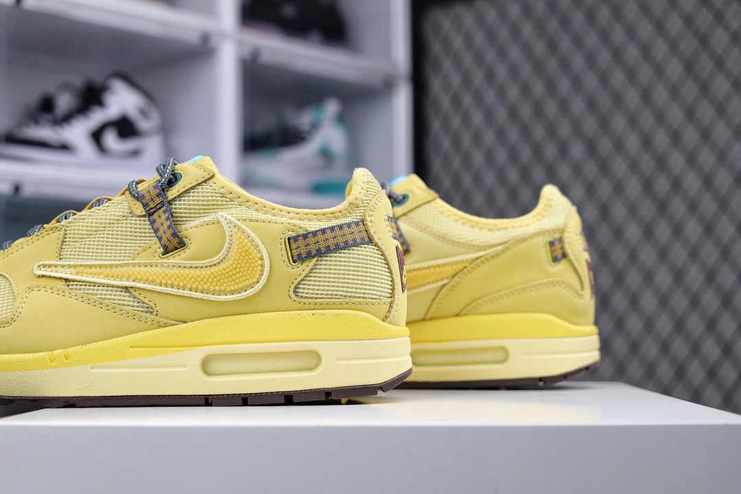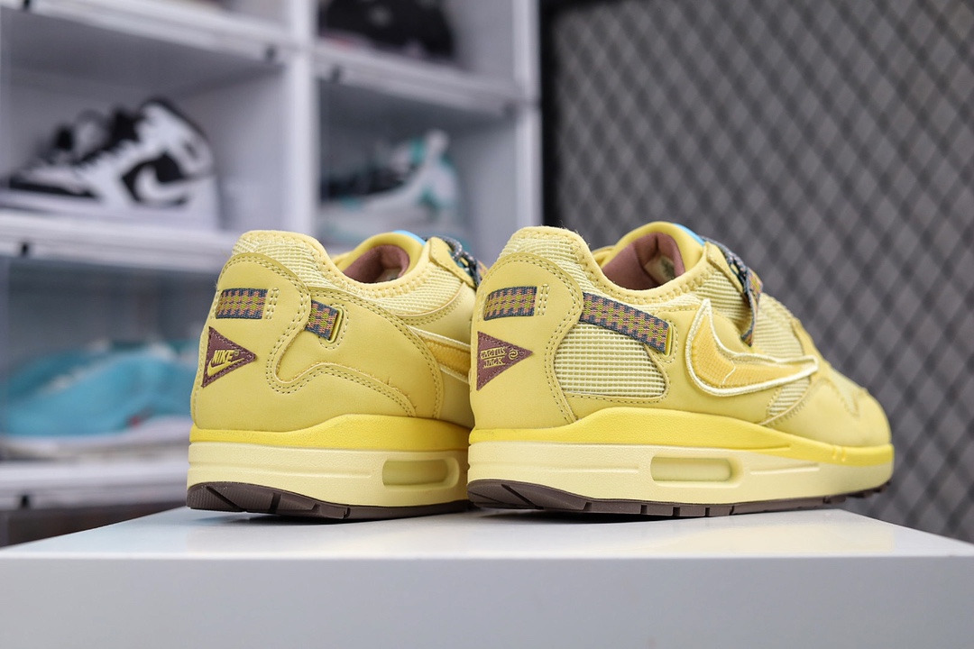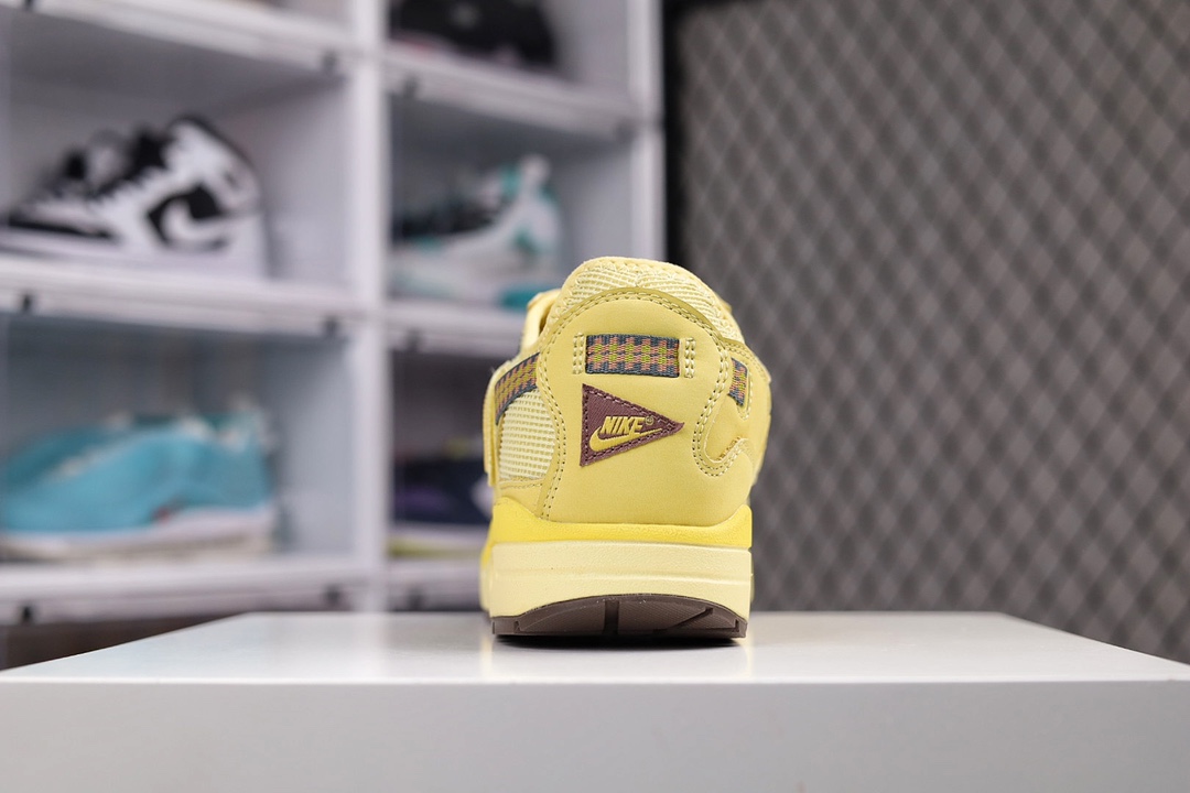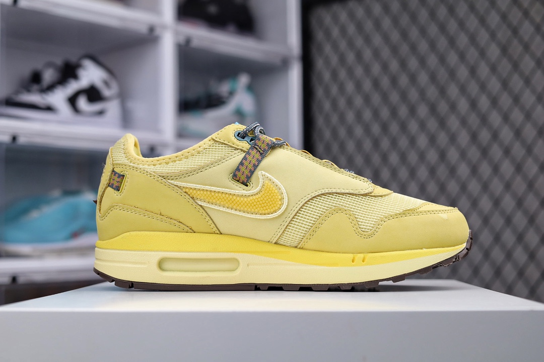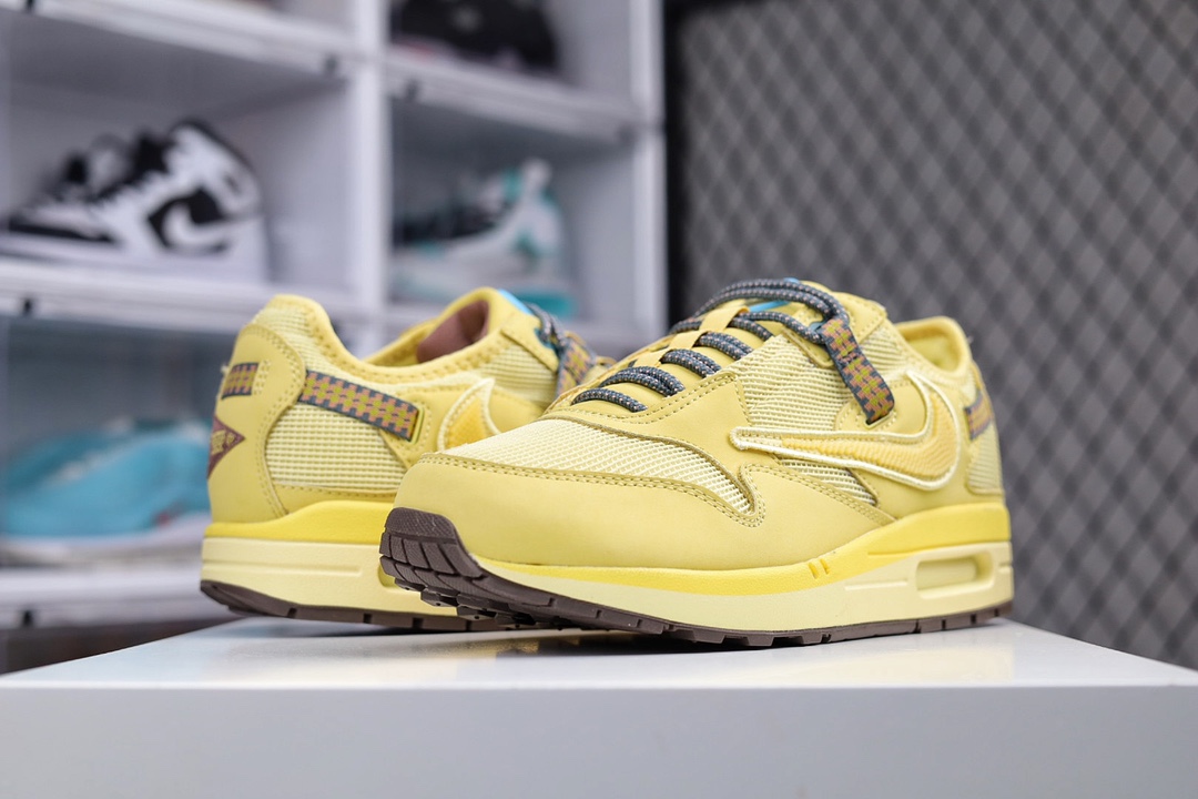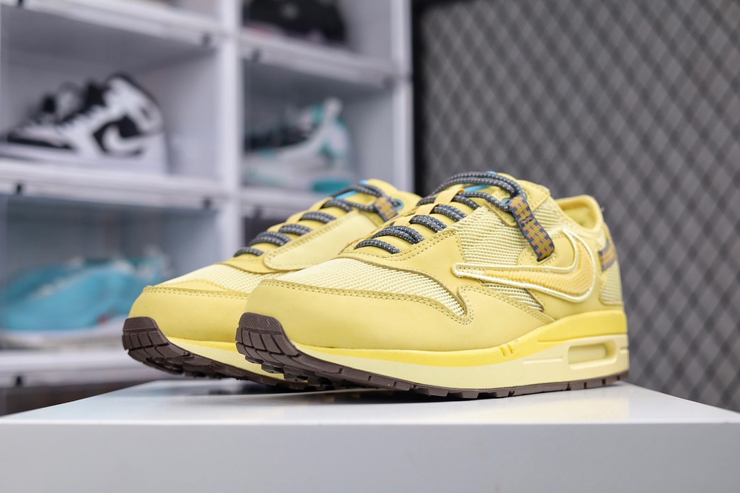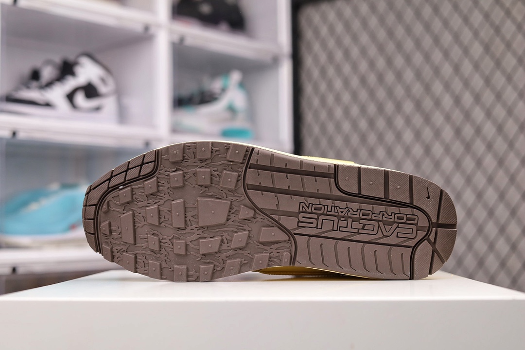 H0 Travis Scott x NK Air Max 1 “Cactus Jack” 重磅联名 棕黄 鞋款采用棕色及乳白色打造鞋面,在鞋款前后部分皆包裹有咖啡色护边。鞋侧的 Swoosh 依旧进行了倒置处理,也是 Travis Scott 的标志性设计。鞋款后跟处点缀有三角形 Logo,鞋底部分采用黄色搭配深色外底打造。鞋舌、鞋跟均有彰显联名身份的图案装点,材质上则是尼龙网面、磨砂皮革等组合而成,质感、细节均有着不错的表现×558XQ