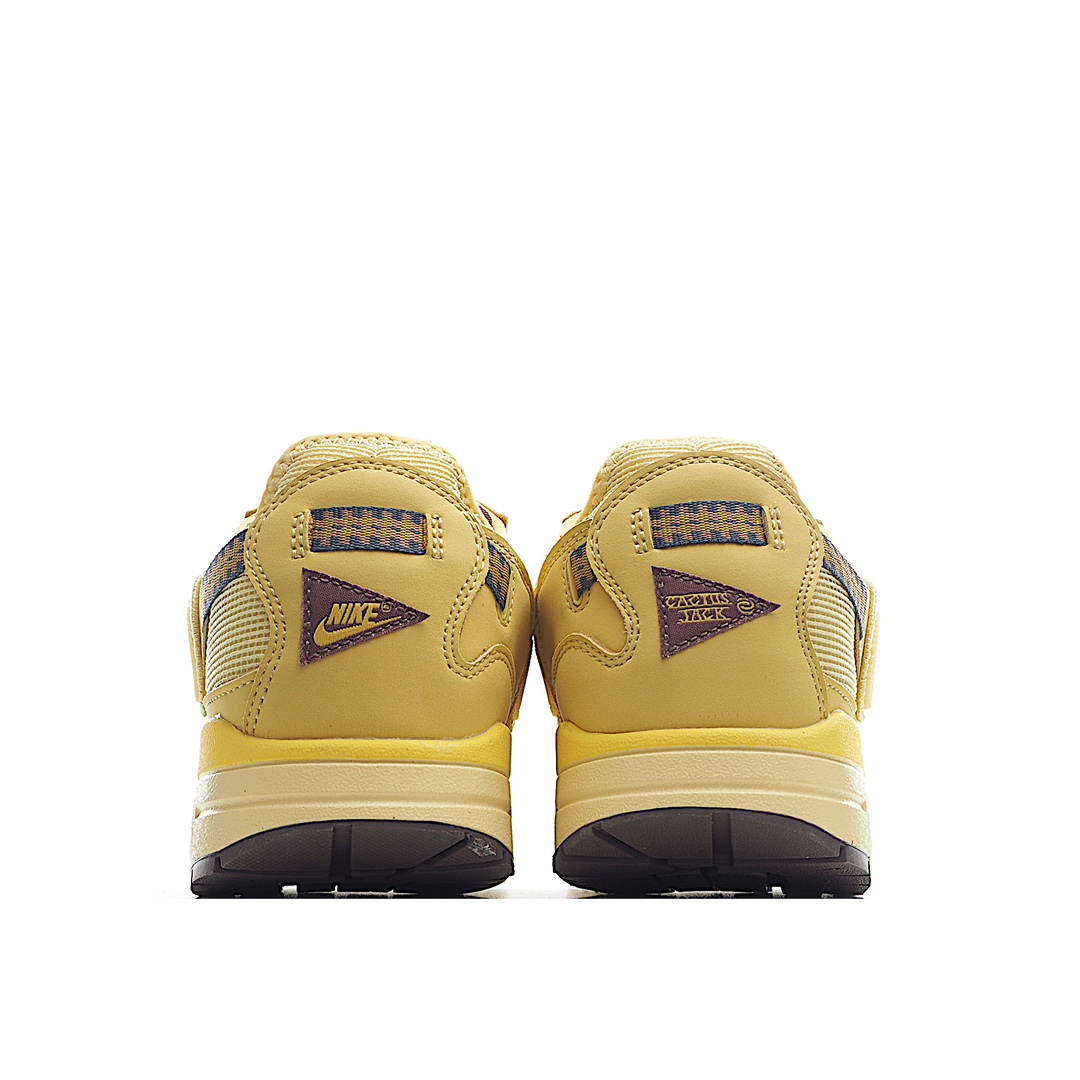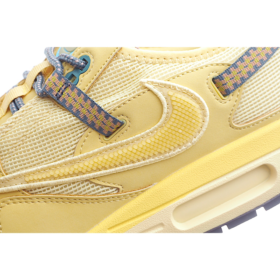 H5 新「倒钩」来了,再度重磅联乘当红说唱歌手·特拉维斯·斯科特Travis Scott x Nike Air Max 1″ Wheat/Lemon”改版款低帮复古百搭休闲运动慢跑鞋“柠檬黄做旧倒钩”DO9392- F5 0全新原楦原纸版数据开发升级回弹PU缓震中底材质全新独家开模底纹橡胶鞋底