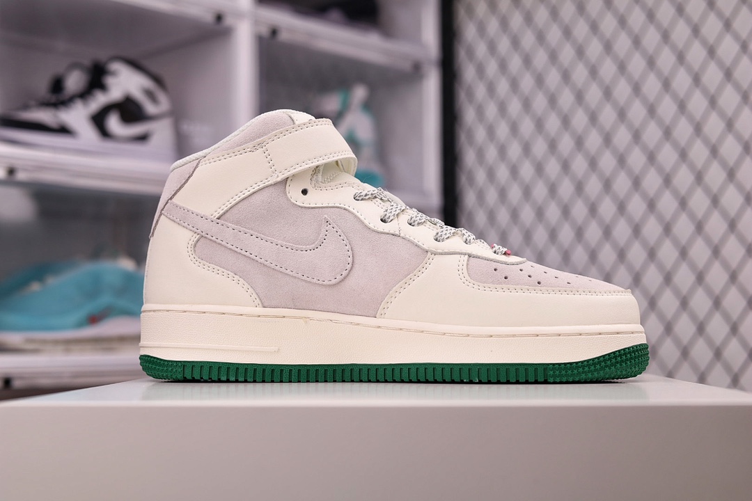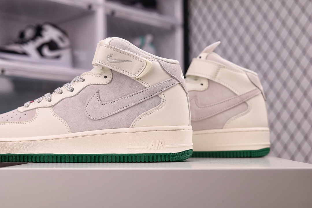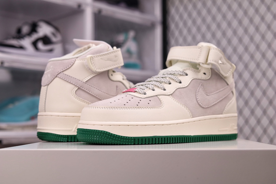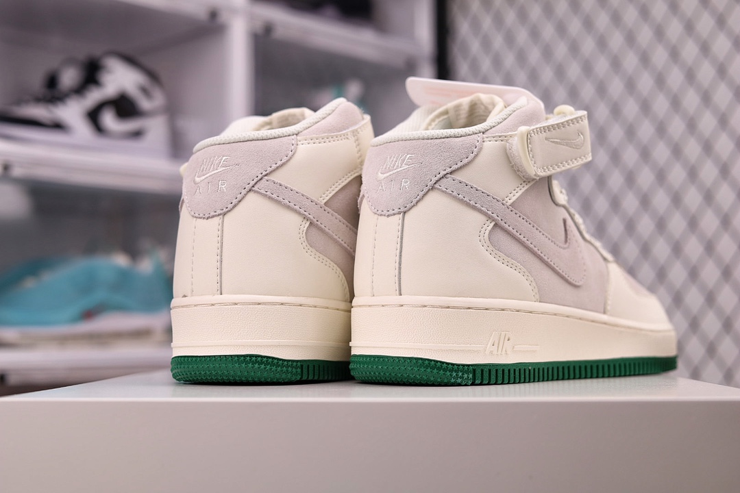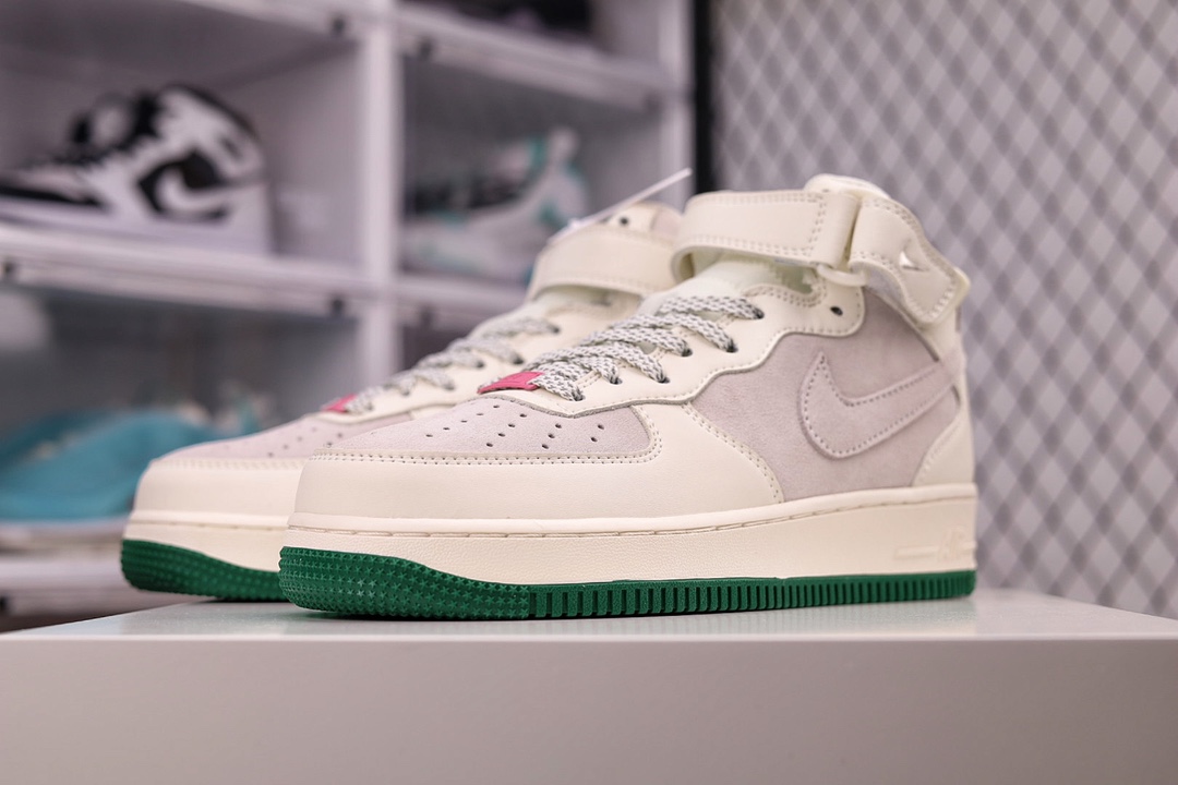 H5 空军 中帮 麂皮 米白色 3M反光 Nike Air Force 1‘07 Mid原楦头原纸板 打造纯正空军版型专注外贸渠道 全掌内置蜂窝气垫 原盒配件 原厂中底钢印、拉帮完美