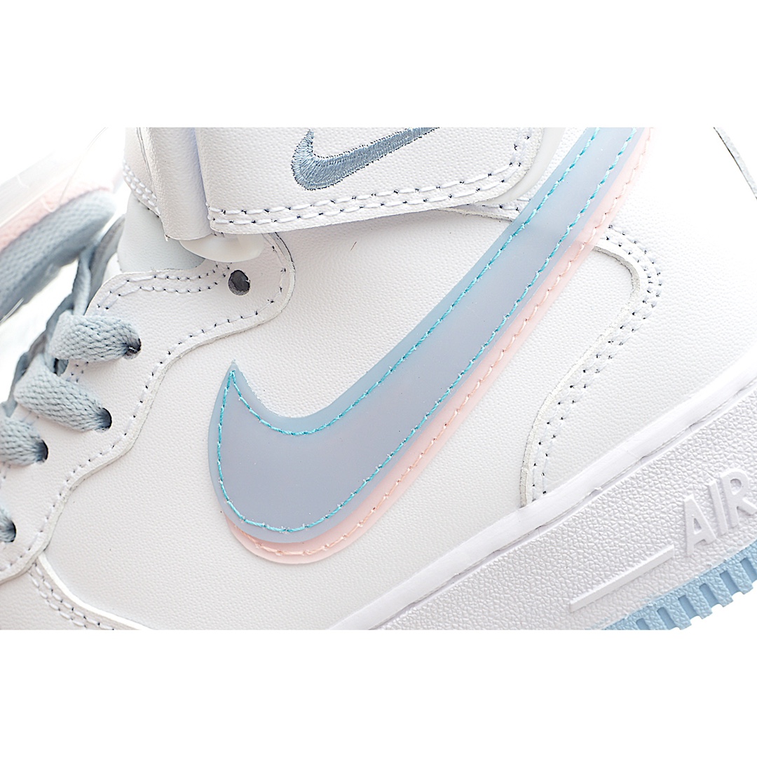 H5 Air Force 1 mid White pink blue 双勾蓝粉🍑空军一号中帮 CW1574- F5 双勾搭配上经典的蓝本AF1 桃蓝之间的碰撞非常和谐 女神年底一定来一双