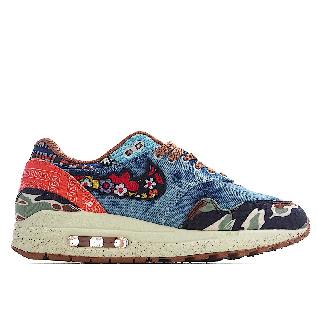 H5 Concepts x NK Air Max 1 波士顿潮店联名 虎纹迷彩 货号:DN H0 3- F5 0 鞋型上采用经典 Air Max 1 整体大面积色彩应用十分抢眼 同时鞋面采用单宁材质以及帆布材质 承袭了一贯的高规格 独特的图腾花纹以及兽纹 让本就丰富的鞋面层次感更足 Swoosh Logo 上采用另类的花卉组成 增添了更多的可爱元素 后跟部分的刺绣字样 还可看出带有解构风格的线头 中底气垫开窗位置还带有泼墨点缀 搭配上经典的外底纹路 完善整双鞋的设计。SIZE:36 36.5 37.5 38 38.5 39 40 40.5 41 42 42.5 43 44 44.5 45 编码:237697mswr