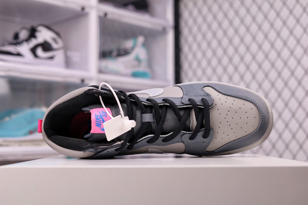 H5 Nike Dunk SB High 灰白 中帮百搭休闲板鞋 大厂纯原出品 实拍首发原装头层材料 独家版型蒸餾加工帶來的是更好的视觉和脚感体验大厂纯原品质出货 清洁度 电绣工艺 皮料切割干净无任何毛边 细节完美