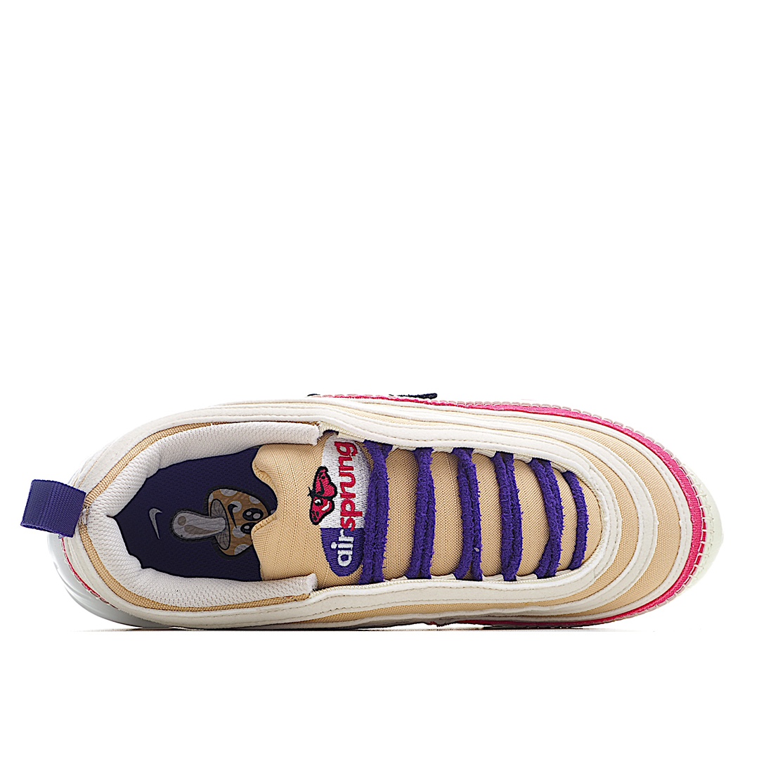 H5 NK Air Max 97 Air Sprung “Iron Grey” 米紫刺绣 子弹气垫运动跑步鞋 以铁灰、微粒灰、亮黄与蓝色帆布、皮革拼接鞋面 鞋侧的毛毛虫缠绕 Swoosh Logo 以及左右鞋舌带有 “Air Sprung”字样、蝴蝶和毛毛虫以趣味的图案呈现 演绎美好春日细节 助你打造耳目一新的出众风格。