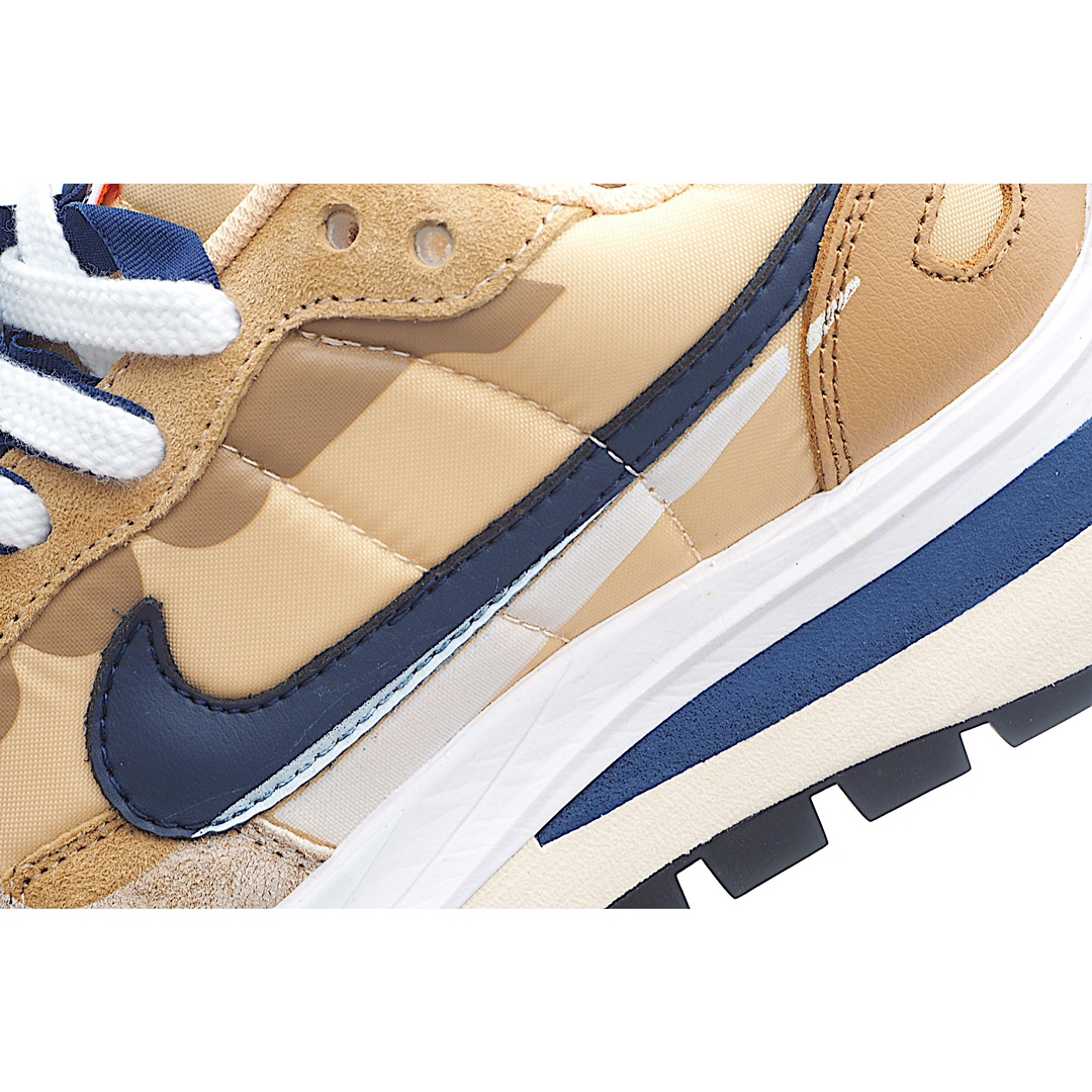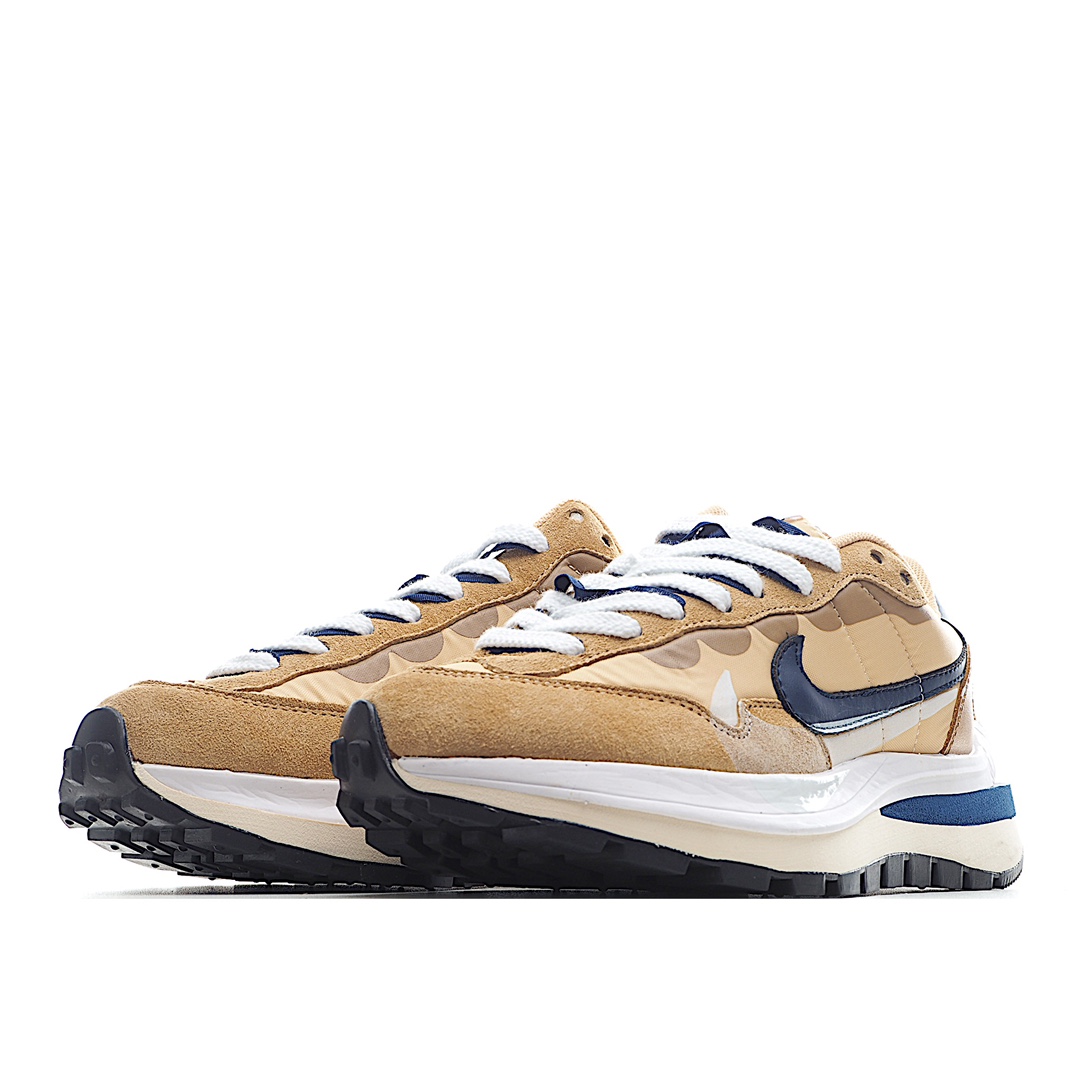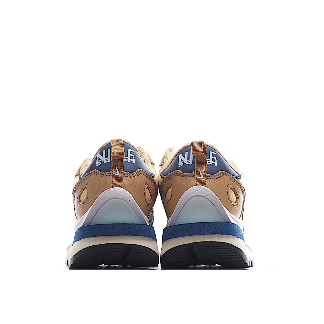 H5 Sacai x NK VaporWaffle 人气单品 整双鞋依旧采用复古老爹鞋廓形,上脚既有跑鞋的利落感,又有老爹鞋的层次感。鞋面一改以往的网眼设计,取而代之的是尼龙和翻毛皮革的搭配,质感来说更加高级