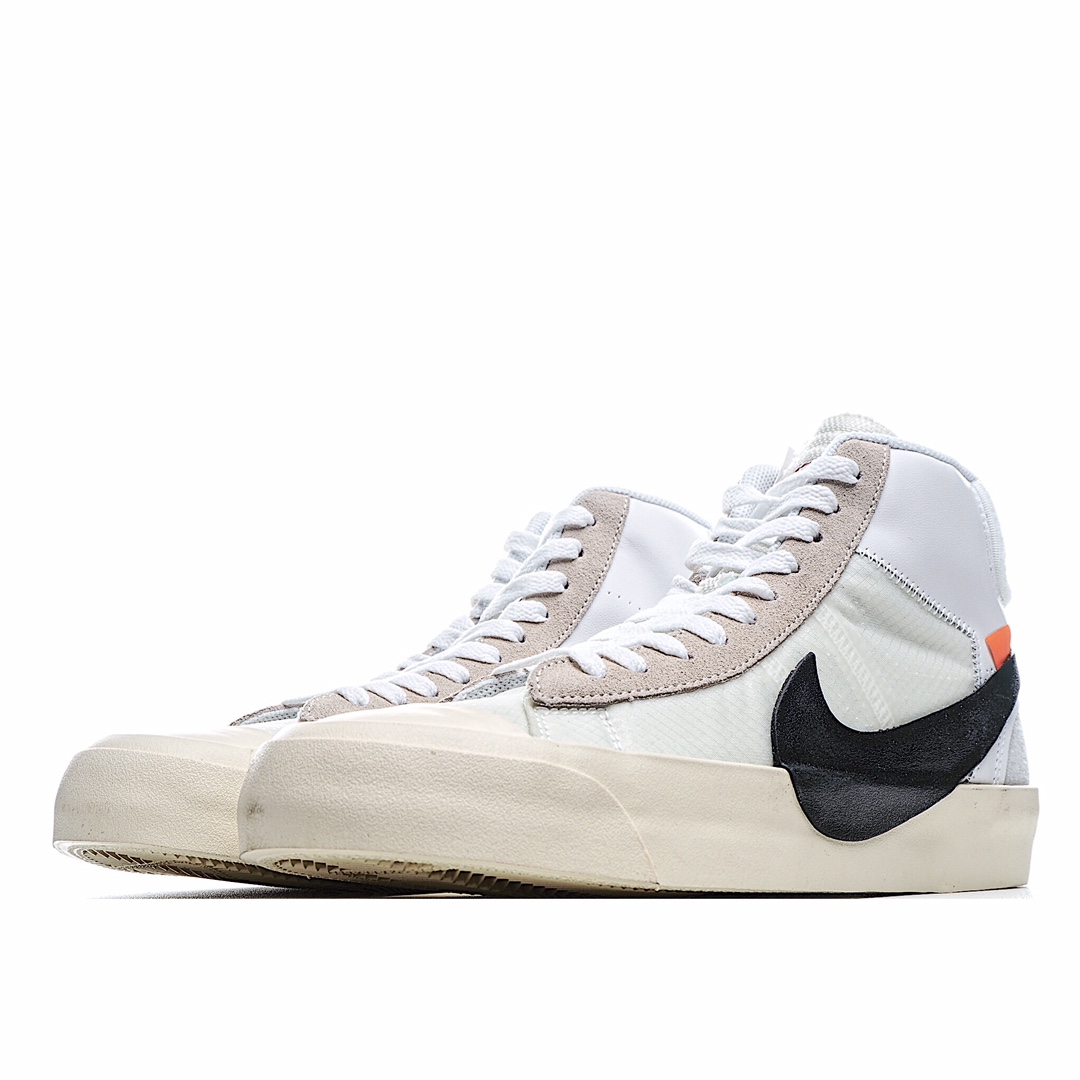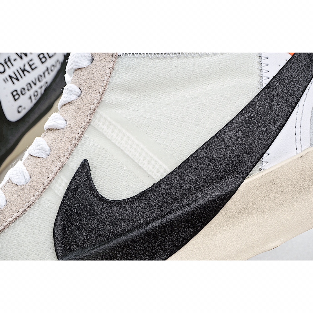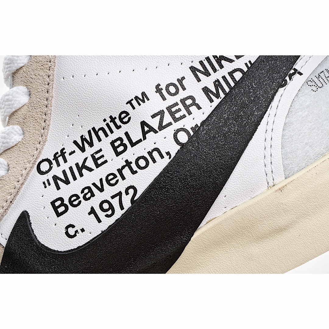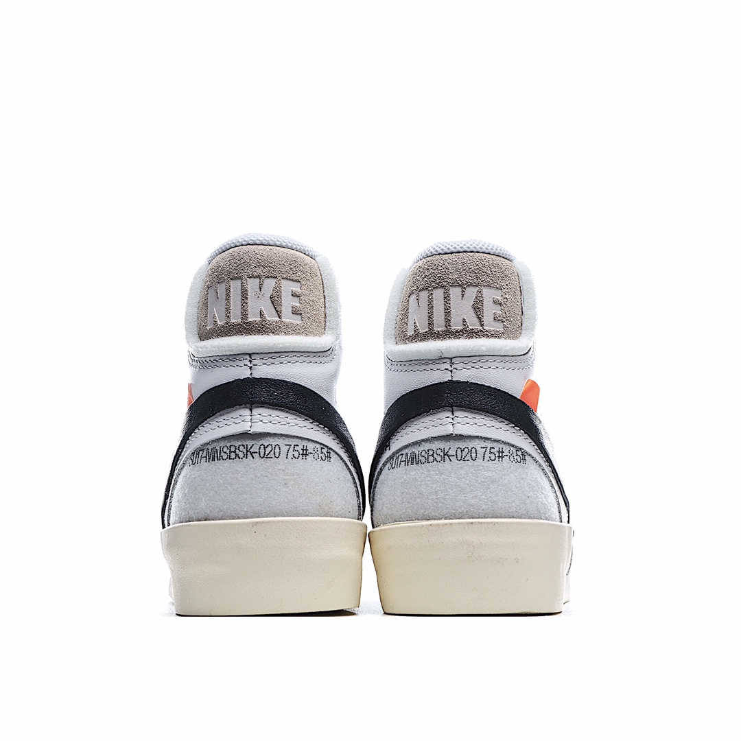 H5 TOP纯原版本 Off White x Blazer Mid OW联名开拓者纯原级别 唯一官方细节原厂港宝 电脑刻字一致原版 分区码段内侧噪边字体 比对原鞋不断调试唯一独家原材购入 无色差原厂弹性网纱 百分百与发售原版同步原纸板数据开发 后跟、整体版型 达到与原版匹配率:95%硫化夹层 植入织线围条 拒绝硫化开胶原盒原配 原装防盗扣