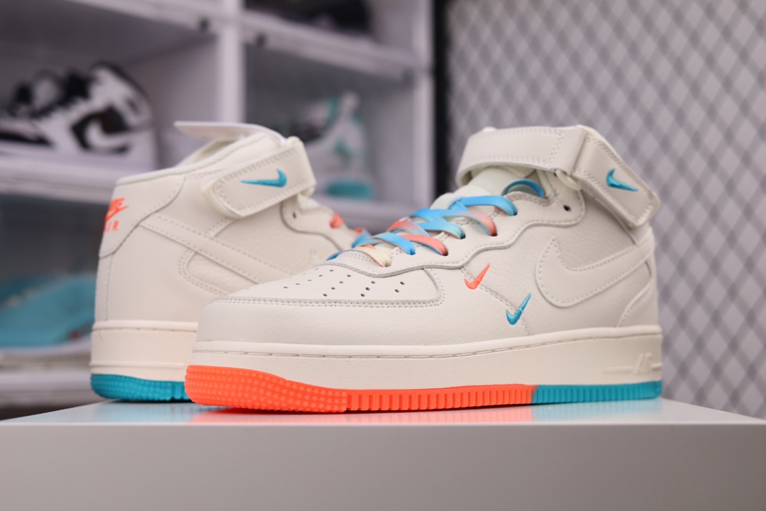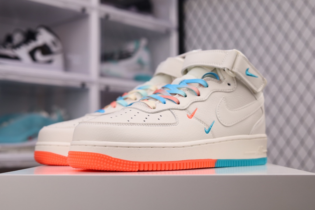 I0 Nike Air Force 1 MID ’07 米橙蓝 ‘’迈阿密‘’配色低帮空军一号休闲板鞋 定制头成皮料 原盒原包装 3M反光 原楦原纸板 水晶双色大底 纯正版型 内置全掌气垫 货号:MI9663-536 尺码:36 36.5 37.5 38 38.5 39 40 40.5 41 42 42.5 43 44 44.5 45