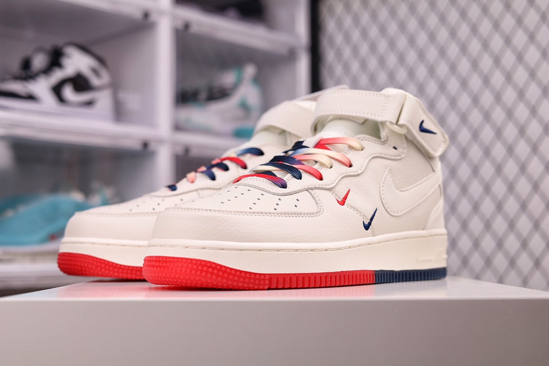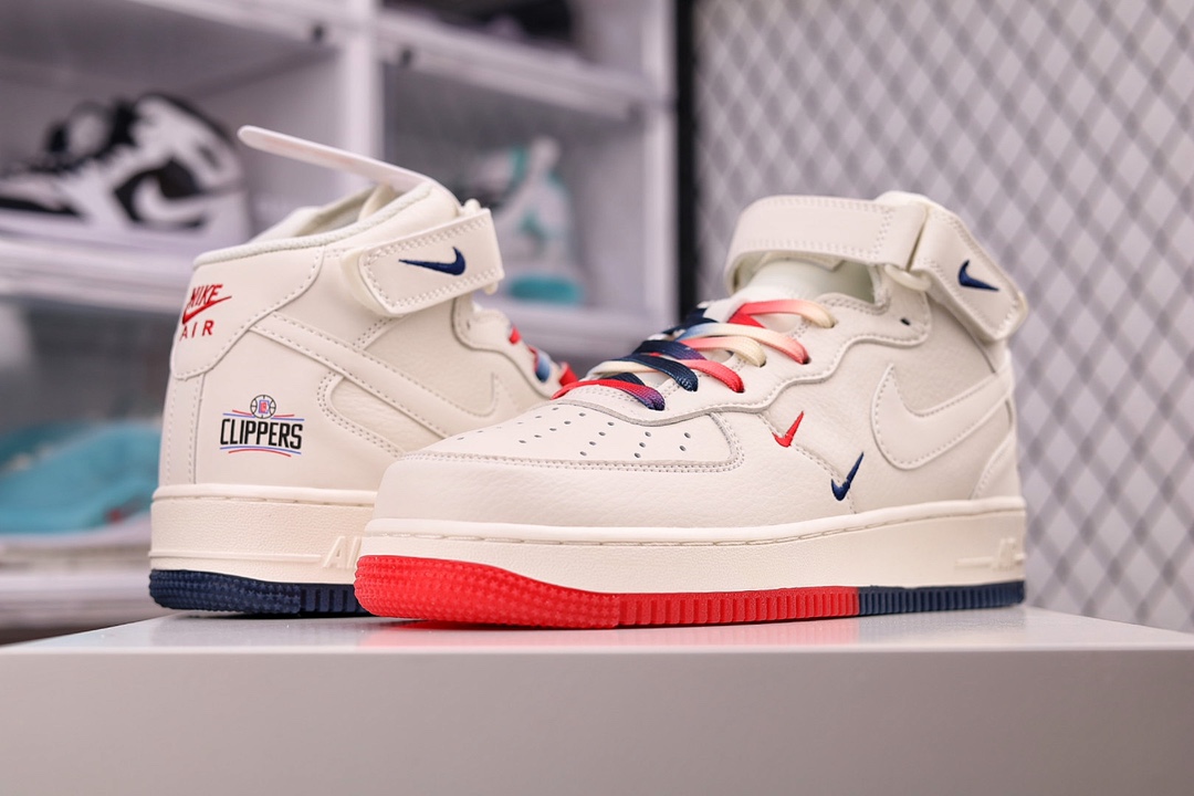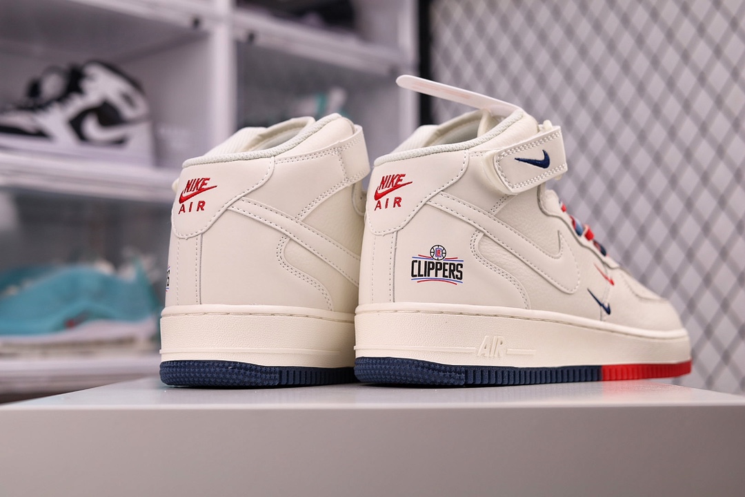 I0 Nike Air Force 1 Mid ’07 “米蓝红”洛杉矶快船原楦头原纸板 打造纯正空军版型专注外贸渠道 全掌内置蜂窝气垫 原盒配件 原厂中底钢印、拉帮完美