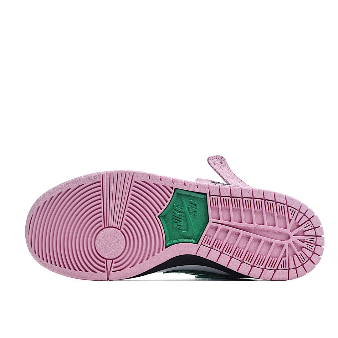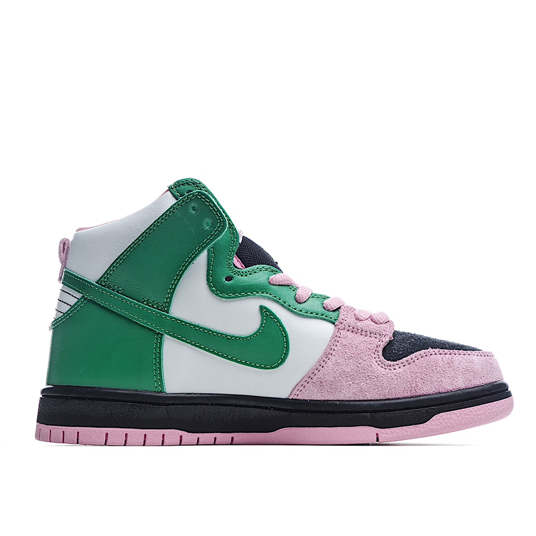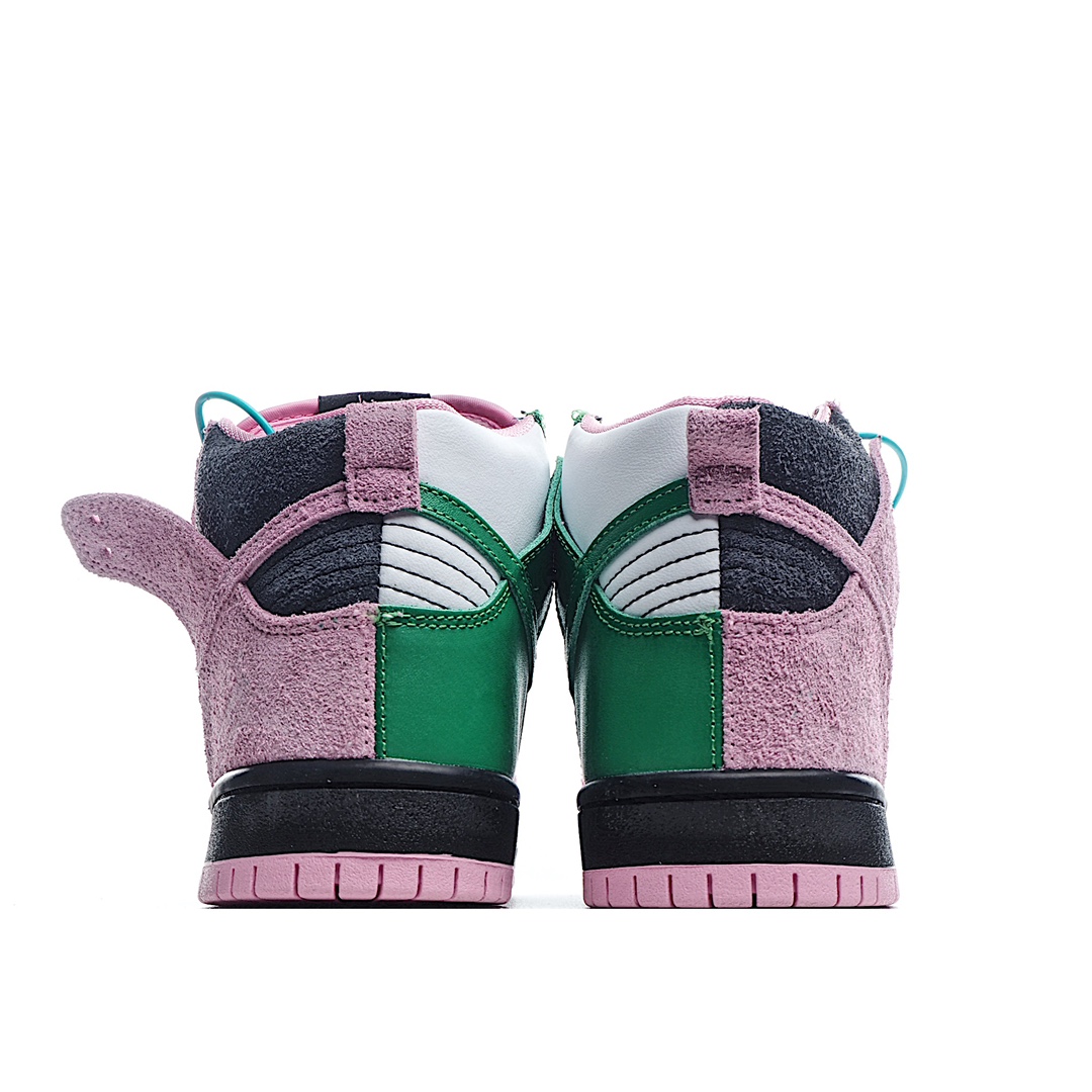 I0 Nike SB Dunk High “Invert Celtics”反转黑粉拼色撞色拼接鸳鸯 凯尔特人 王一博同款滑板鞋,采用少见的内外撞色设计,粉色绿色的反转很巧妙的将两种颜色融为一体。在负片处理下,两种颜色会进行对调,非常神奇。