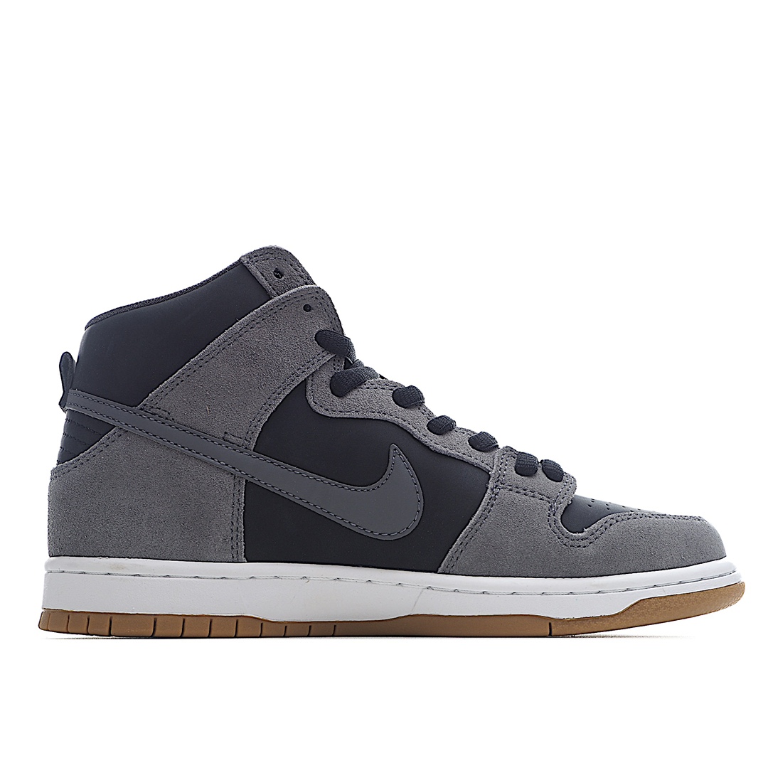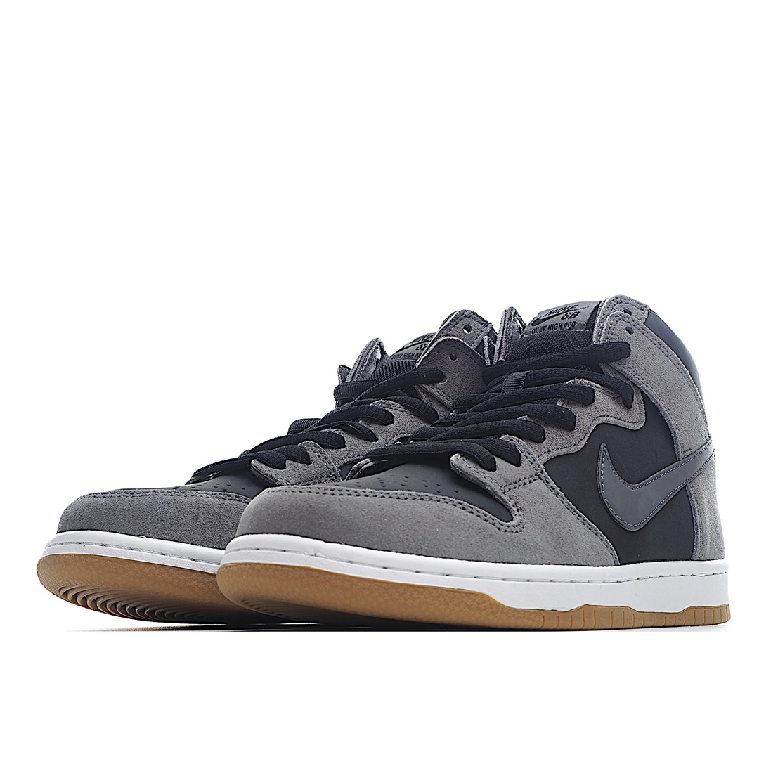 I0 Nike SB Dunk High Pro 雾霾高帮 以灰色为主色调,黑色作为填充,同时以白色LOGO作为搭配,尽显简约复古气质,穿衣百搭鞋款。ZOOM AIR气垫,PHYLON中底结构有效提升缓冲和抗震能力。