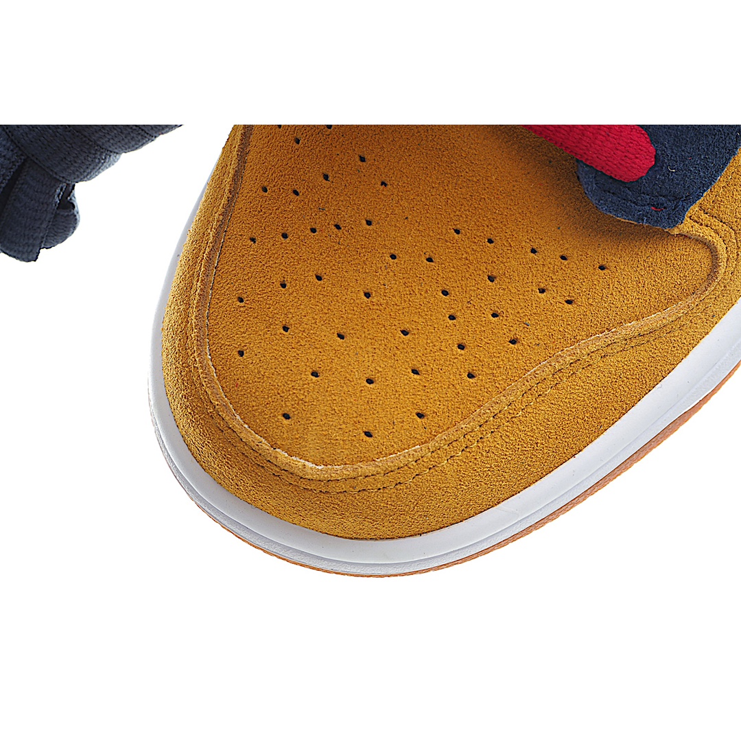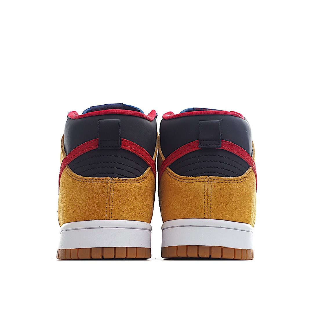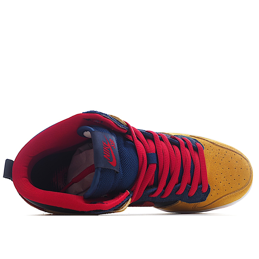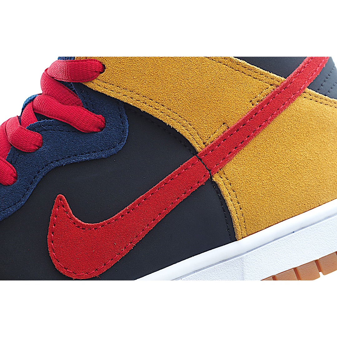 I0 NK SB Dunk High Pro 扣篮高帮系列低帮休闲运动滑板鞋 枫叶红蓝 313171- K0 中底部分加入了脚感柔软舒适ZoomAir气垫 有效吸收滑板等极限运动在落地时带来的冲击力,为街头运动者们提供更好的保护