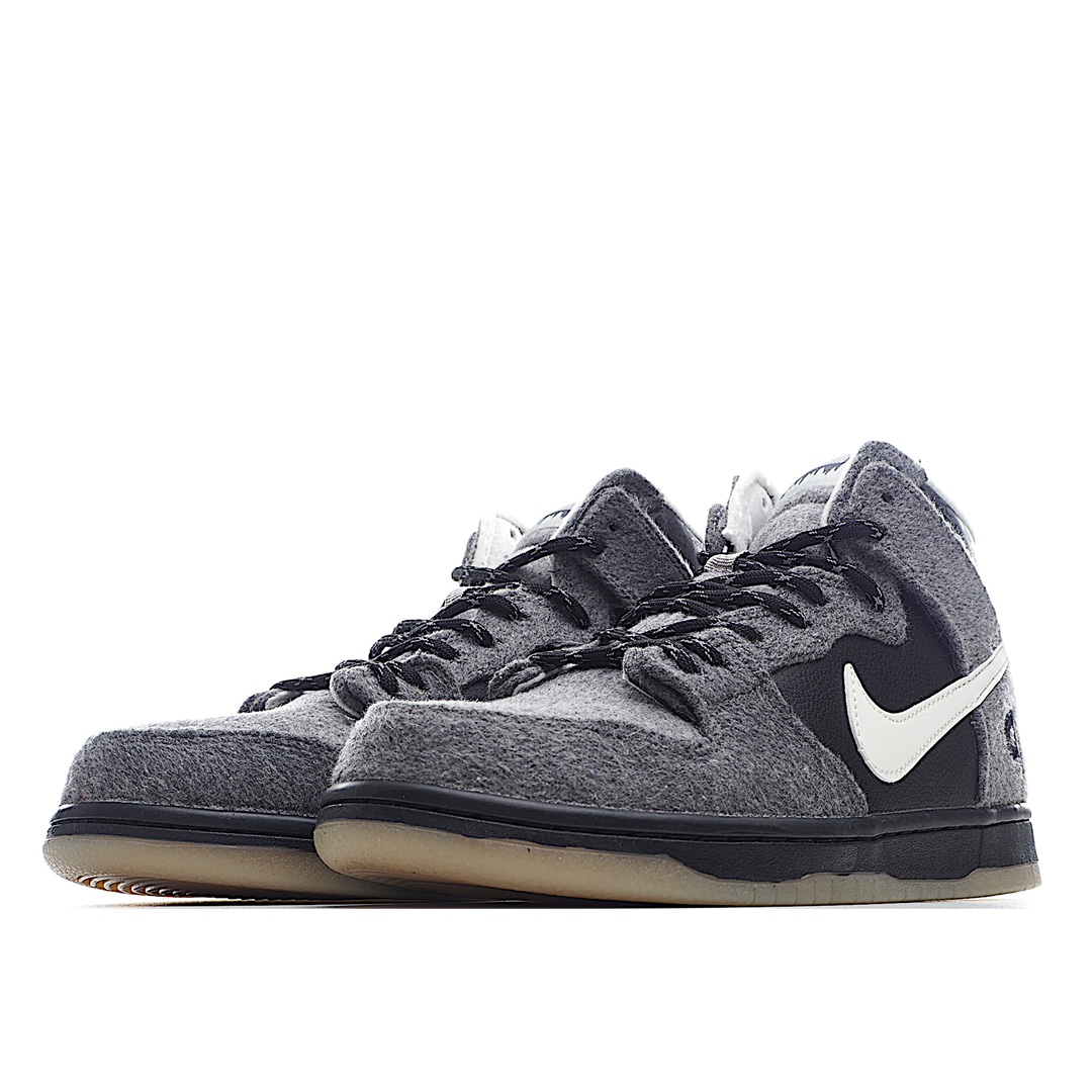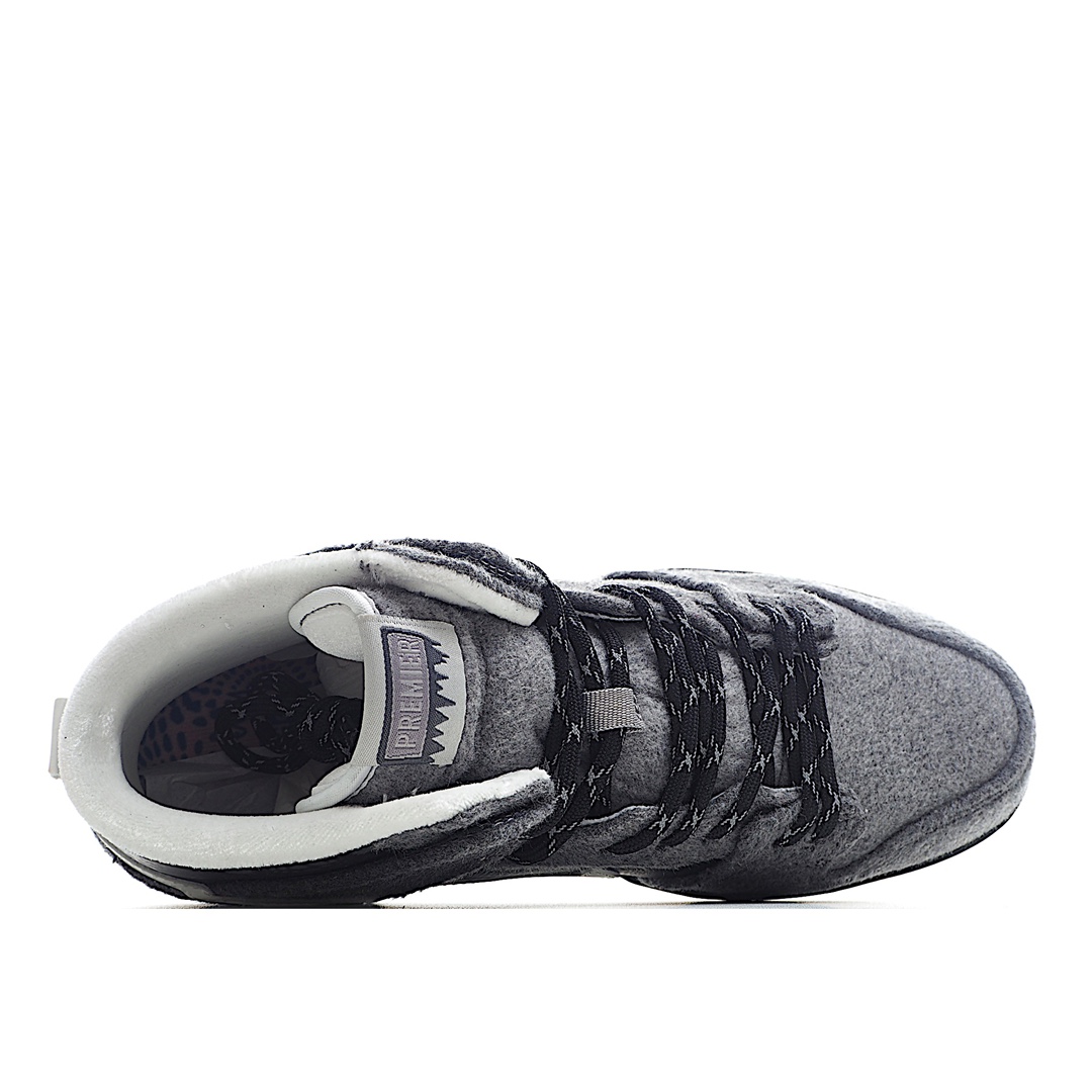 I0 Premier x Nk SB Dunk High “Petosky” 联名款高帮休闲滑板鞋 645986-010Premier 再次携手 Nike SB 推出联名鞋款。以经典的高帮 Dunk High 为原型,并以密歇根寒冷的夜晚为灵感发想,延续了 “Petoskey” 的设计,采用黑色皮革结合灰色羊毛材质构成鞋身,配上鞋跟处雪花纹的图案,以及代表 Premier 的字母 “P” 呈现。