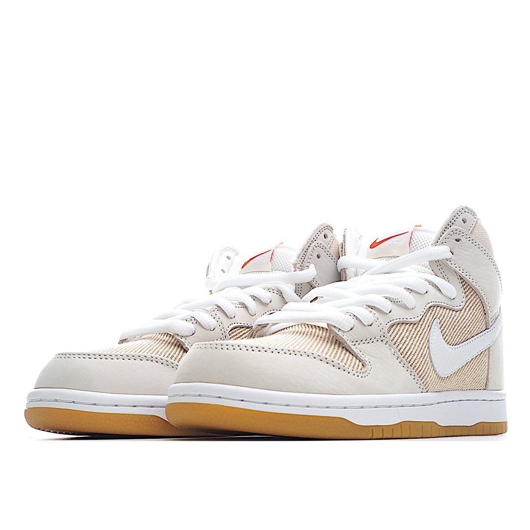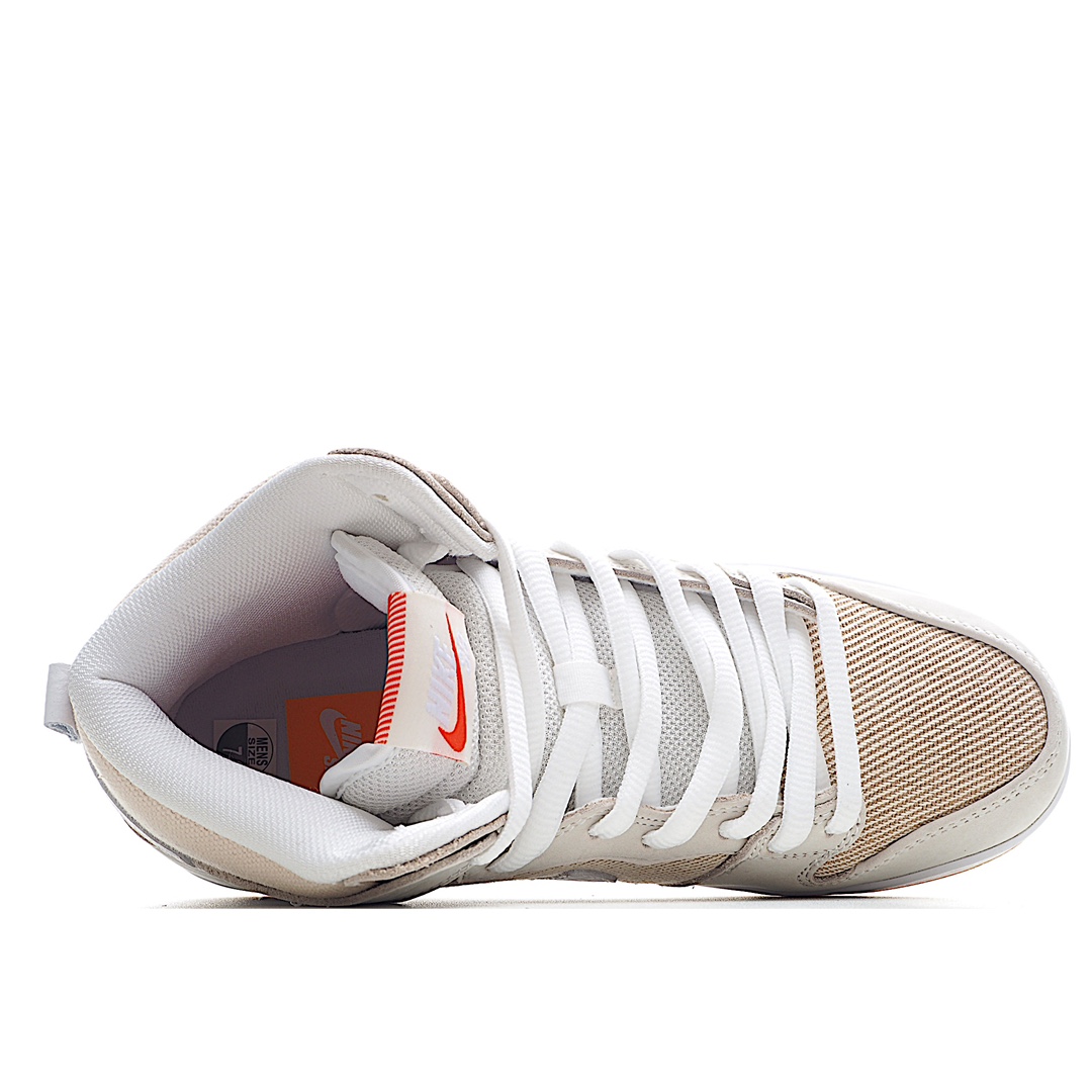 K0 纯原版本 Nk SB Dunk High “Unbleached Pack” 亚麻色 SB扣碎篮板时尚休闲板鞋 DA9626- F5 白杏色鞋身上的布面元素为整体造型呈现出干净素雅的一面,鞋头与侧身位置,布面材质呈现条纹形状,以亚麻色搭配帆布白色呈现出全新造型。细节方面,鞋舌与鞋垫位置点缀着醒目的橙色,为视觉效果增添活力。最后,外侧生胶大底与鞋身整体完美呼应。