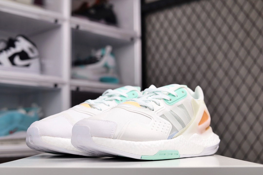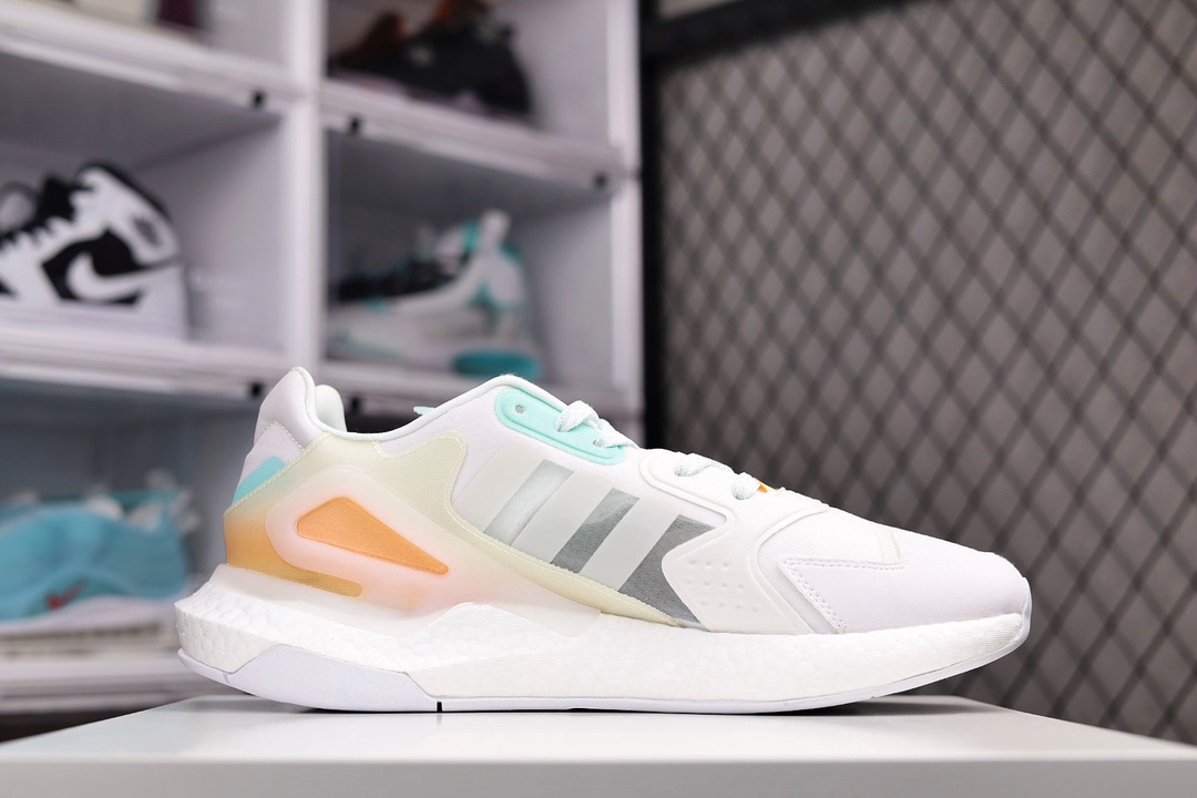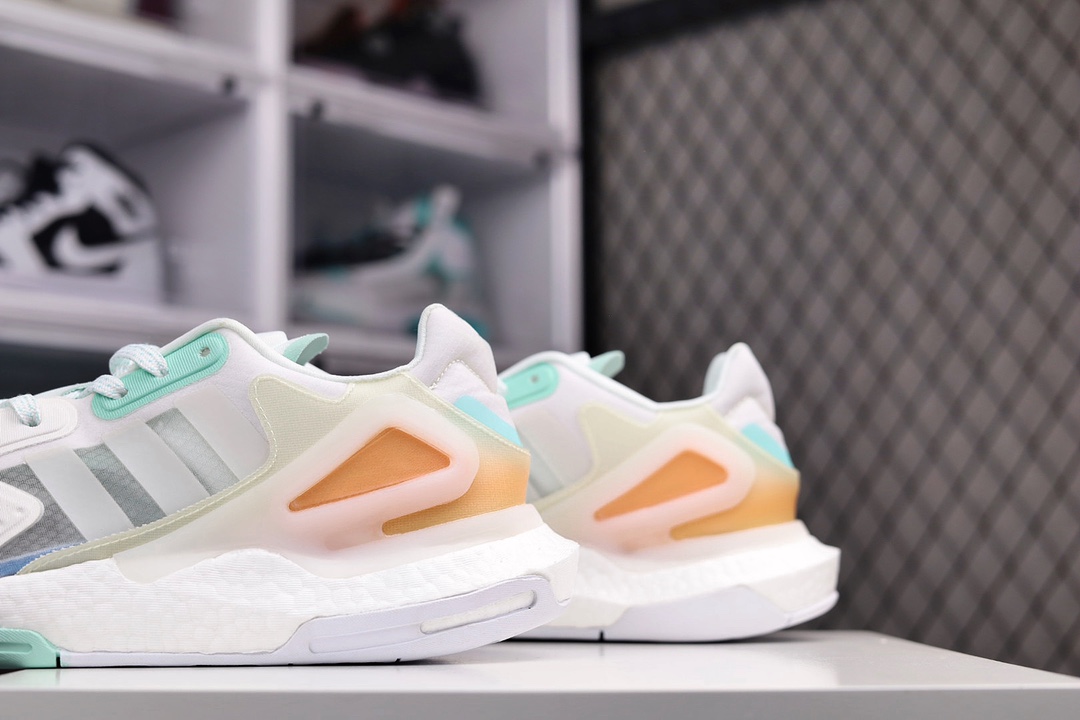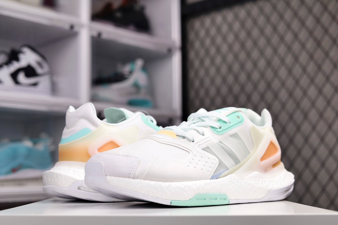 H0 公司级全新升级版本阿迪达斯 三叶草/adidas Originals 2020 Day Jogger Boost”White/Mint/Orange”2020版慢跑者系列高弹复古休闲运动跑鞋.网材鞋面搭配合成绒面革饰面中底嵌入全掌Boost爆米花缓震颗粒材质,棉质脚感体验×668XQ