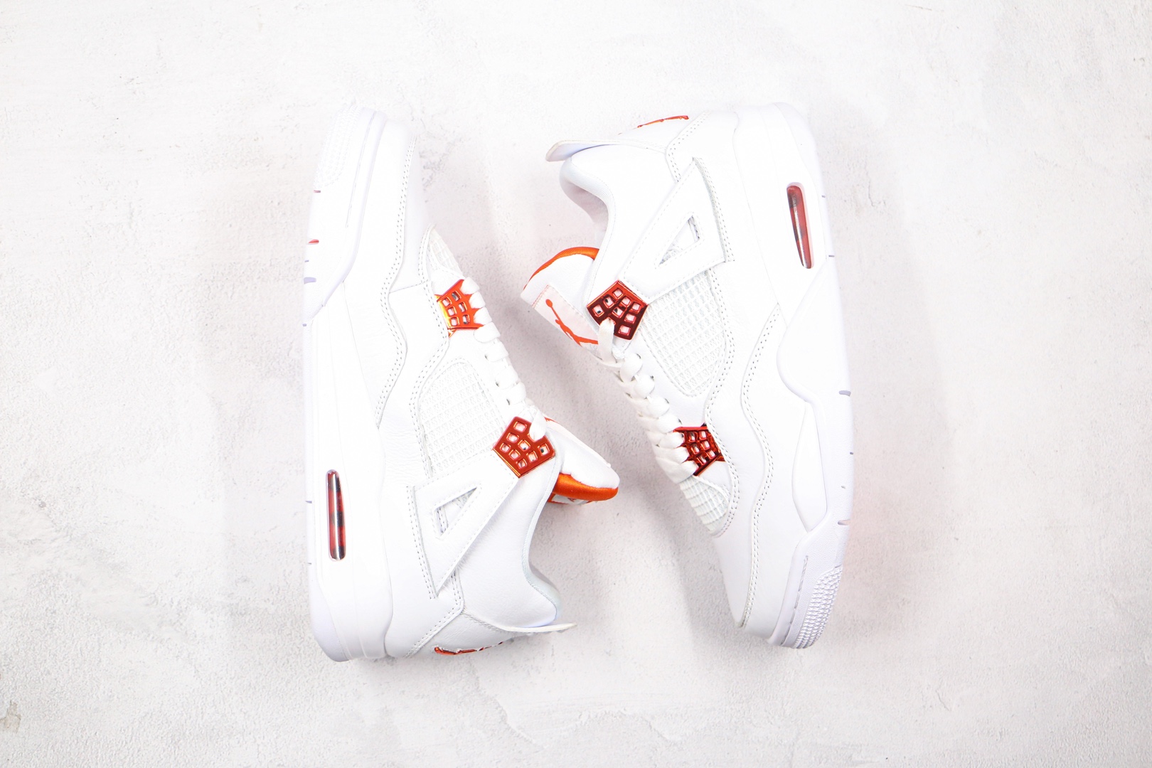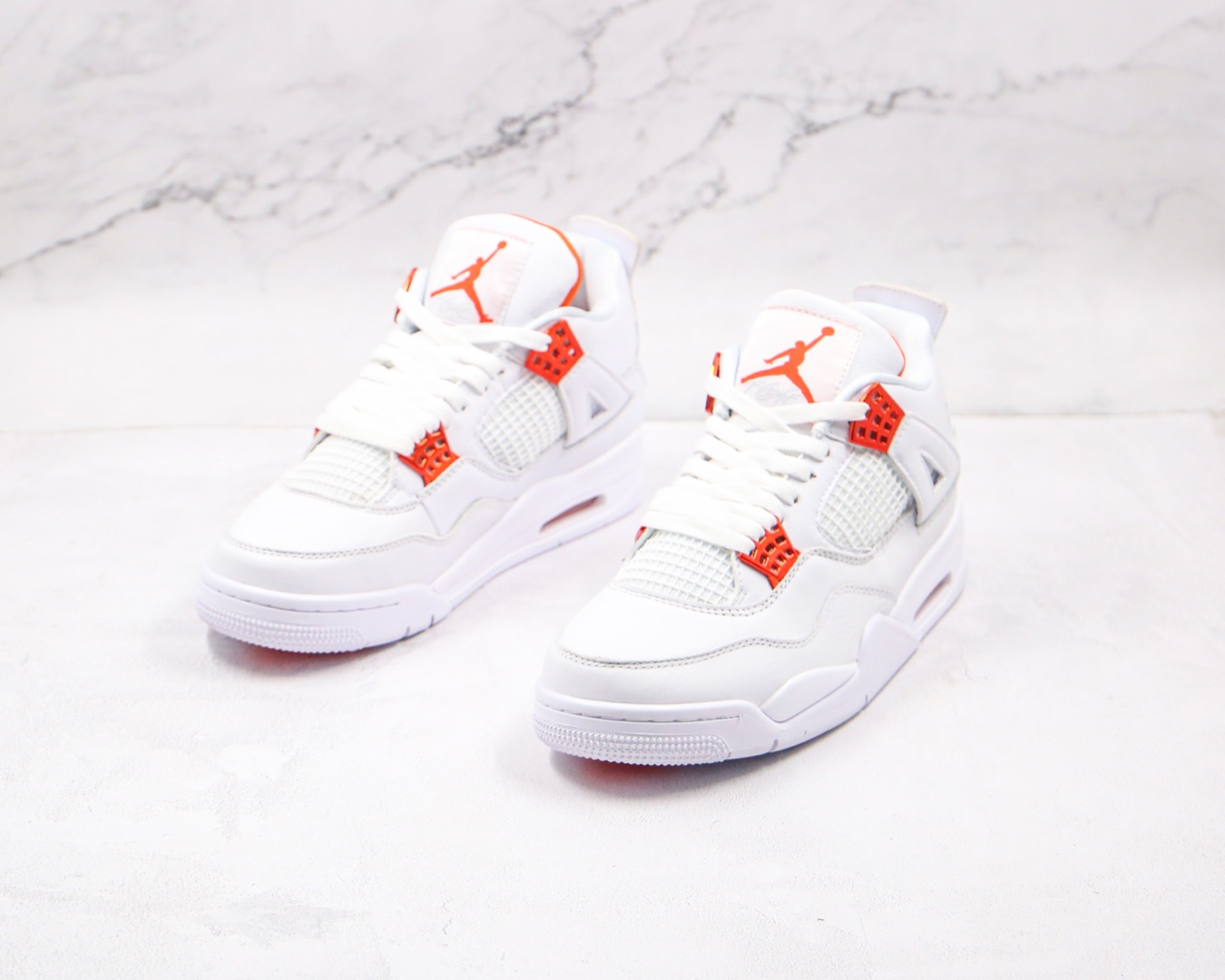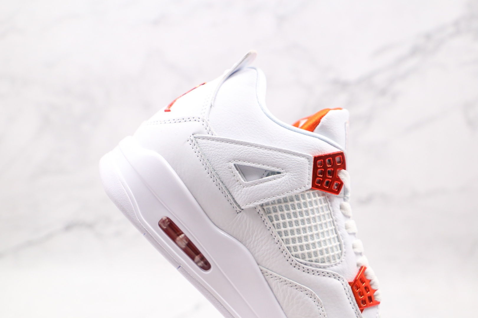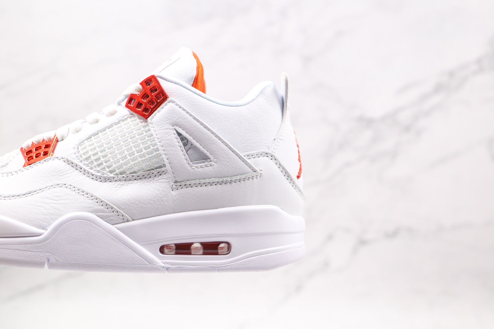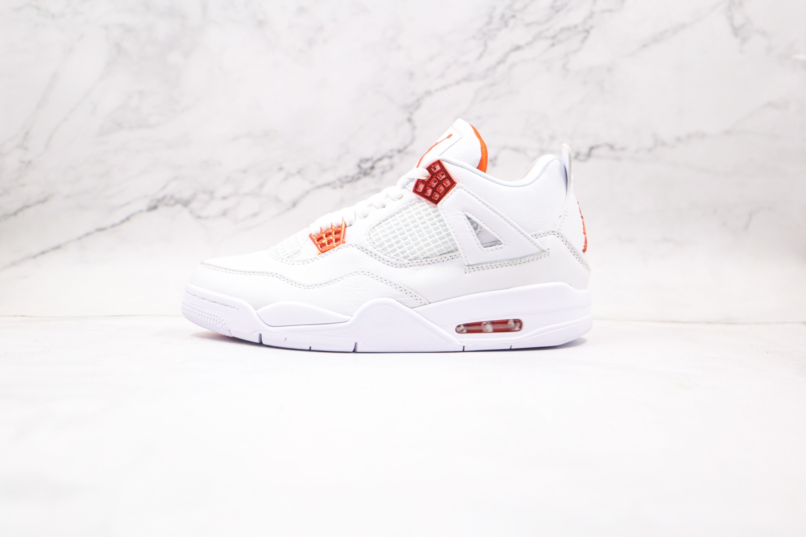H0 纯原 乔丹 AJ4 Air Jordan 4 白色 橙扣 皮质一摸就知道品质用料很好 4代正确鞋型 原厂定制头层磨砂皮料 正确侧边tu材料卡色市面正确鞋舌立体高频 渠道正品网格大小 内置原厂气垫 后置立体LOGO可随意对比正品细节
