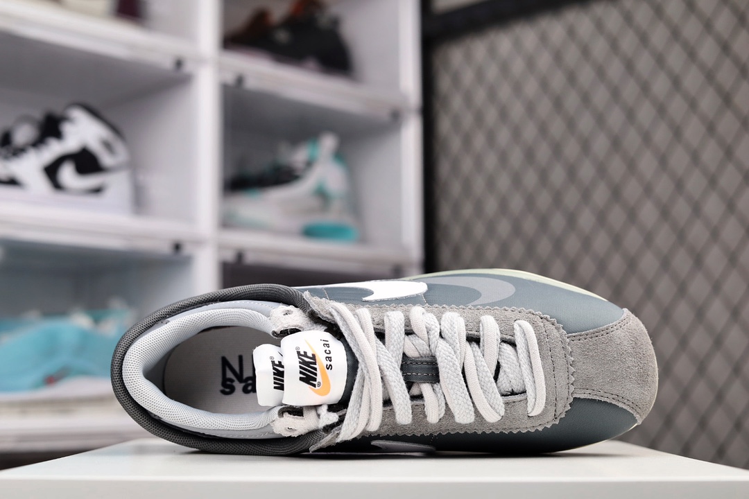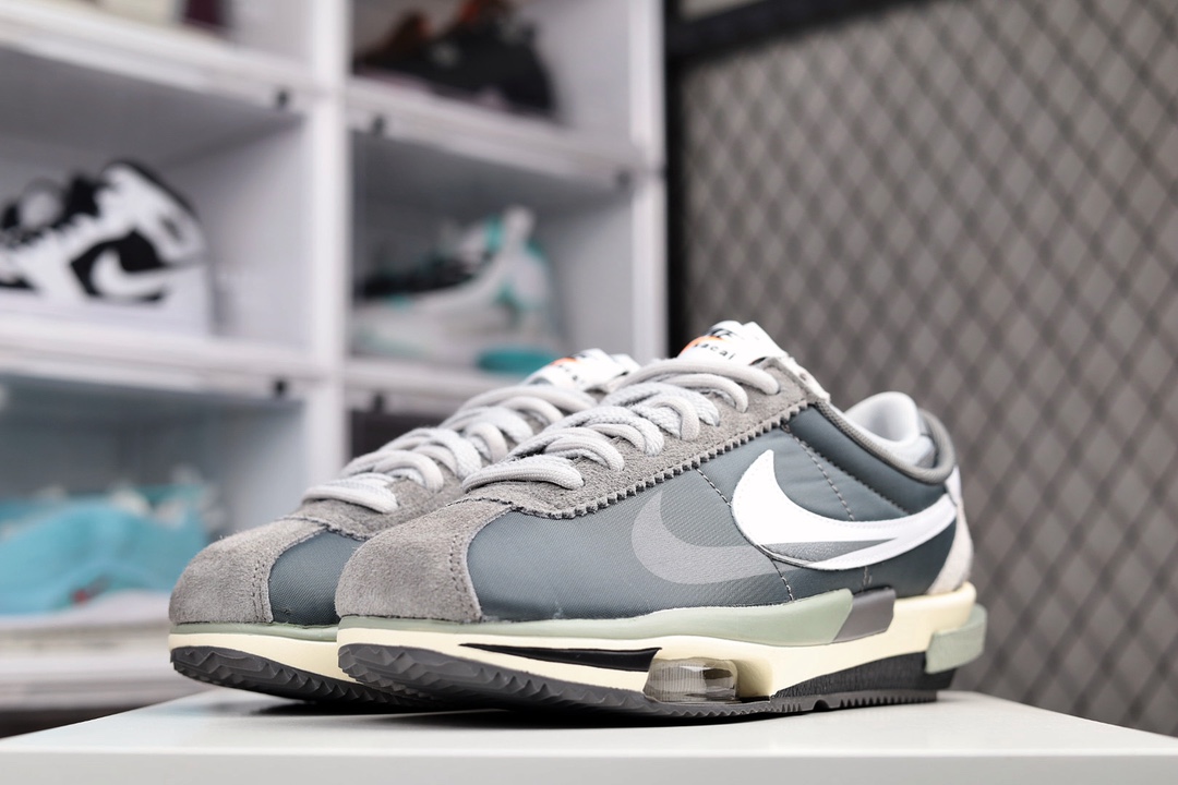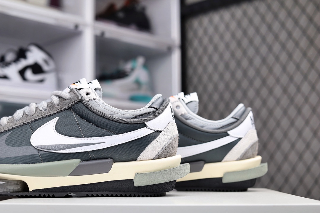H5 Sacai x Nike Zoom Cortez 白灰此次联名配色选用最 OG 的白蓝红方案,复古气息浓郁。设计上依旧是 sacai 标志性的解构重叠风格,鞋身侧面有灰色和红色两个 Swoosh。双层的鞋帮和鞋舌,以及双鞋带系统,「double」理念赋予复古鞋型全新现代风格。最引人注目的是前掌中底创新性地加入可视 Zoom Air 气垫,极具辨识度。货号: DQ0581-001尺码: 36 36.5 37.5 38 38.5 39 40 40.5 41 42 42.5 43 44 44.5 45 46