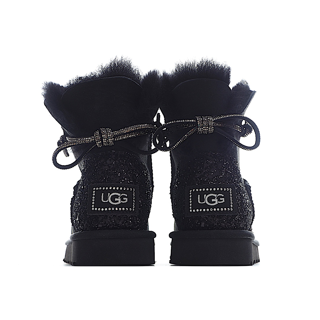 H0 河南代工厂顶级货 区别市面版本 欢迎对比UGG皮毛一体雪地靴 两穿款 钻绳蝴蝶结 黑色/山羊灰/钟乳白