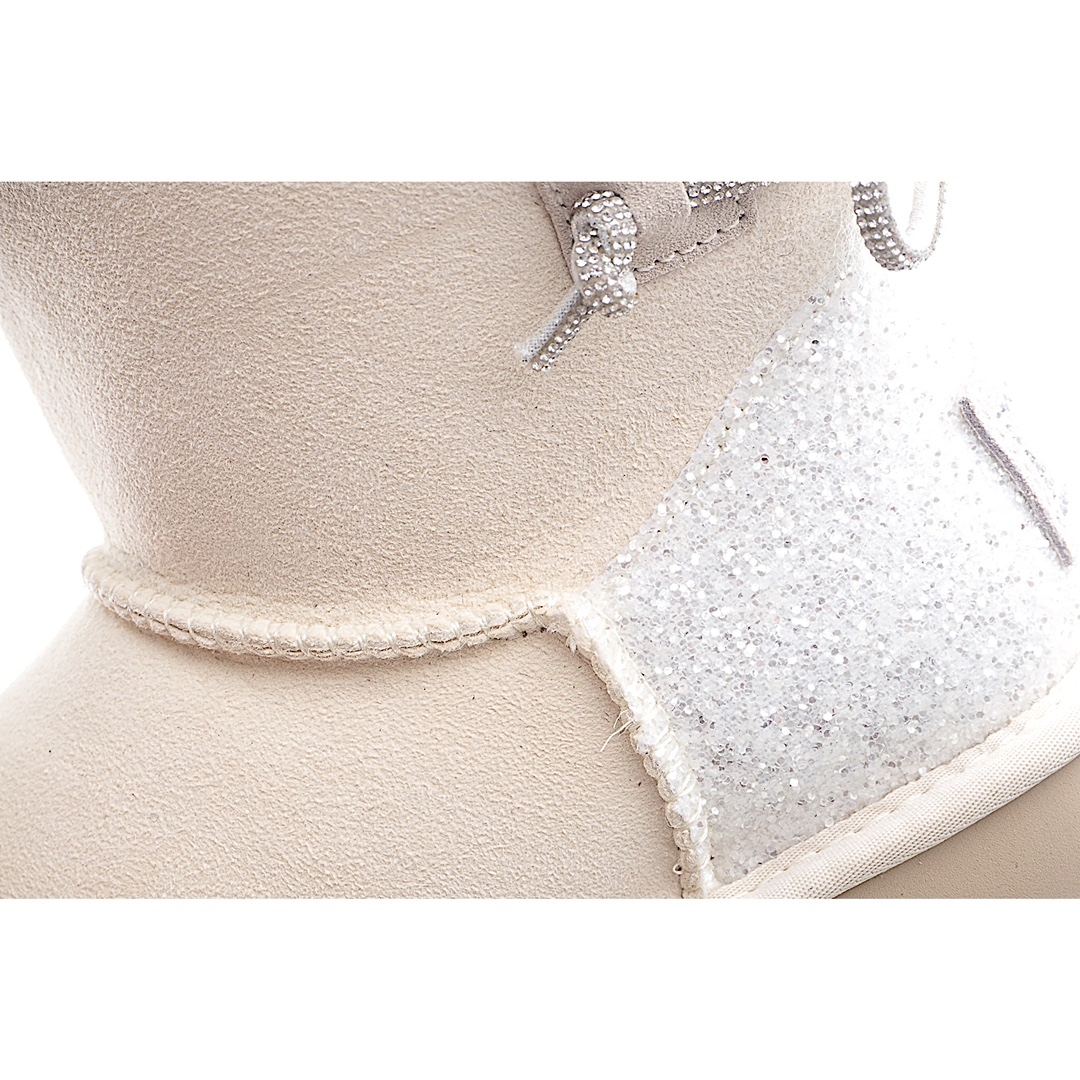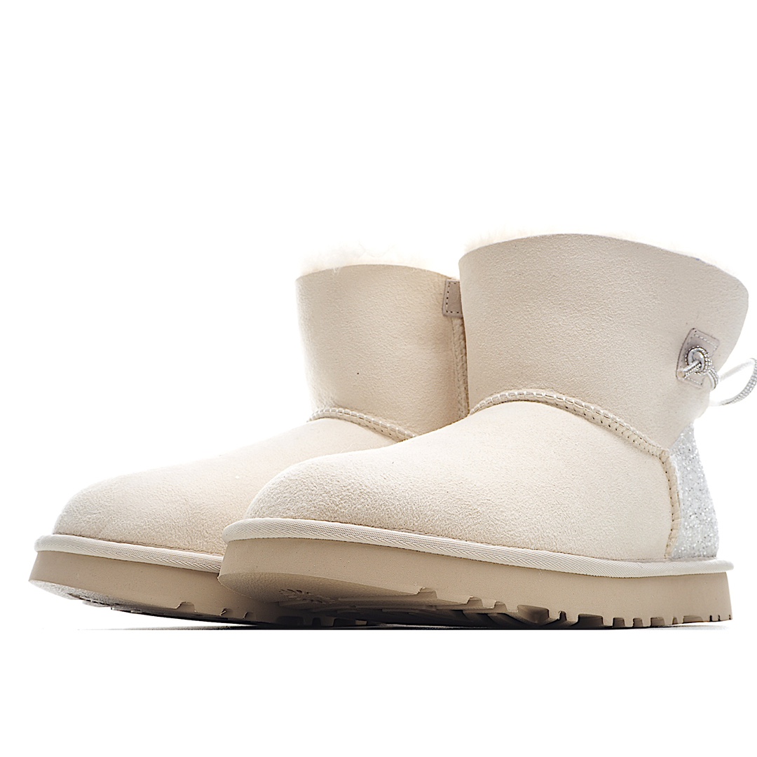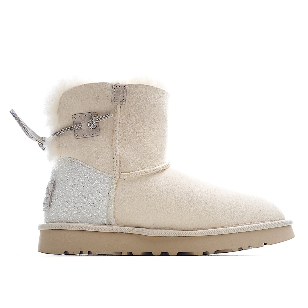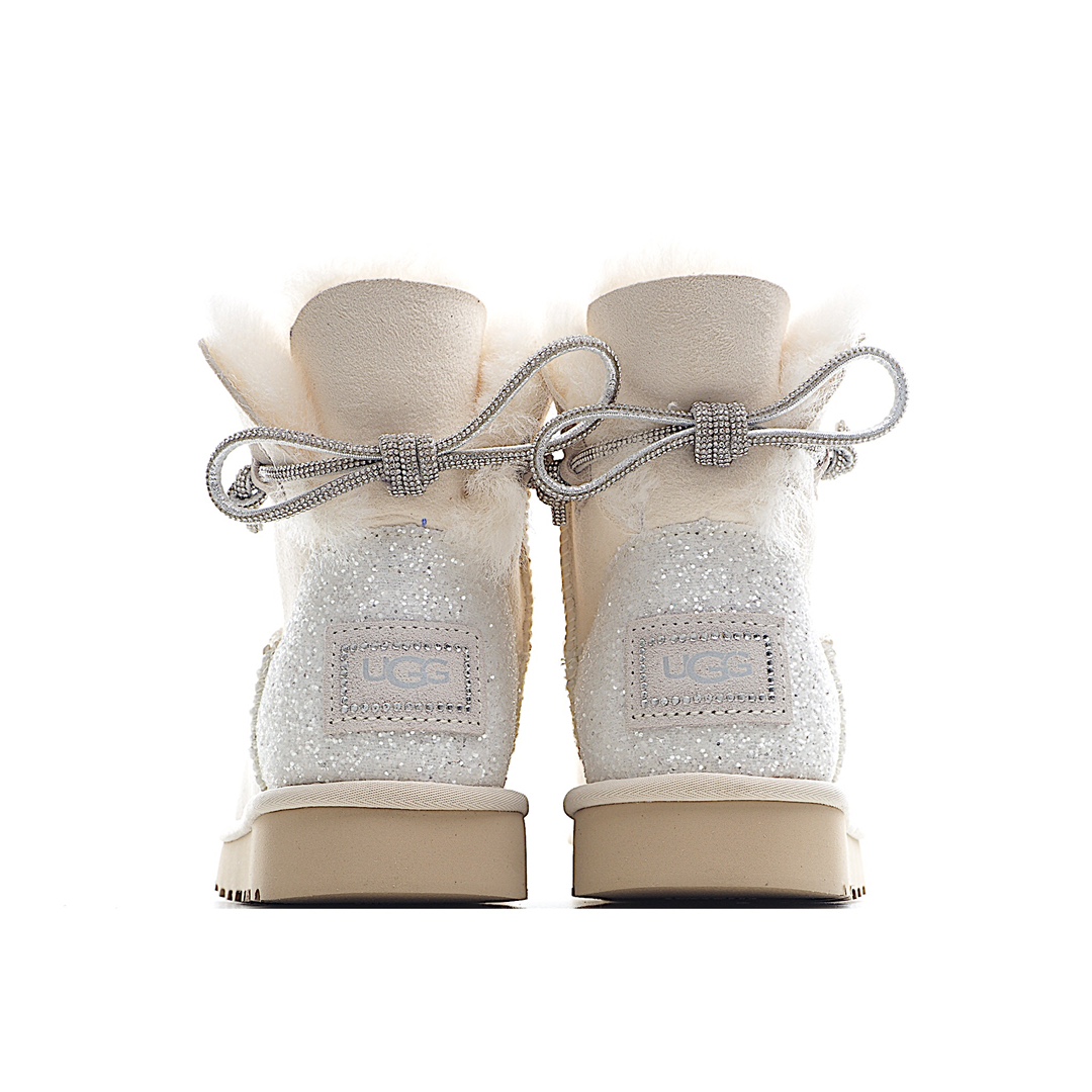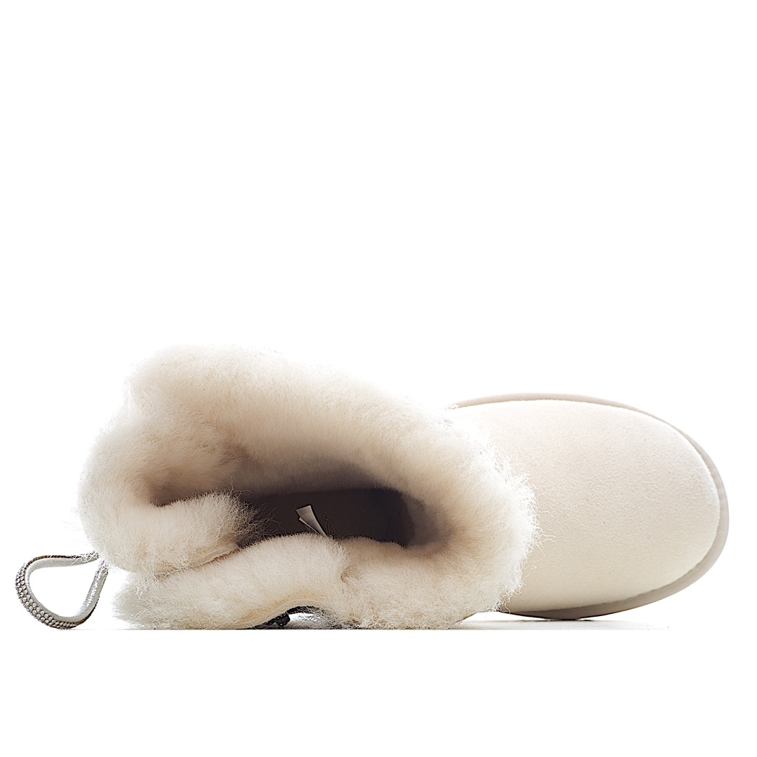 H0 河南代工厂顶级货 区别市面版本 欢迎对比UGG皮毛一体雪地靴 两穿款 钻绳蝴蝶结 黑色/山羊灰/钟乳白