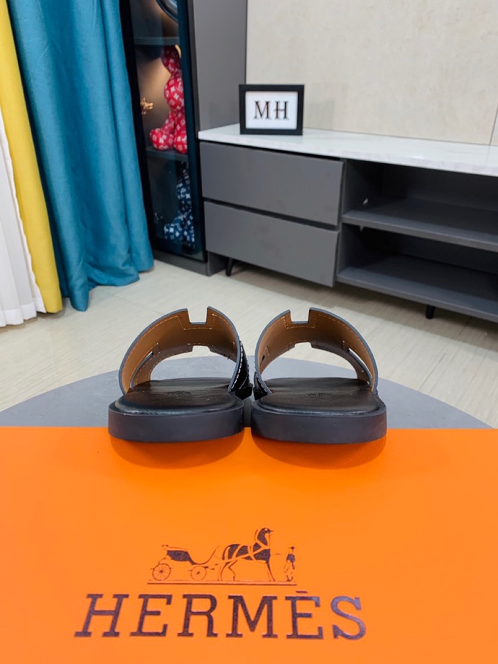H0 爱马仕Hermès男款拖鞋,经典之最✔️明星、网红、都抵挡不住它的诱惑,纯手工精心制作的✔️✔️垫脚舒适透气,定制双层真皮中底.上脚更舒适.对版H型.码数:38-44