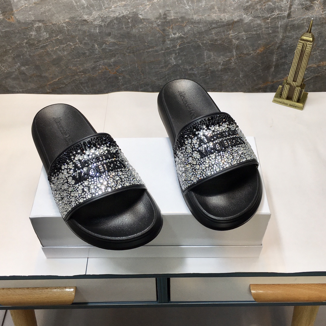 H0 麦昆 Alexander McQueen ~ 情侣款👫 最火爆的品牌logo,标准性凉鞋拖鞋,众多网红同款,软踏踏的原版鞋底,鞋面为PVC品牌标志性logo,非常时尚沙滩拖鞋,这个夏天不能错过时尚单品。码数35/44码