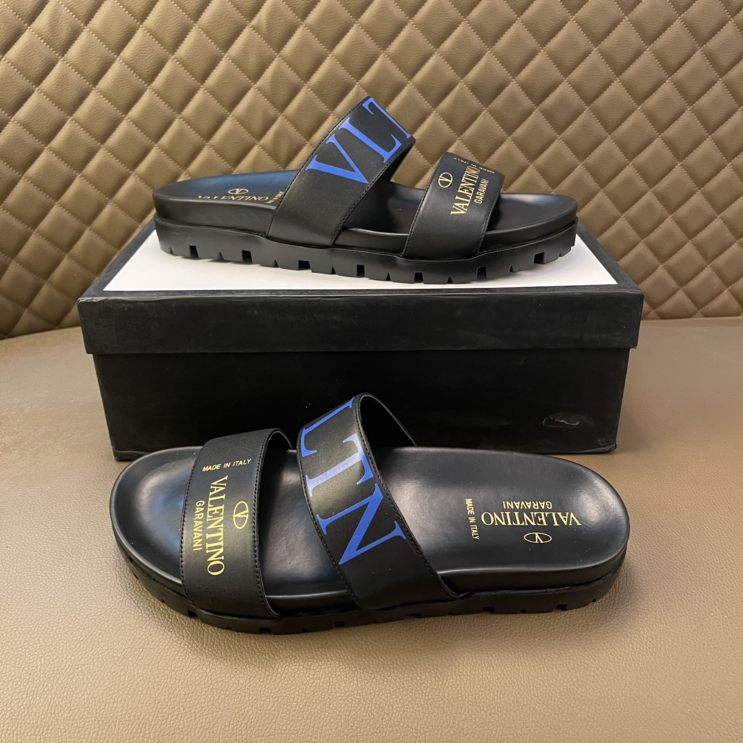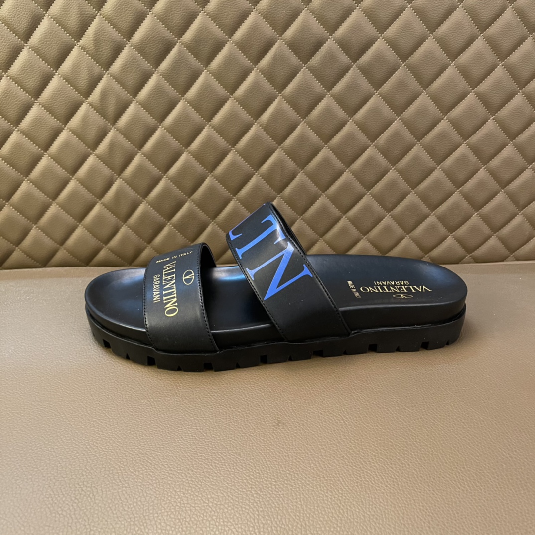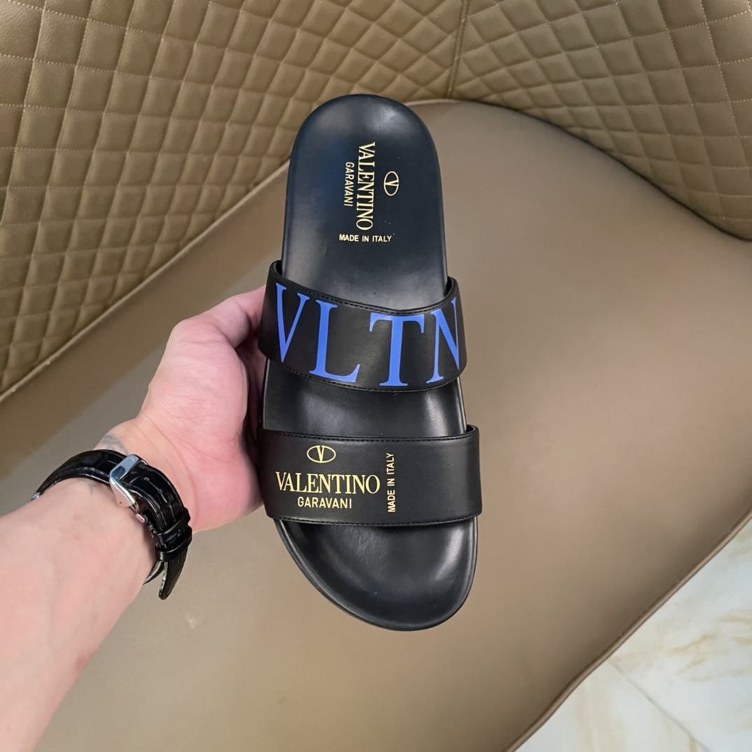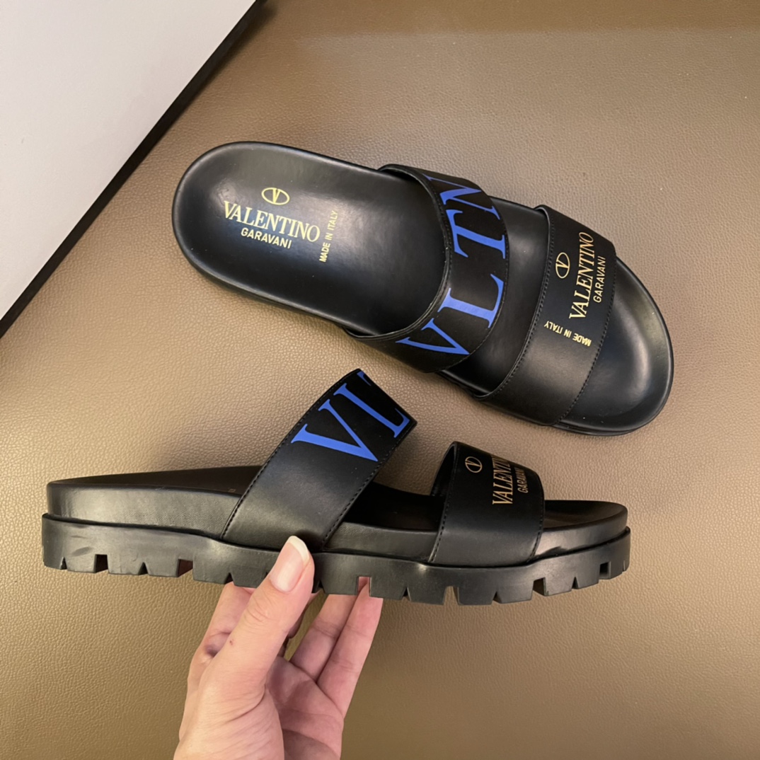 H0 2022华伦天奴VALENTINO夏季款 休闲凉鞋 拖鞋 官网1:1顶级版本,原版完美楦型,鞋面上的文彩 全部机器打造,绝对的彰显时尚潮流,做工质量跟足原版。户外司机驾车 男鞋码数:38-44 45🉑️定制 颜色:经典百搭。黑色 一字拖 凉鞋可选