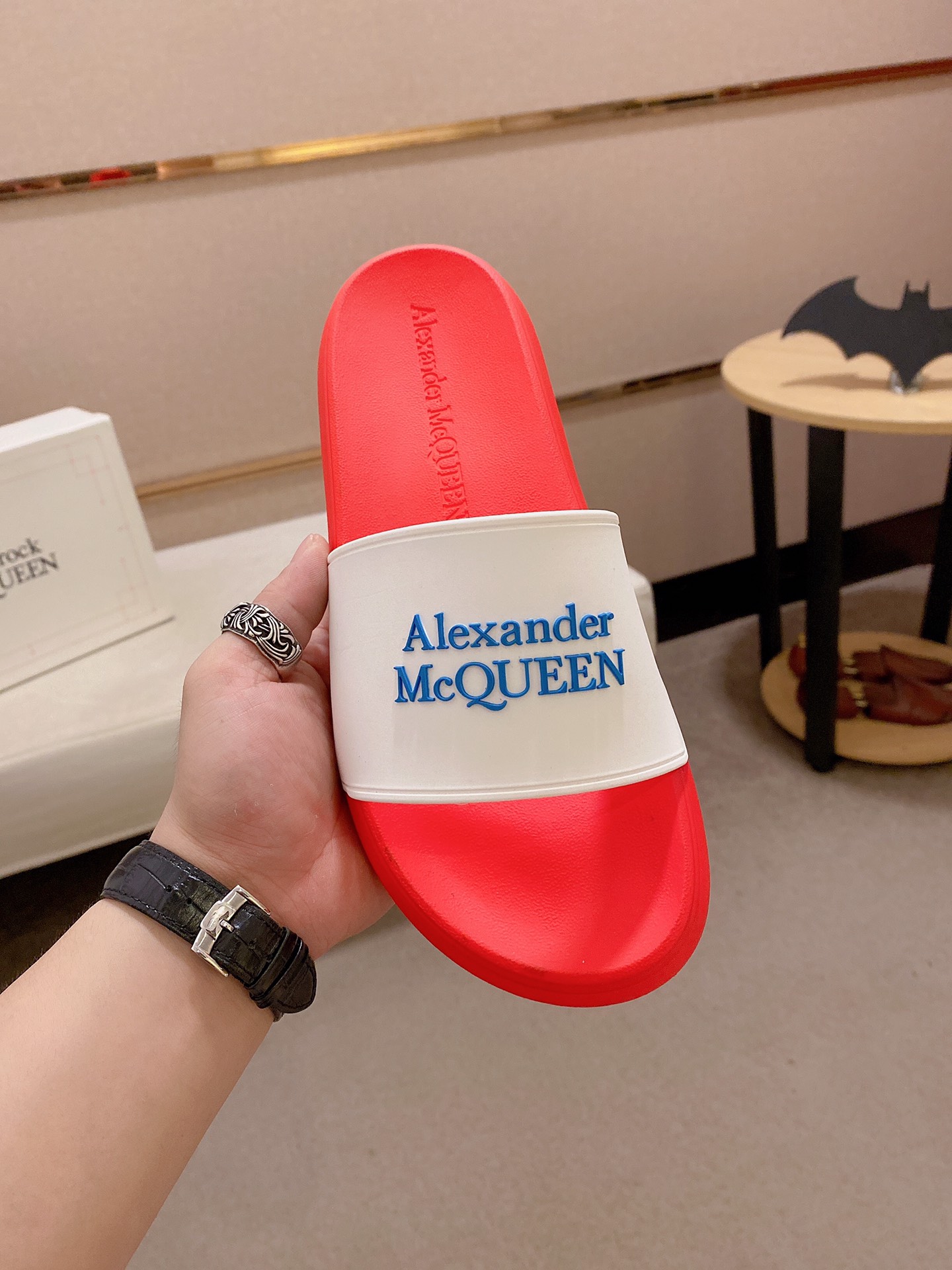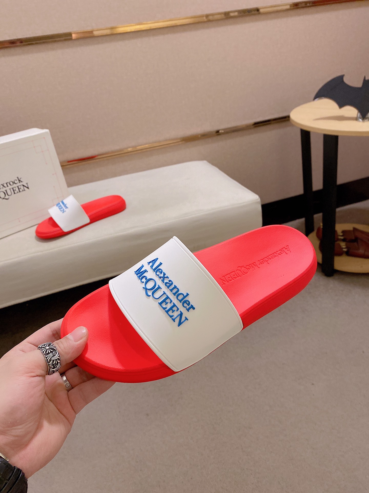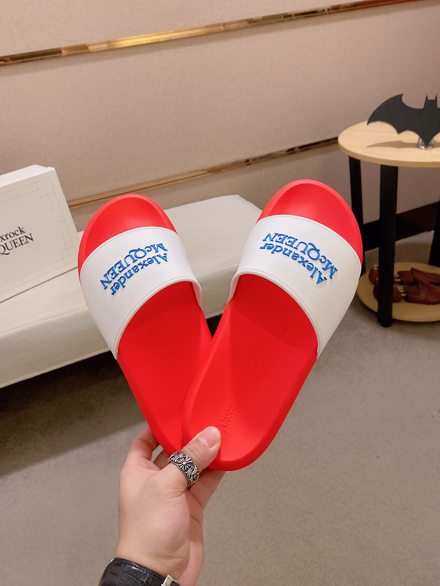 H0 Alexander McQUEEN 亚力山大• 麦昆 Alexander McQueen 拖鞋 3D图案 一如既往独家开模材质,爱不释手,正确版型,上脚绝对精彩,舒适度超级赞……🏅🏅经典&时尚&百搭&大气&优雅&高大尚🈵明星首选,必备之一……独家开模 气质感超强 不脱层不褪色,精美全套包装,专柜红线白盒,新logo同步出货 size 38-45。