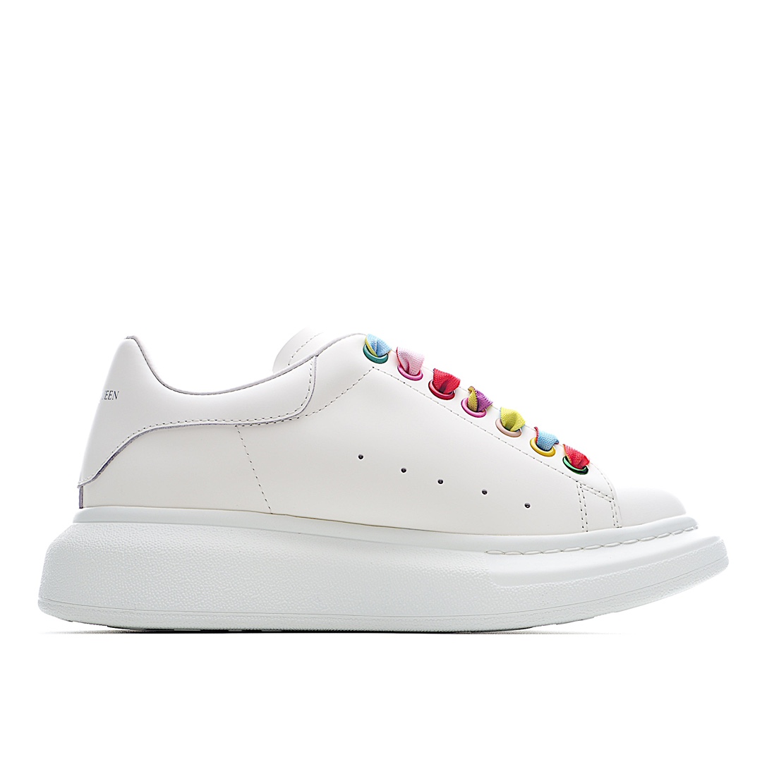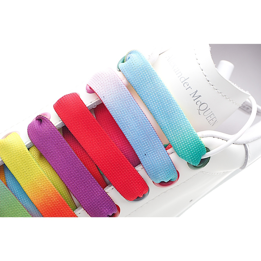 H0 Alexander McQueen 麦昆 Alexander McQueen 彩虹鞋带官网同步发售想不出有任何理由不收它面料采用进口丝绸亚光原版牛皮最新材料水染羊皮内里,牛皮垫脚 原版大底 回弹度极佳 耐磨又舒适 鞋底厚4.5cm 全套原版包装 进出专柜无压力