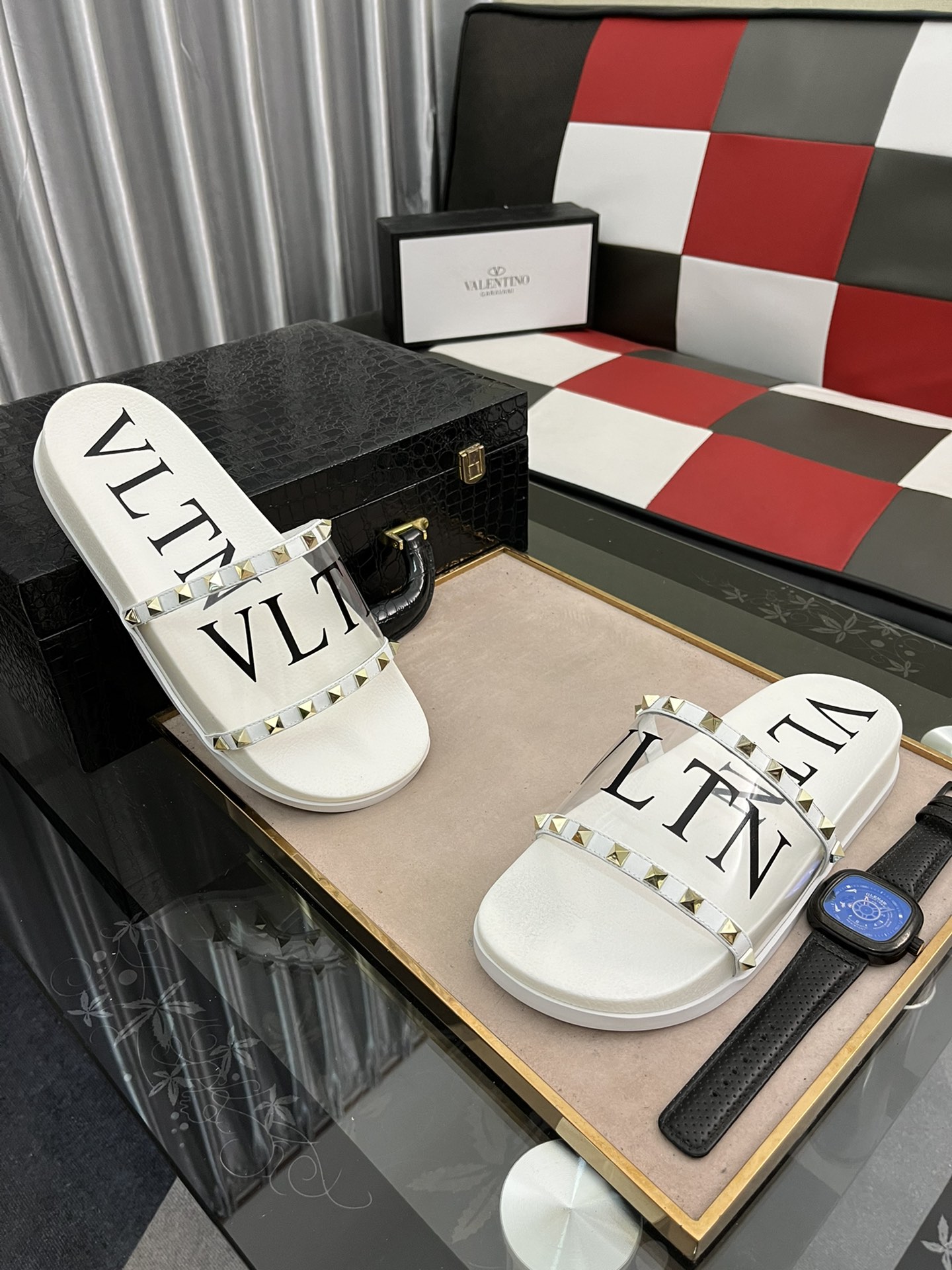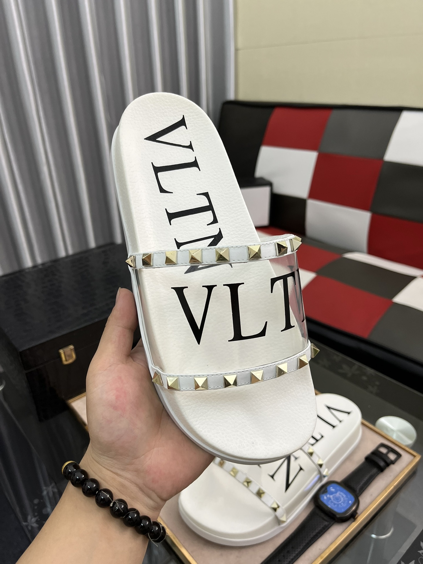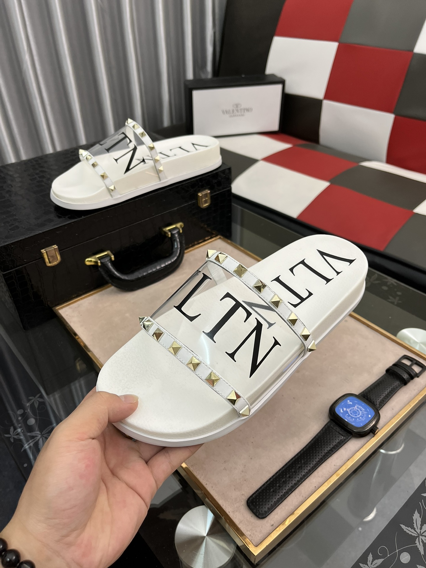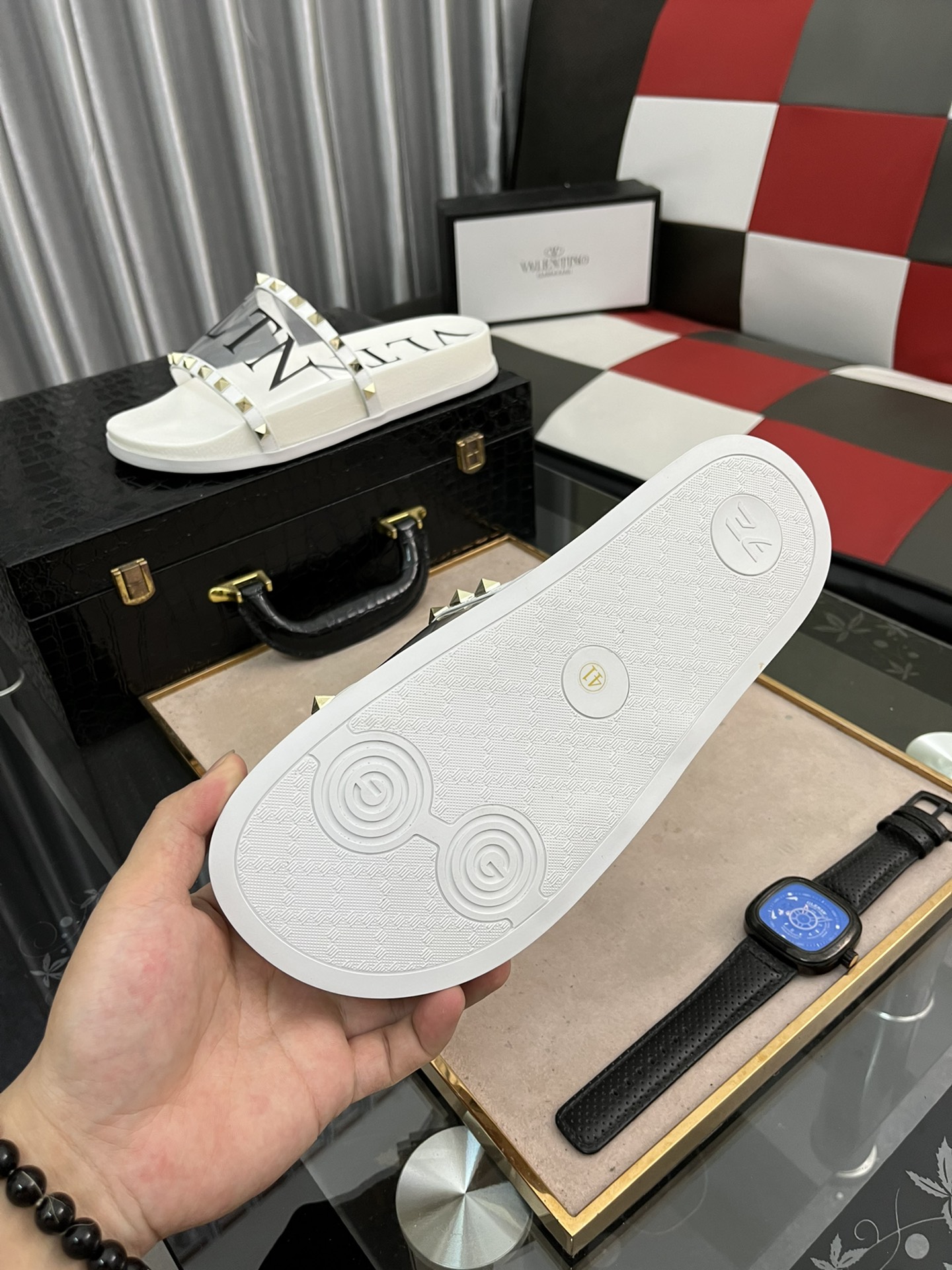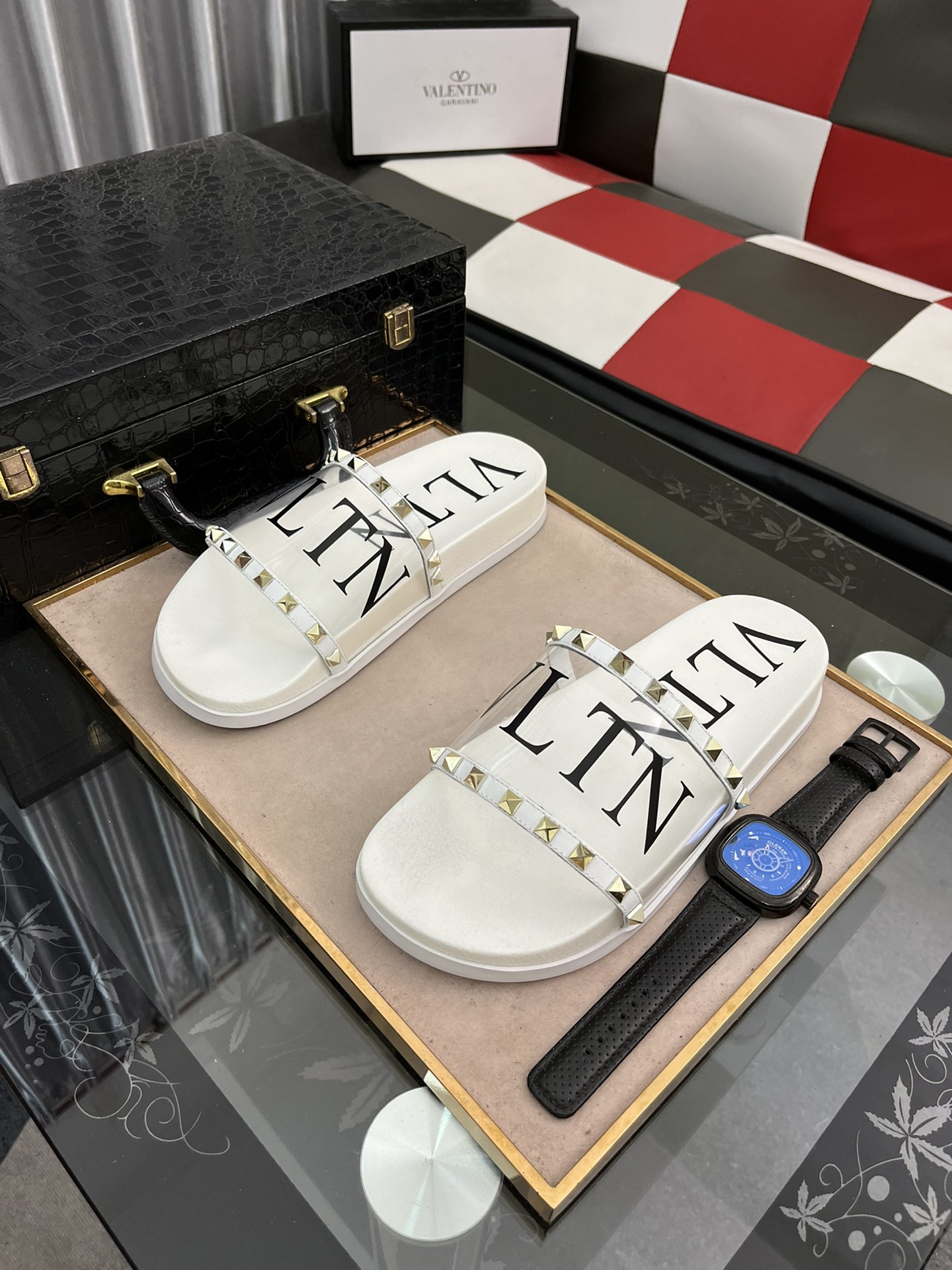 H0 VALENTINO Size:38-44 华伦天奴 2022 🔍顶级代购🇮🇹华家男士春夏拖鞋专柜同步 鞋面意大利进口牛皮面料,纯手工打钉,鞋底:原厂特供原版底,独家活动成型底超级舒适,原厂跟单货,🔍🔍高品质,可随意进出专柜,欢迎对比.2⃣️色可选