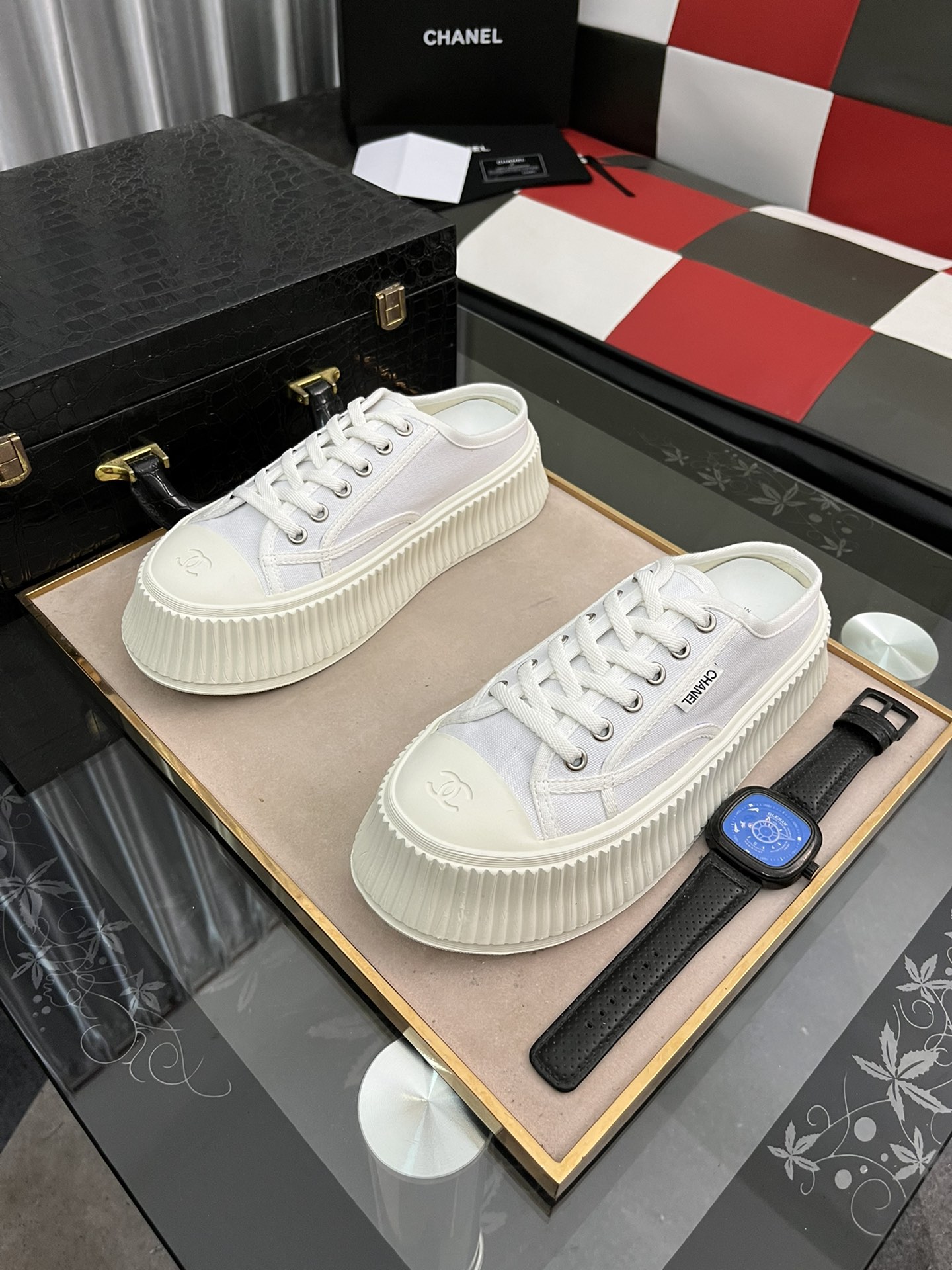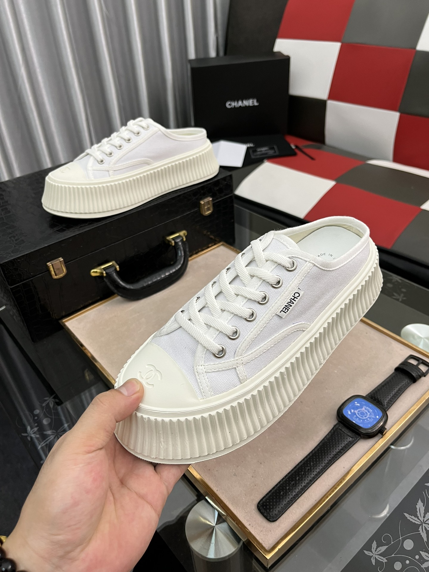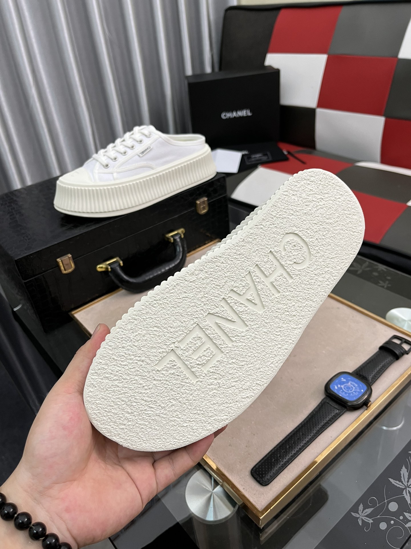 I0 女款顶级版小香C家香奈儿新厚底半拖饼干鞋目前超级流行的饼干鞋,网红明星小红书狂追热推 发售蠢萌可爱的造型带了点复古味 造型特殊,很有辨识度, 显瘦显腿长,绝对实力派,穿上也很舒服,高颜值 舒适,增高 一定要推荐给大家,今年系列的主打, 极简的风格,❶面料:原版订制帆布❷内里:水染牛皮 ❸垫脚:水染牛皮,脚感舒适,❹大底:原版开模高弹橡胶松糕大底❺底厚:5cm ❻包装:原版全套包装❼码数:35-40