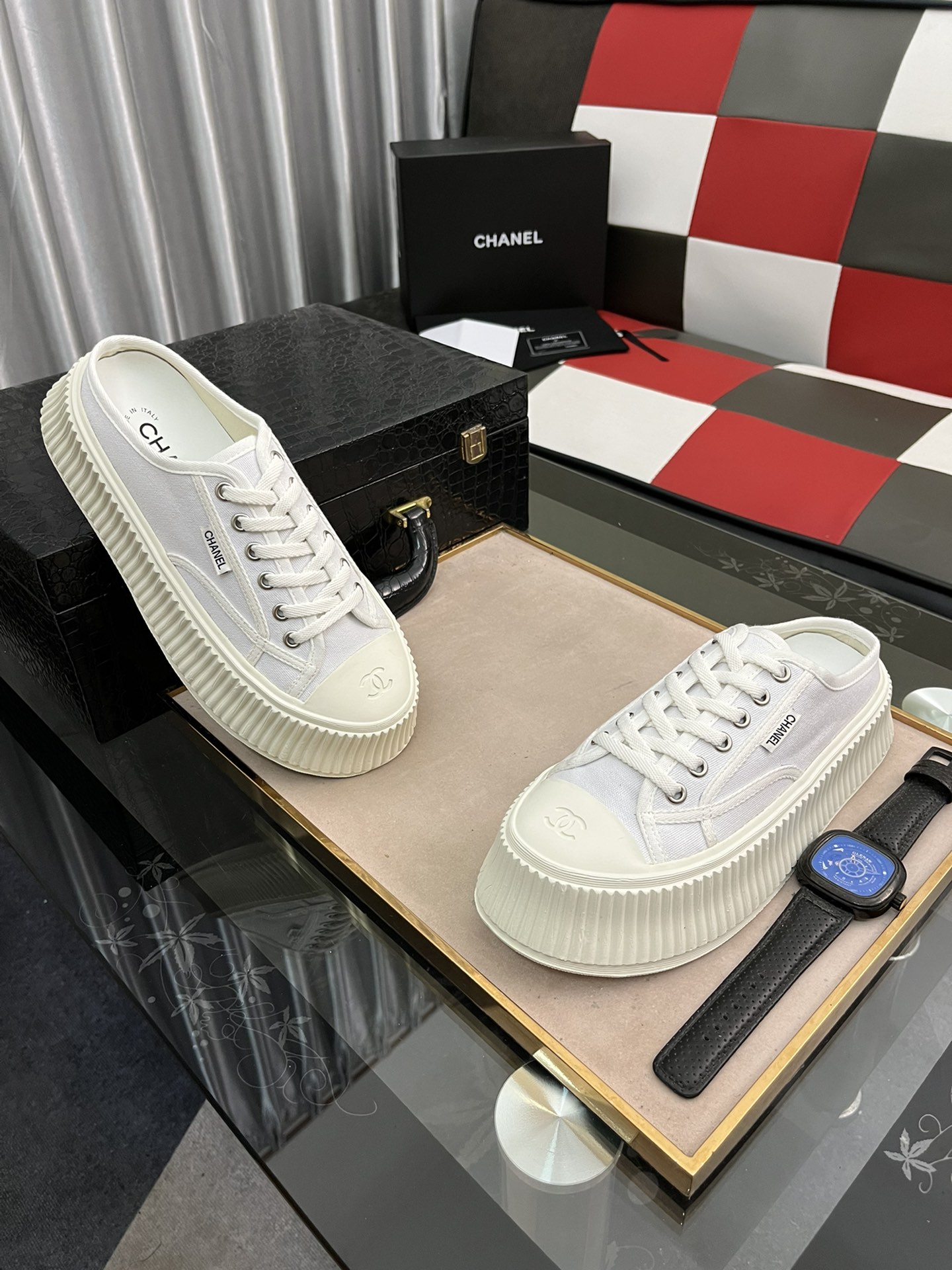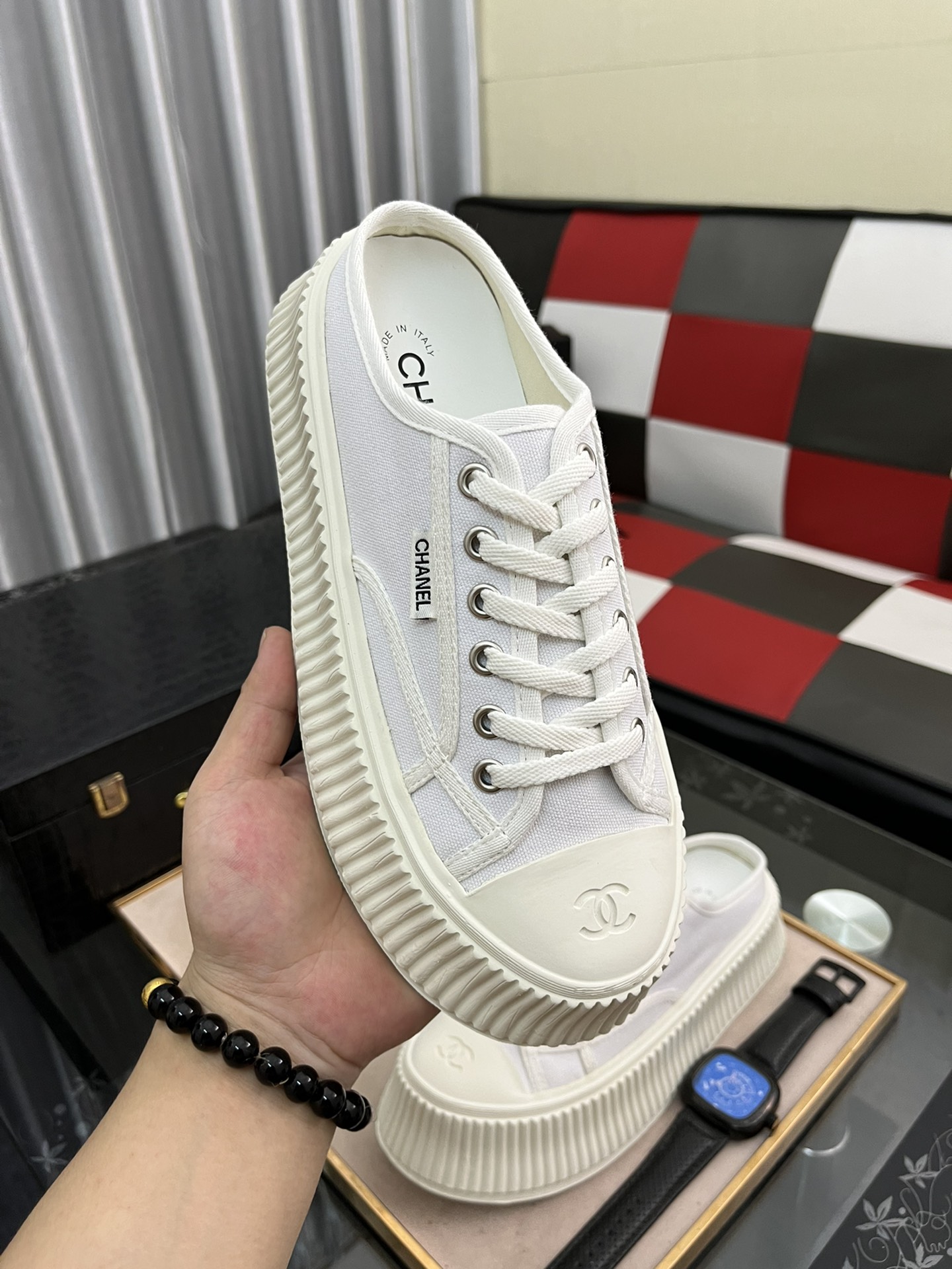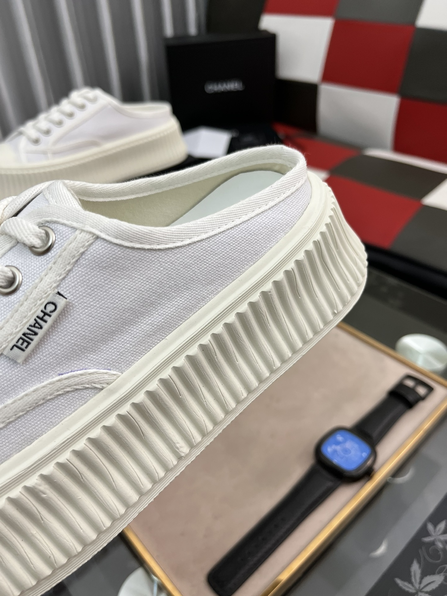 I0 女款顶级版小香C家香奈儿新厚底半拖饼干鞋目前超级流行的饼干鞋,网红明星小红书狂追热推 发售蠢萌可爱的造型带了点复古味 造型特殊,很有辨识度, 显瘦显腿长,绝对实力派,穿上也很舒服,高颜值 舒适,增高 一定要推荐给大家,今年系列的主打, 极简的风格,❶面料:原版订制帆布❷内里:水染牛皮 ❸垫脚:水染牛皮,脚感舒适,❹大底:原版开模高弹橡胶松糕大底❺底厚:5cm ❻包装:原版全套包装❼码数:35-40