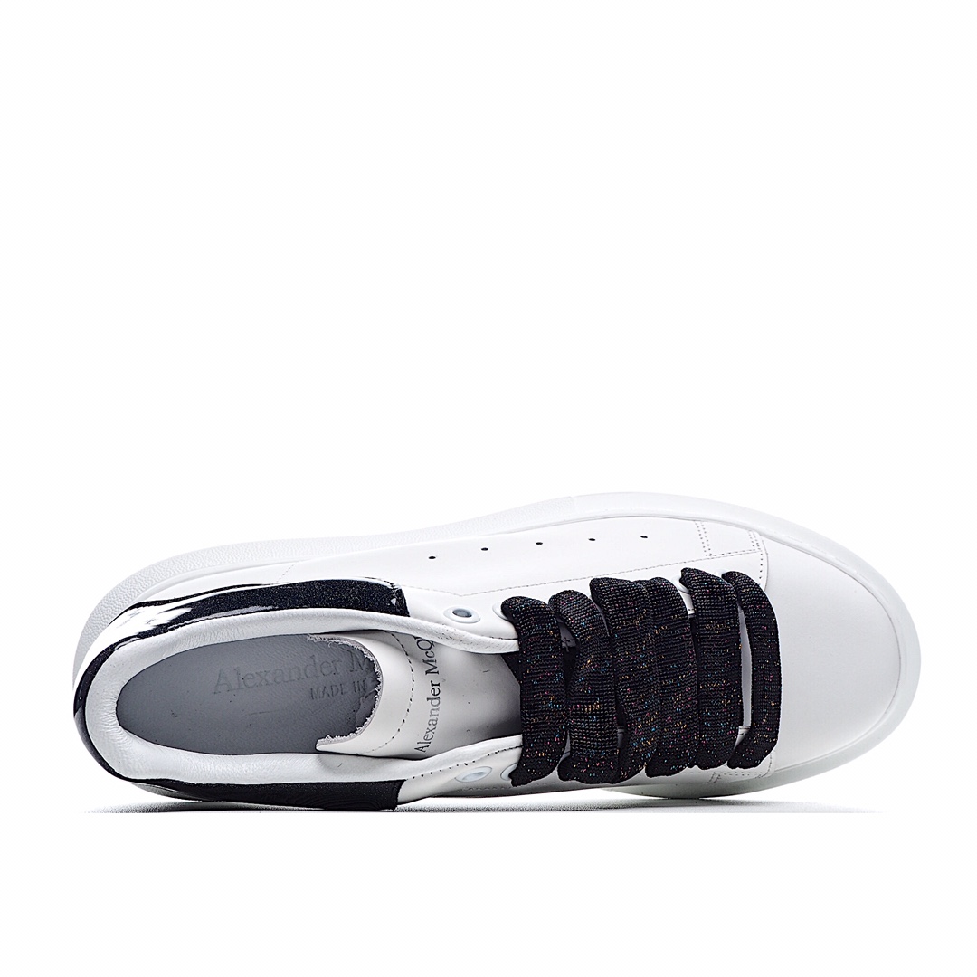 I0 官网同步最正确版本Alexander McQueen sole sneakers高奢品牌亚历山大· 麦昆 Alexander McQueen 黑闪光尾厚底休闲运动小白鞋纯手工猛帮工艺原装头层丝绸牛皮内外超软皮贴脚透气超软羊皮内里➕原版脚垫双层一次TPR精密模具大底尺码:35-39