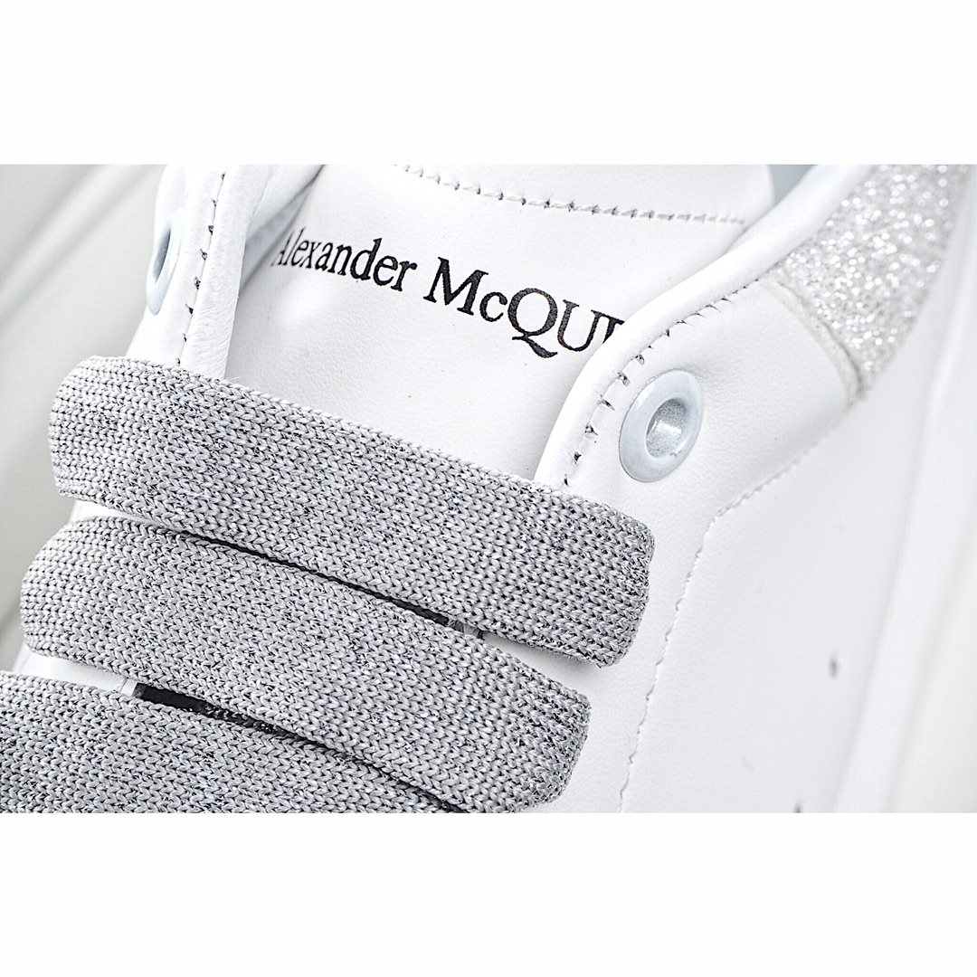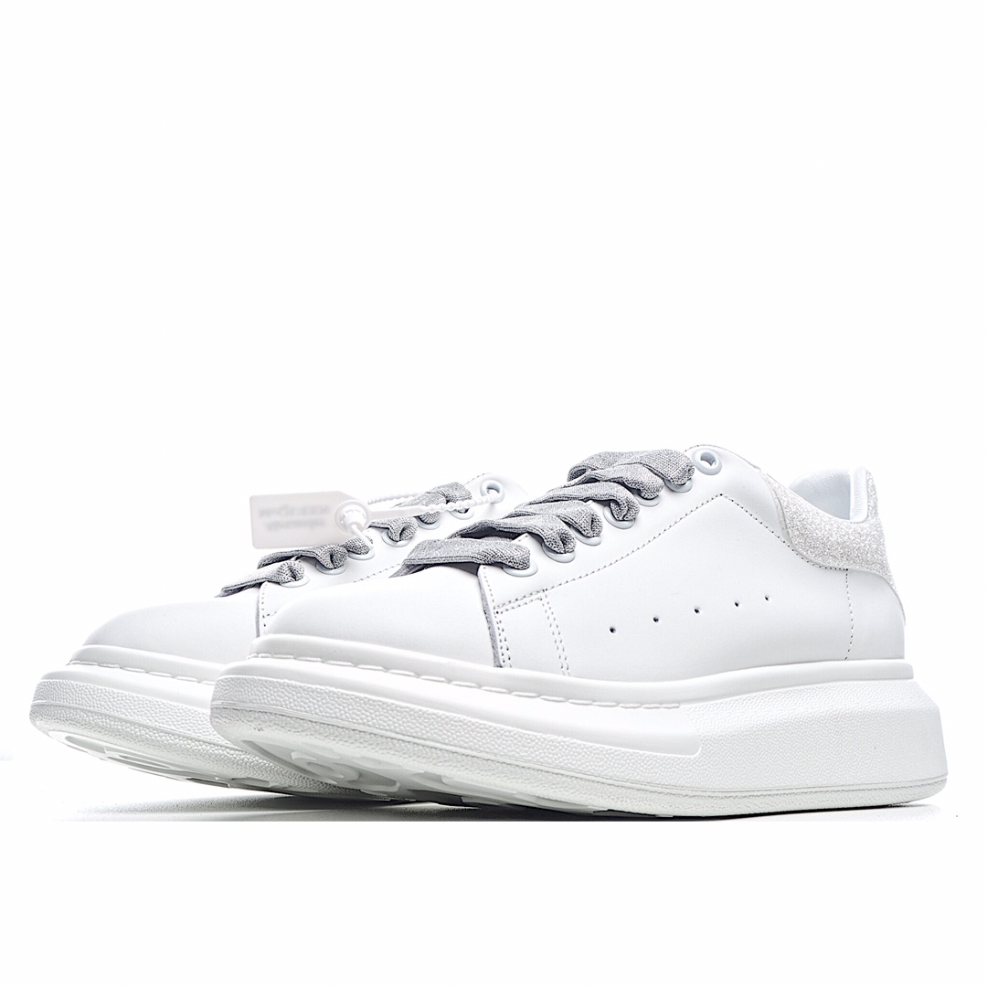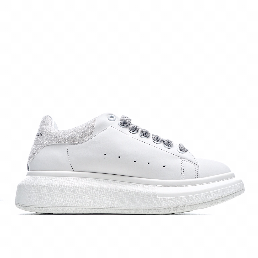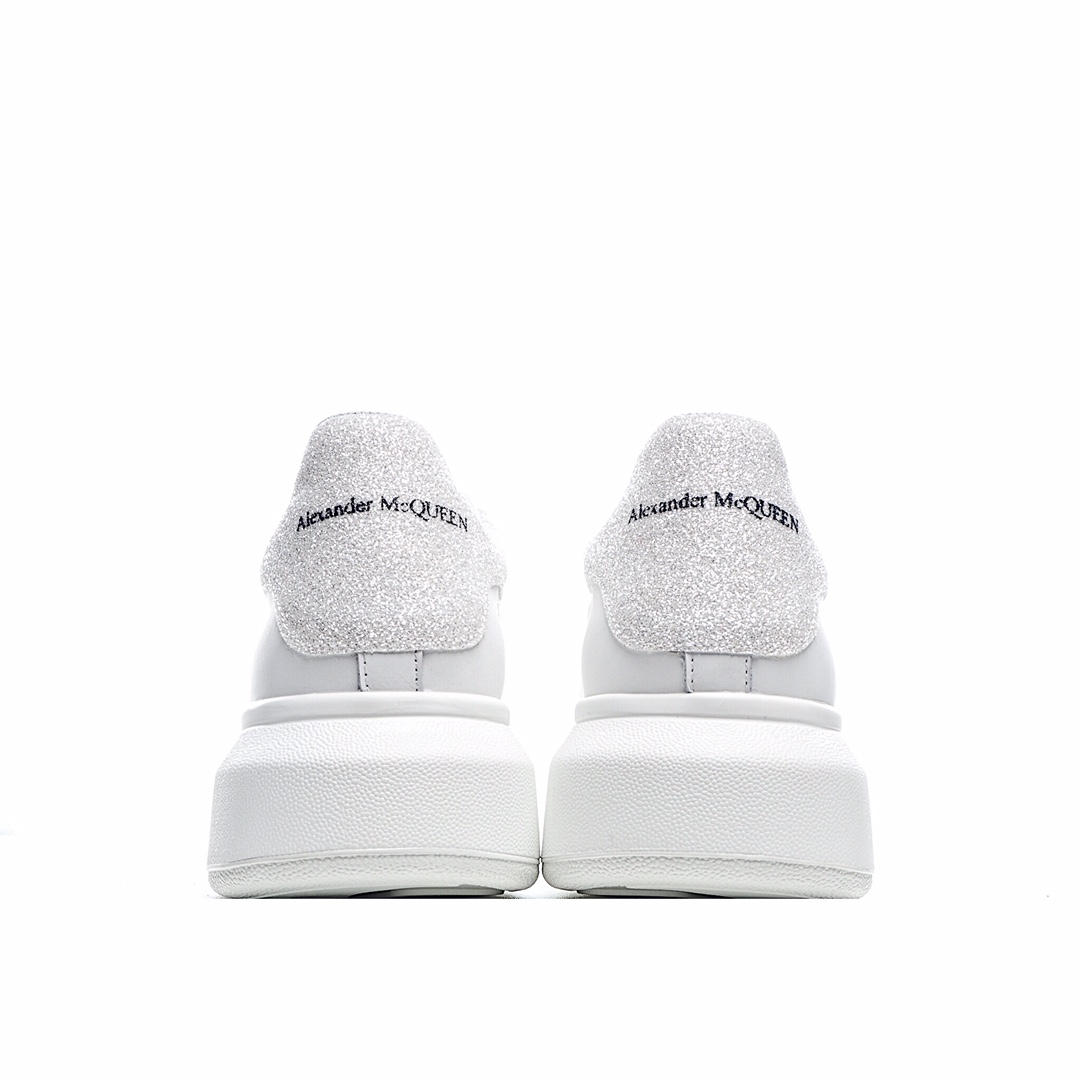 I0 官网同步最正确版本Alexander McQueen sole sneakers高奢品牌亚历山大· 麦昆 Alexander McQueen 白闪光尾厚底休闲运动小白鞋纯手工猛帮工艺原装头层丝绸牛皮内外超软皮贴脚透气超软羊皮内里➕原版脚垫双层一次TPR精密模具大底尺码:35-39