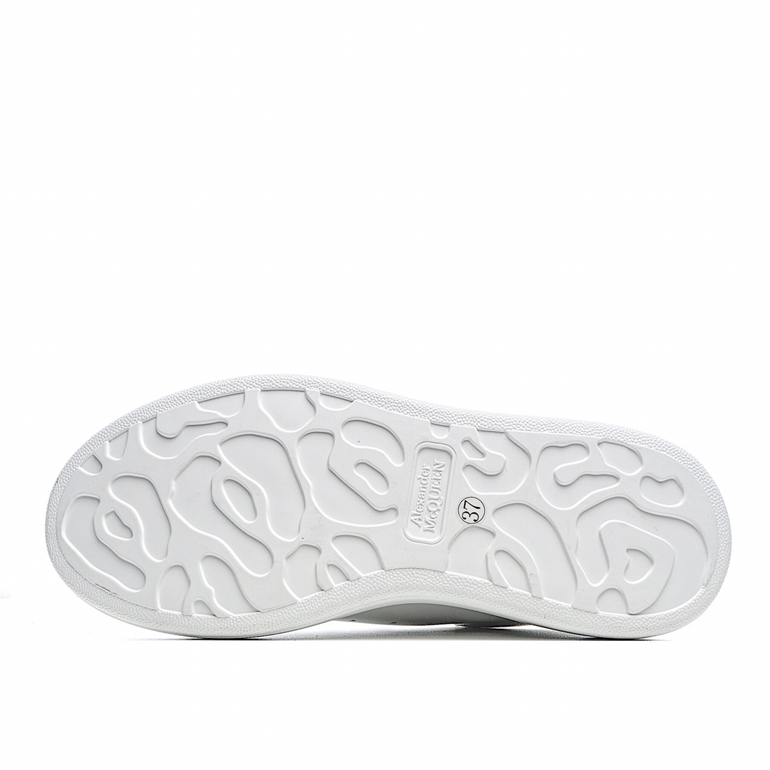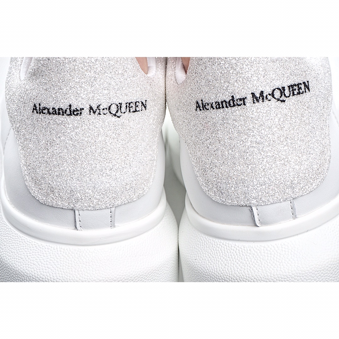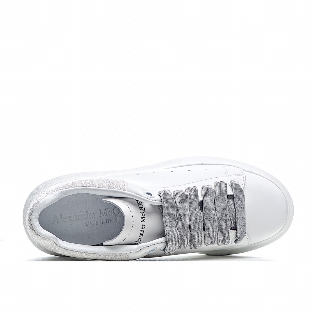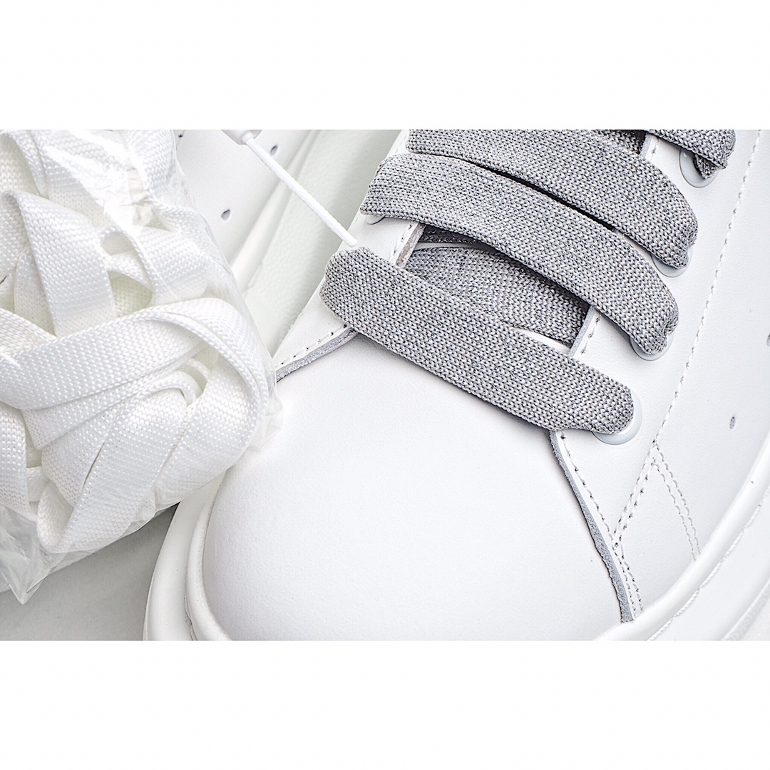 I0 官网同步最正确版本Alexander McQueen sole sneakers高奢品牌亚历山大· 麦昆 Alexander McQueen 白闪光尾厚底休闲运动小白鞋纯手工猛帮工艺原装头层丝绸牛皮内外超软皮贴脚透气超软羊皮内里➕原版脚垫双层一次TPR精密模具大底尺码:35-39