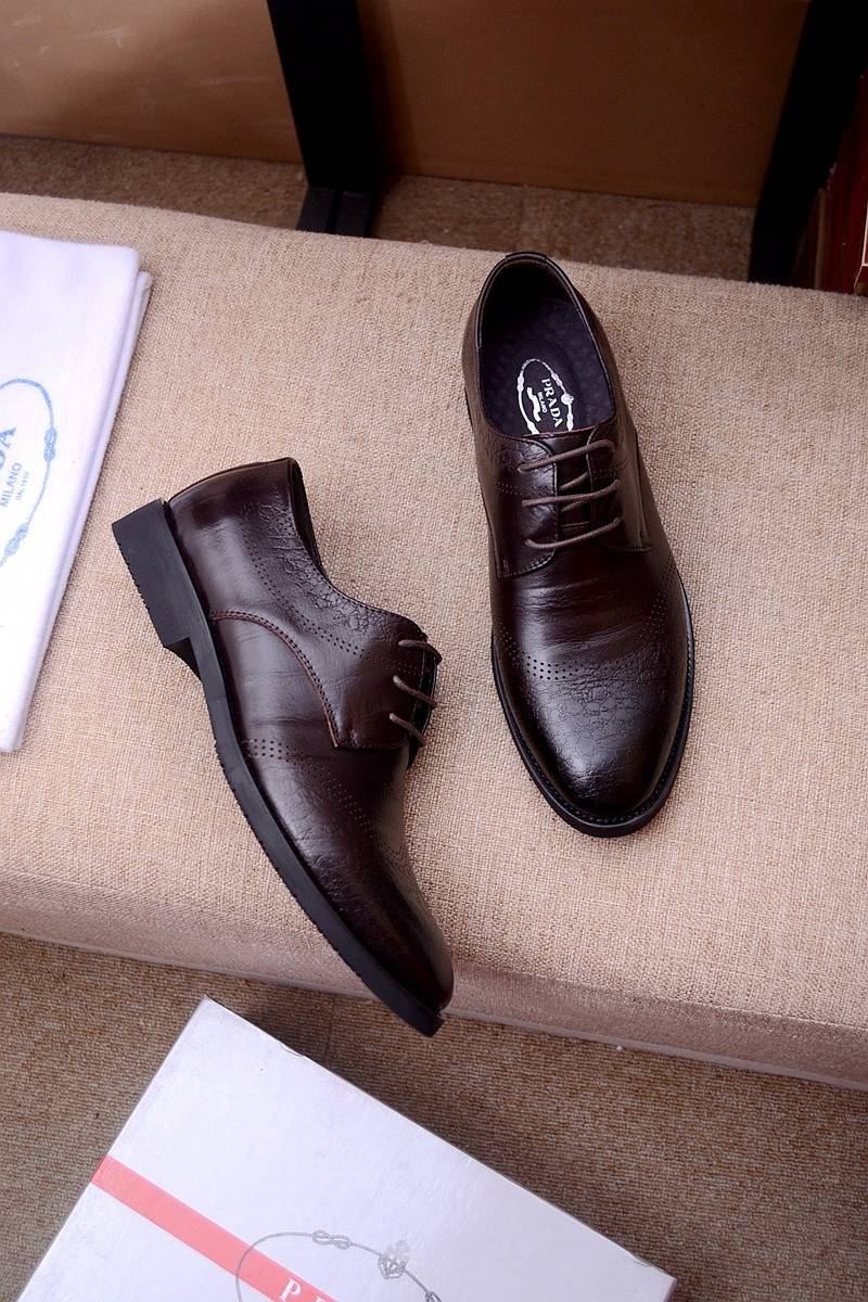 I5 。 现货 爆款高品质经典款 普拉达 Prada 专柜款原版完美复刻👉奢华时尚的高端产品✊ 完美的楦型加上顶级的手工制作,使得本款鞋子立马形成了一股浓郁的贵族气息。进口头层牛皮 G5 %牛皮💋真皮内里🎶法国进口皮鞋专用橡胶组合大底😍颜色:黑色 深咖☕️码数38~44
