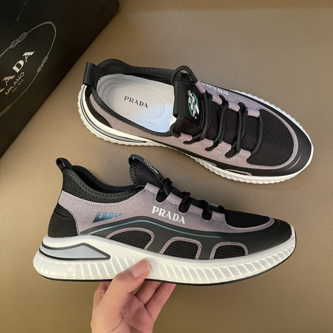I5 普拉达~独特现代风运动鞋。专柜代购🏃休闲鞋😍😍 男士2022专柜同步发售,意大利进口原版品牌精选头柔软➕特殊材质。 拒绝脱色磨脚鞋底:原厂特供原版底,😍 超酷😍 法国懒人风格设计 ⚠️ 懒人套脚套脚 原单品质 超舒服原版底 。 适合户外司机驾车完美🚗🚗 ,男鞋码数:38-44 45码可定做黑色 灰色 🉑️选