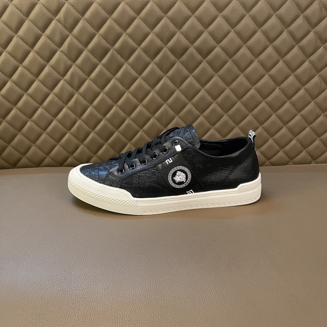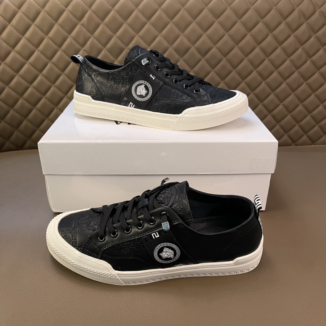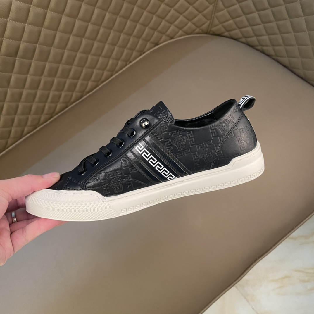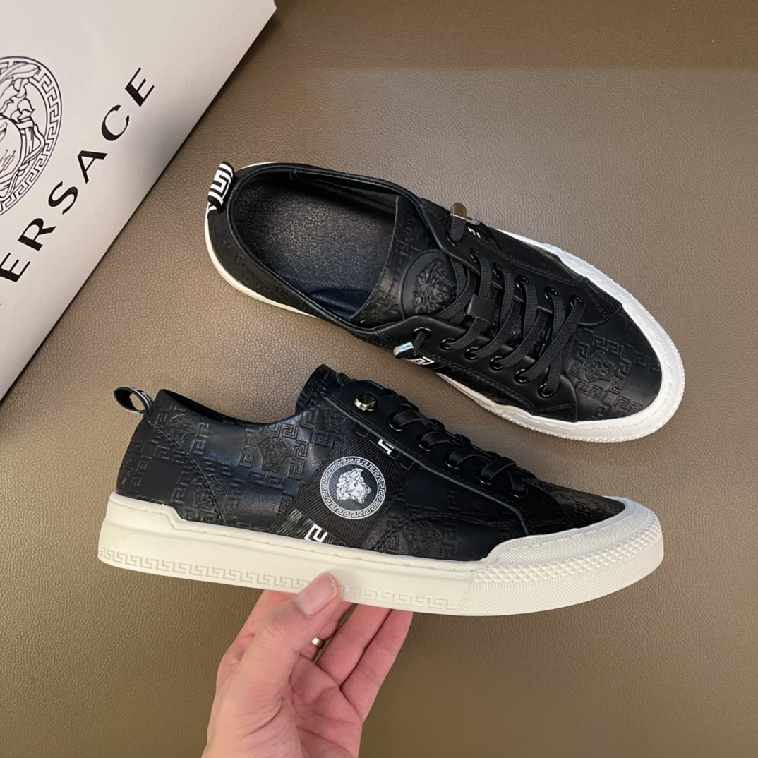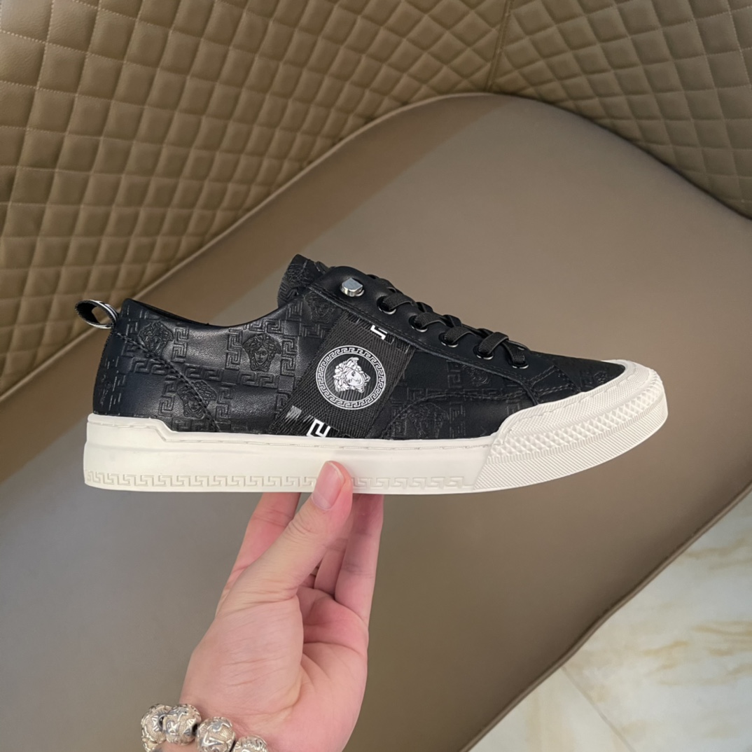 I5 最高品质范思哲VERSACE~独领风骚2⃣️0⃣️2⃣️2⃣️经典低帮懒人款,原版瓦莎琪牛皮鞋 鞋后跟霸气LOGO更是重金精心打造😍 材料:🐂进口头层小牛皮,羊皮内里🐑 欧美大师独特版面设计 完美打造专柜品质, 耐磨仿滑原版大底 运动跑步风设计 上脚独特的美,青年乐福款 休闲运动板鞋💓超级舒服。范思哲原版鞋面复刻 英伦范儿 适合司机驾车外出🚗 绝对的焦点 高端 优雅.男鞋码数38-44 45可定做黑色 🉑️选