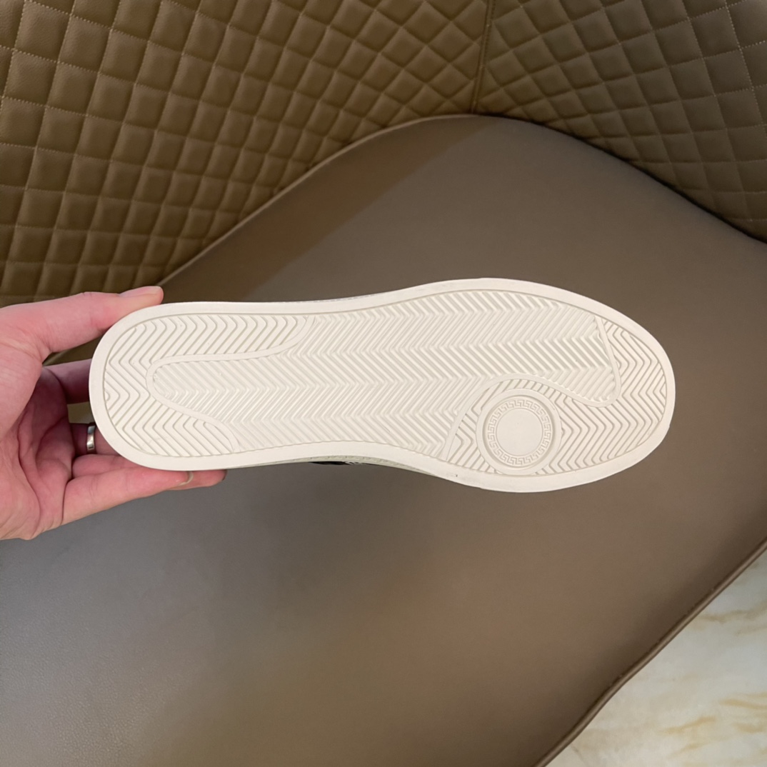 I5 最高品质范思哲VERSACE~独领风骚2⃣️0⃣️2⃣️2⃣️经典低帮懒人款,原版瓦莎琪牛皮鞋 鞋后跟霸气LOGO更是重金精心打造😍 材料:🐂进口头层小牛皮,羊皮内里🐑 欧美大师独特版面设计 完美打造专柜品质, 耐磨仿滑原版大底 运动跑步风设计 上脚独特的美,青年乐福款 休闲运动板鞋💓超级舒服。范思哲原版鞋面复刻 英伦范儿 适合司机驾车外出🚗 绝对的焦点 高端 优雅.男鞋