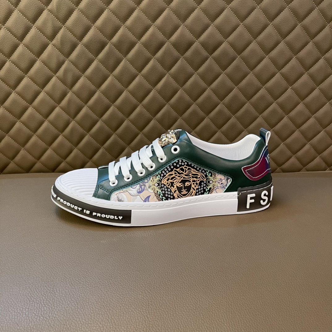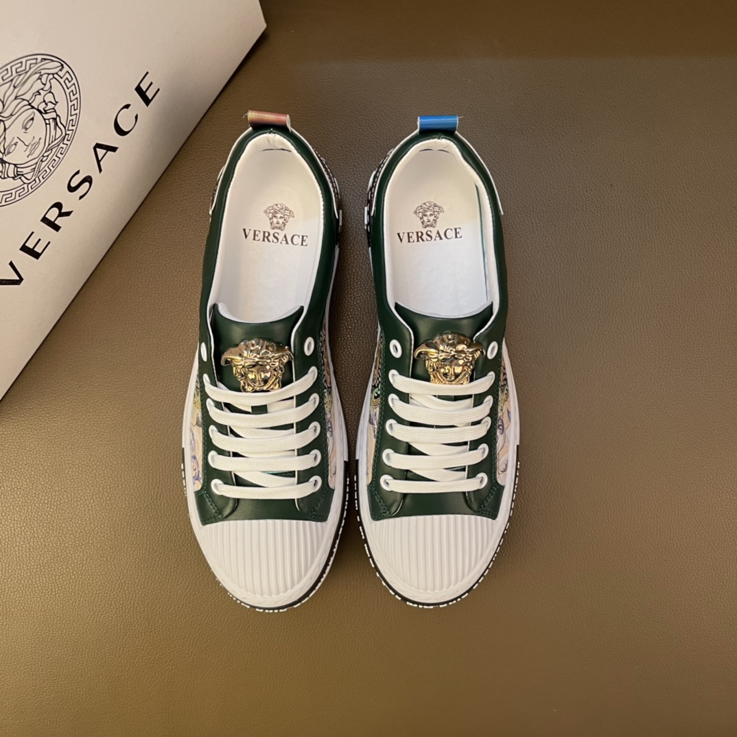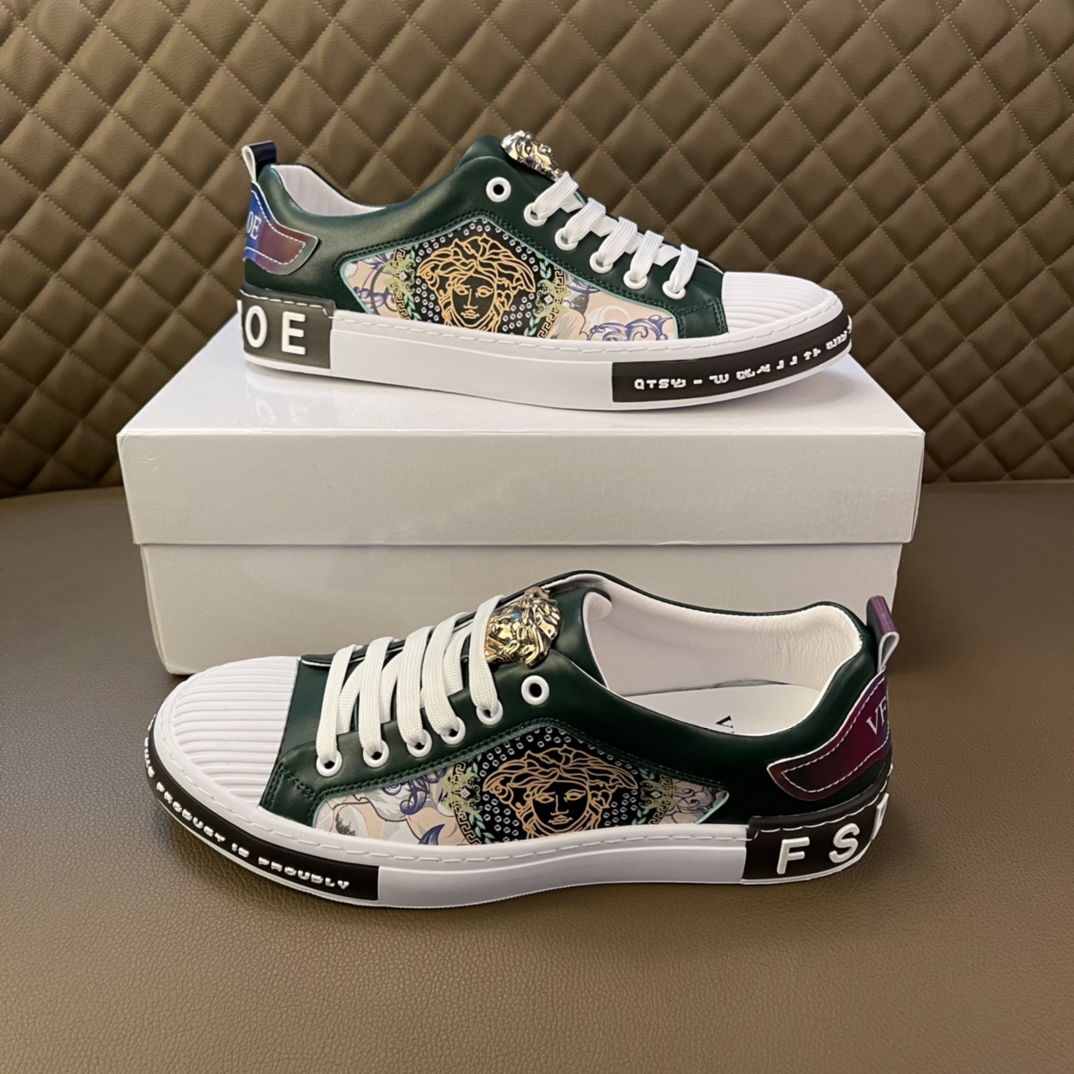 I5 最高品质范思哲VERSACE~独领风骚2022经典低帮懒人款,原版瓦莎琪运动鞋面更是精心打造😍 材料:🐂进口头层小牛皮,羊皮内里🐑 欧美大师独特版面设计 完美打造专柜品质,懒人松紧带套脚设计 耐磨仿滑原版大底 运动跑步风设计 上脚独特的美,青年乐福款 休闲运动板鞋💓超级舒服。特供红底范思哲原版鞋面复刻 英伦范儿 适合司机驾车外出🚗 绝对的焦点 高端 优雅.男装男鞋码数38-44 45可定做 黑色白色 🉑️选 长期供实体店补货