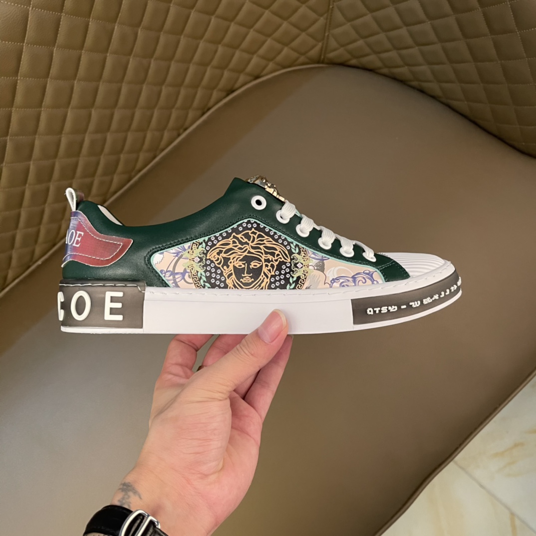 I5 最高品质范思哲VERSACE~独领风骚2022经典低帮懒人款,原版瓦莎琪运动鞋面更是精心打造😍 材料:🐂进口头层小牛皮,羊皮内里🐑 欧美大师独特版面设计 完美打造专柜品质,懒人松紧带套脚设计 耐磨仿滑原版大底 运动跑步风设计 上脚独特的美,青年乐福款 休闲运动板鞋💓超级舒服。特供红底范思哲原版鞋面复刻 英伦范儿 适合司机驾车外出🚗 绝对的焦点 高端 优雅.男装男鞋