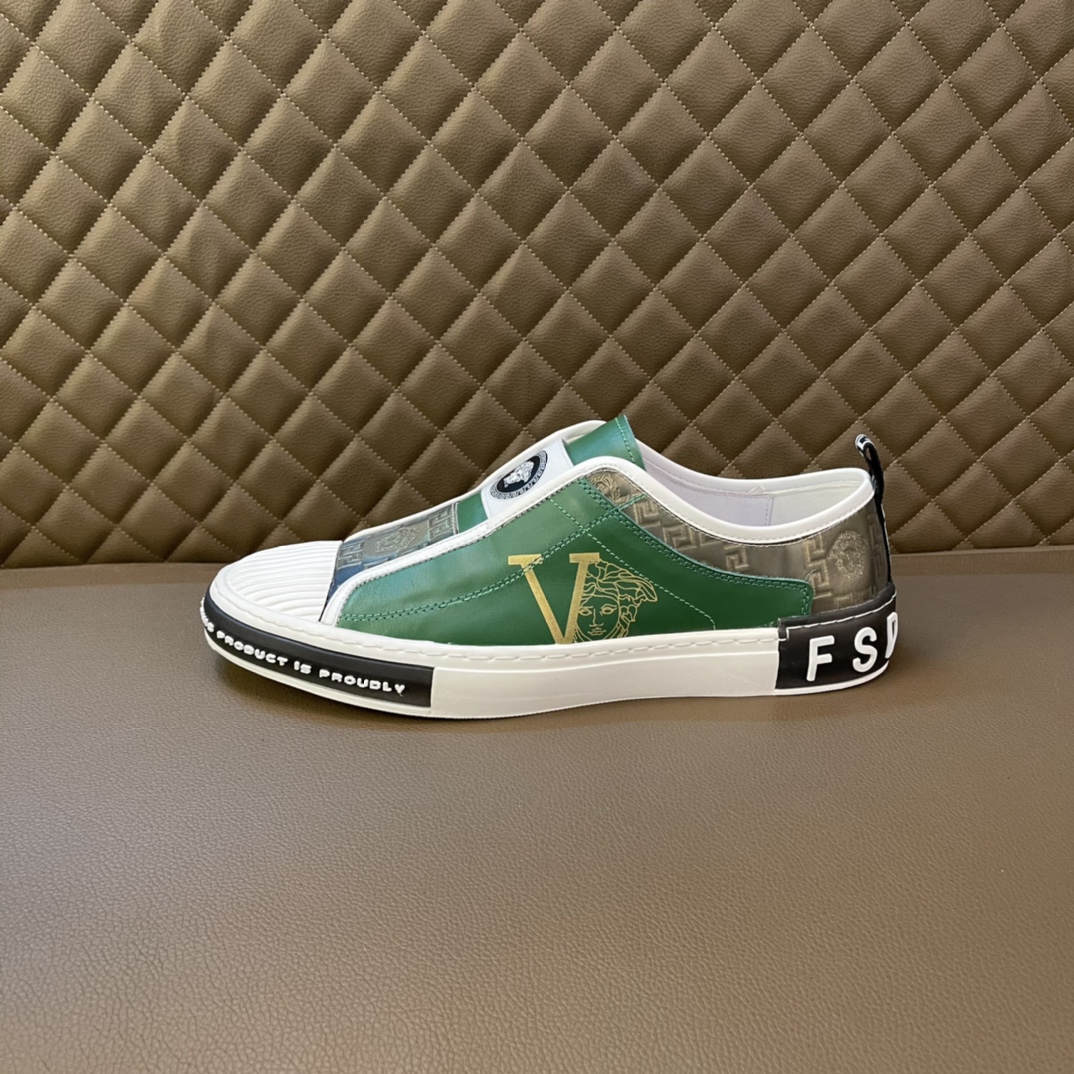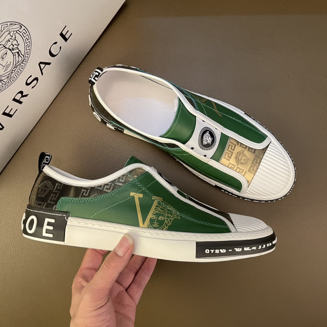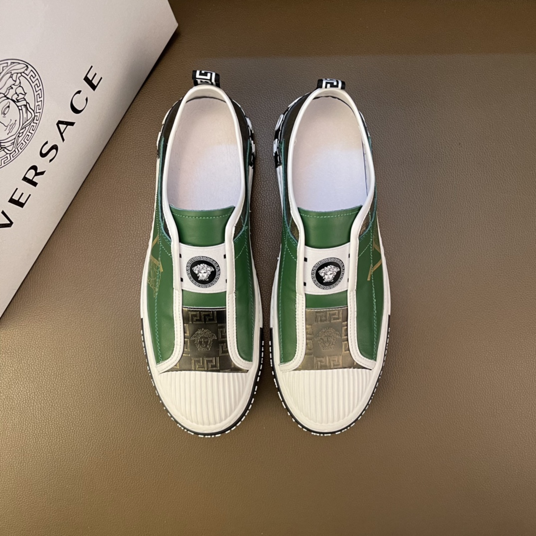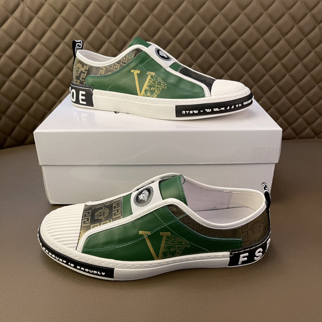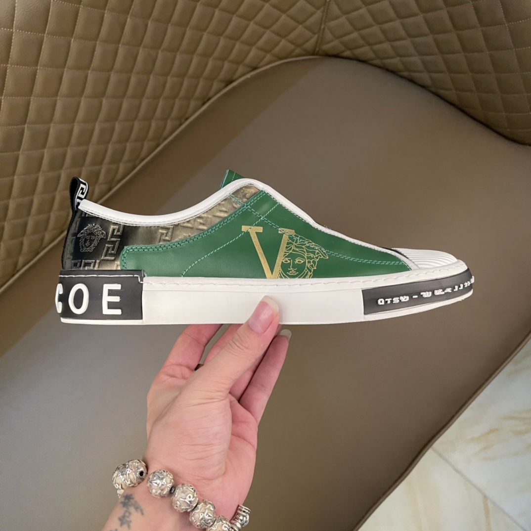I5 最高品质范思哲VERSACE~独领风骚2022经典低帮懒人款,原版瓦莎琪运动鞋面更是精心打造😍 材料:🐂进口头层小牛皮,羊皮内里🐑 欧美大师独特版面设计 完美打造专柜品质,懒人松紧带套脚设计 耐磨仿滑原版大底 运动跑步风设计 上脚独特的美,青年乐福款 休闲运动板鞋💓超级舒服。特供红底范思哲原版鞋面复刻 英伦范儿 适合司机驾车外出🚗 绝对的焦点 高端 优雅.男装男鞋