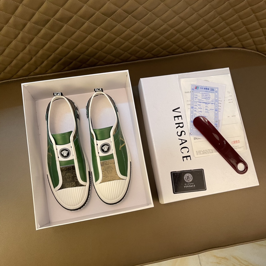 I5 最高品质范思哲VERSACE~独领风骚2022经典低帮懒人款,原版瓦莎琪运动鞋面更是精心打造😍 材料:🐂进口头层小牛皮,羊皮内里🐑 欧美大师独特版面设计 完美打造专柜品质,懒人松紧带套脚设计 耐磨仿滑原版大底 运动跑步风设计 上脚独特的美,青年乐福款 休闲运动板鞋💓超级舒服。特供红底范思哲原版鞋面复刻 英伦范儿 适合司机驾车外出🚗 绝对的焦点 高端 优雅.男装男鞋码数38-44 45可定做 两色 🉑️选 长期供实体店