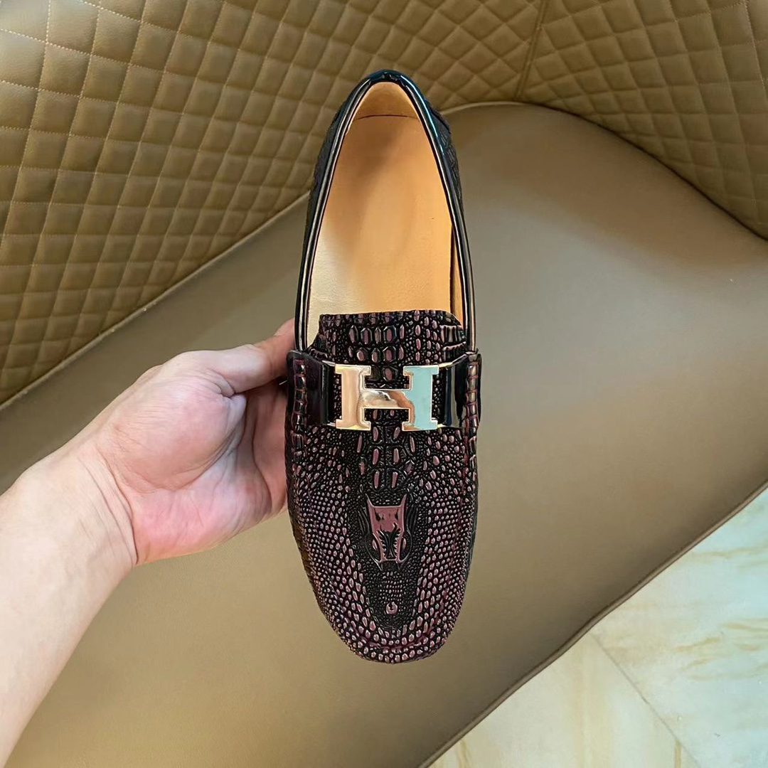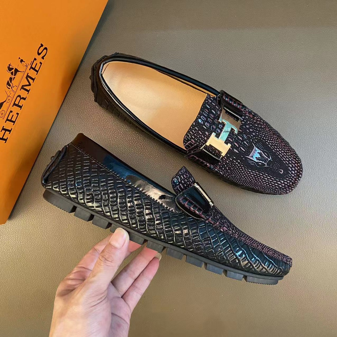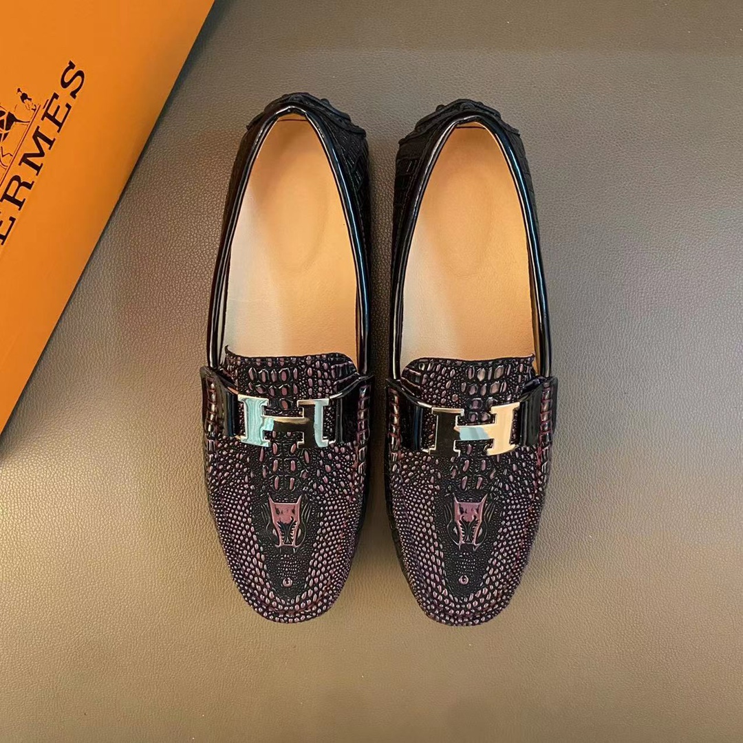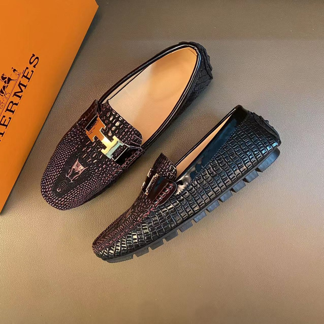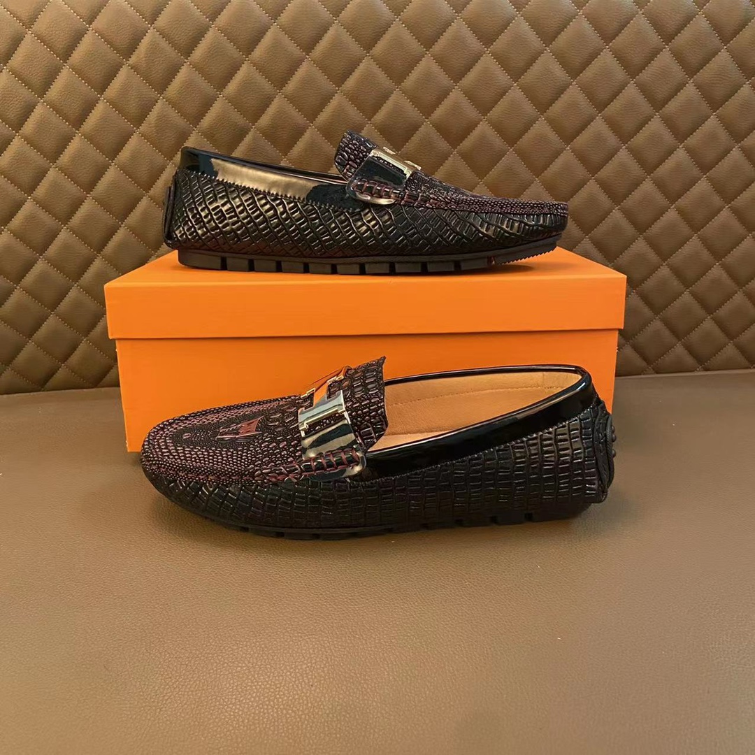 I5 爱马仕 Hermes 豆豆鞋2022最新专柜一比一套脚款。原单品质👹头层意大利进口牛皮💓[得意]💓🇫🇷法国懒人乐福风格设计 鞋面原版磨砂牛皮 原版纹更是显出商务 青年潮皮鞋 采用羊皮里 ,商务风板鞋 正装鞋 结婚专用 时尚最高品质板鞋出货 🎬 ❤进口凸显品牌独特魅力😔适合司机驾车穿戴 🚗 上脚十分舒适 男鞋码数:38-44码45可定做 黑色 棕色 🉑️选