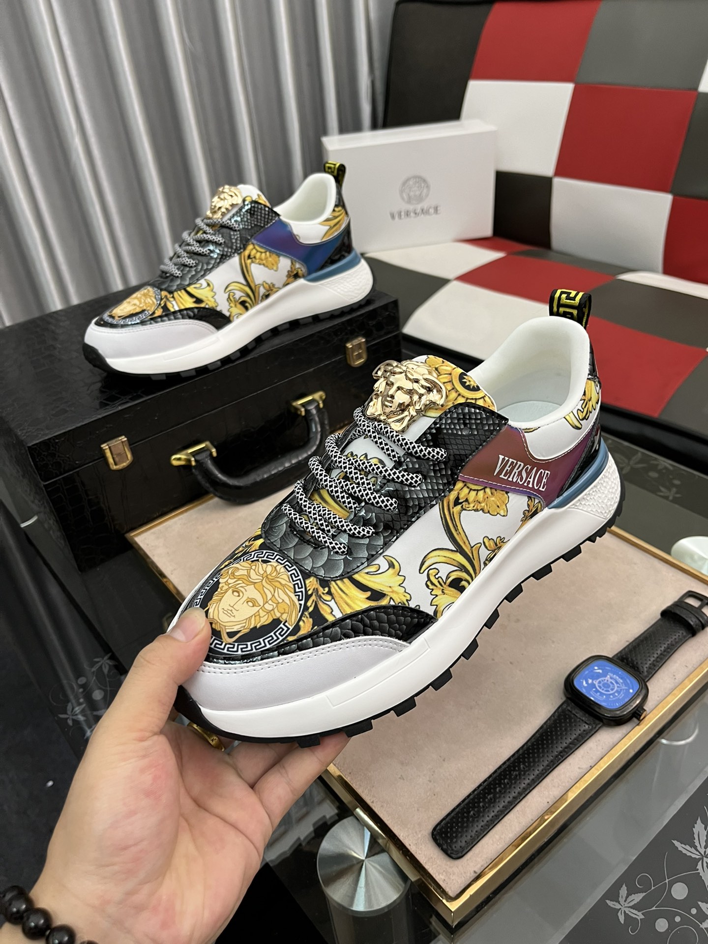 I5 范思哲男士休闲鞋使用超立体的时装走秀效果😄如此的生动,鞋面采用意大利高端头层牛皮➕欧洲顶级羊皮内里制作 ,柔软舒适,设计带给人低调内敛的时尚感 码数38-442⃣️色可选