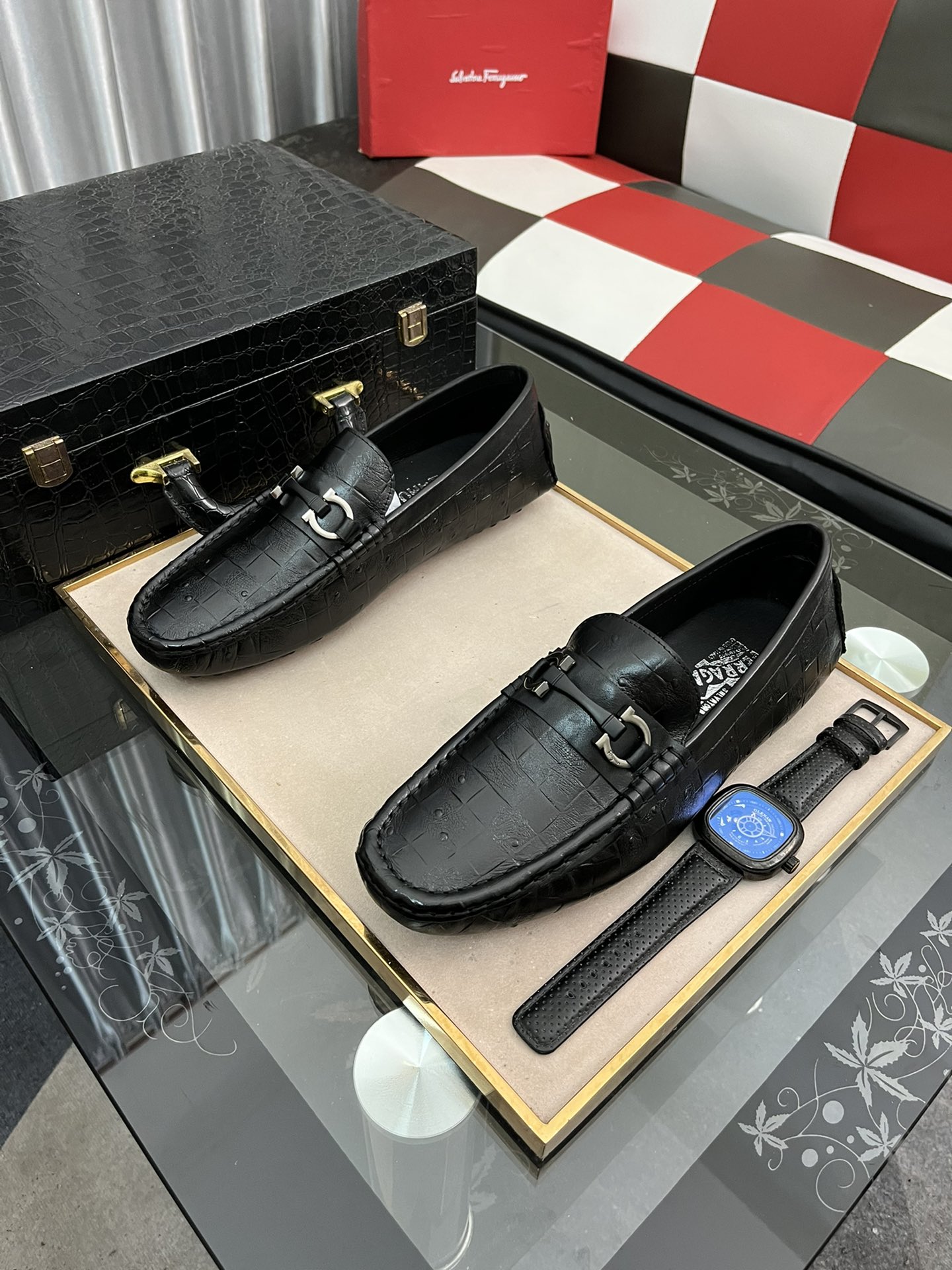 I5 菲拉格慕豆豆鞋男士潮款✅时尚休闲驾车便鞋休闲鞋 进口意大利牛皮面料 [玫瑰]超滑质感 吸汗透气 真皮内里✅ 法国乐福套脚设计风格 👟 原版耐磨防滑软底 🎉低调大方 上脚效果超赞..男鞋码数:现货38-44