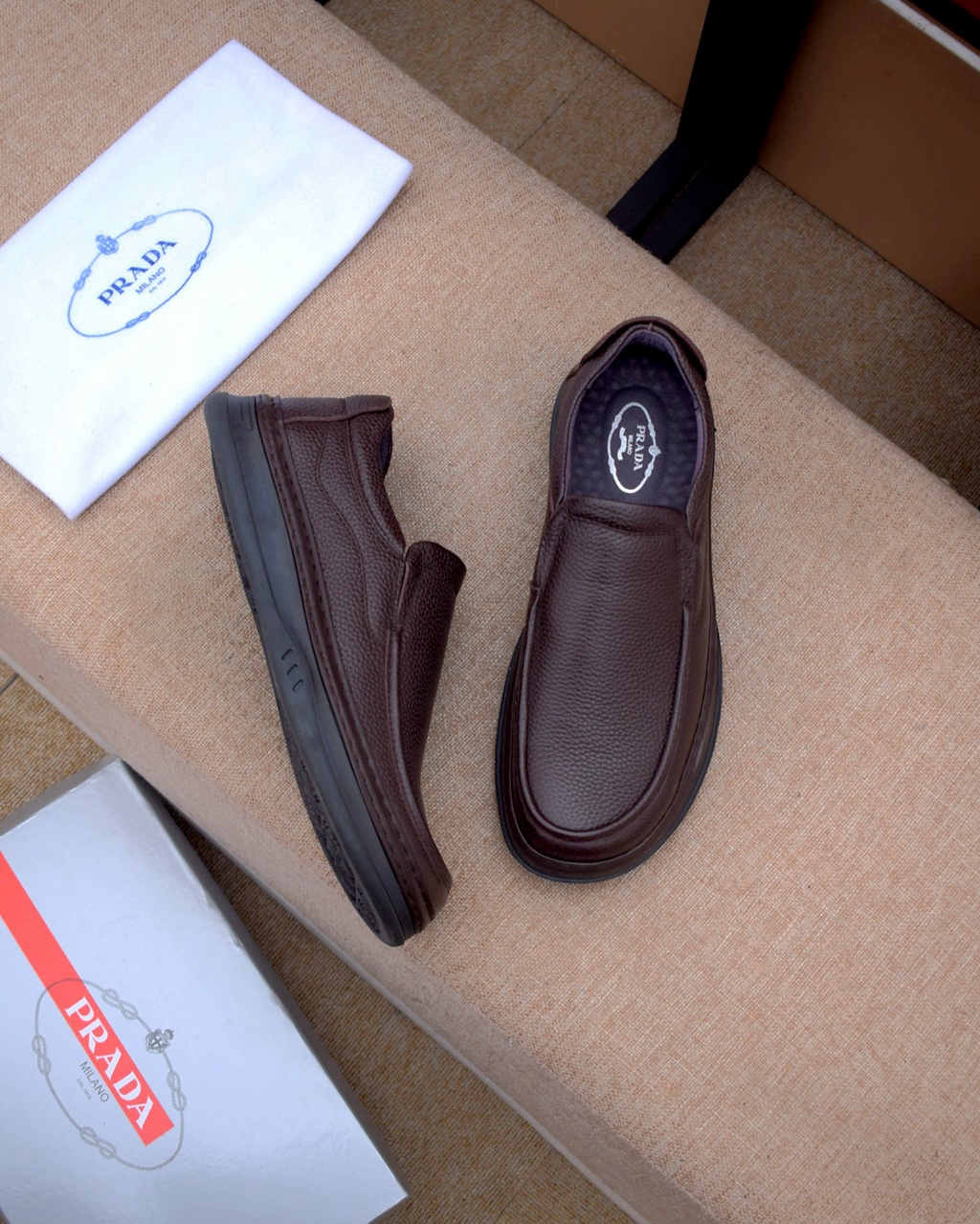 I5 100%头层牛皮软皮 普拉达 Prada 官网最🎁休闲时尚男鞋👟爆款💥版型简洁大气,潮男专属.独有的官网最新品牌元素👑原版装,时尚又大方,面料原版进口头层牛皮➕真皮内里, 原版柔软耐磨大底,专柜经典款实物拍摄,