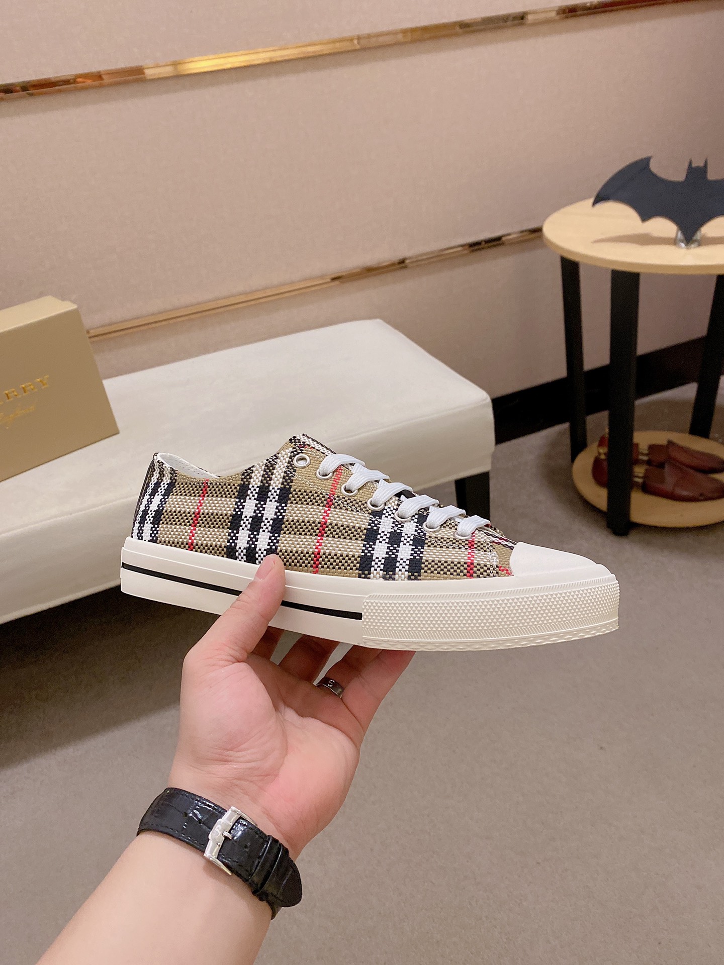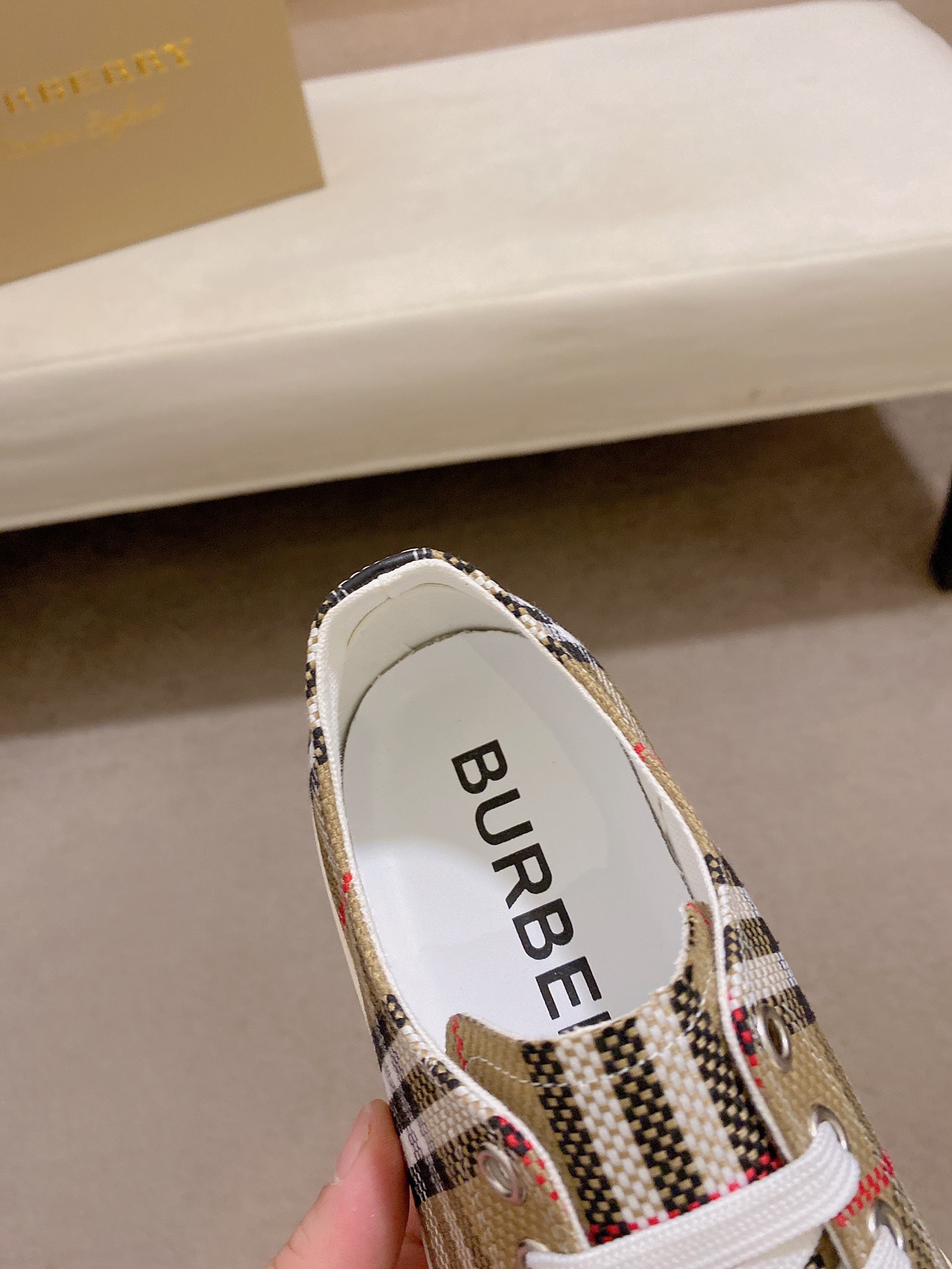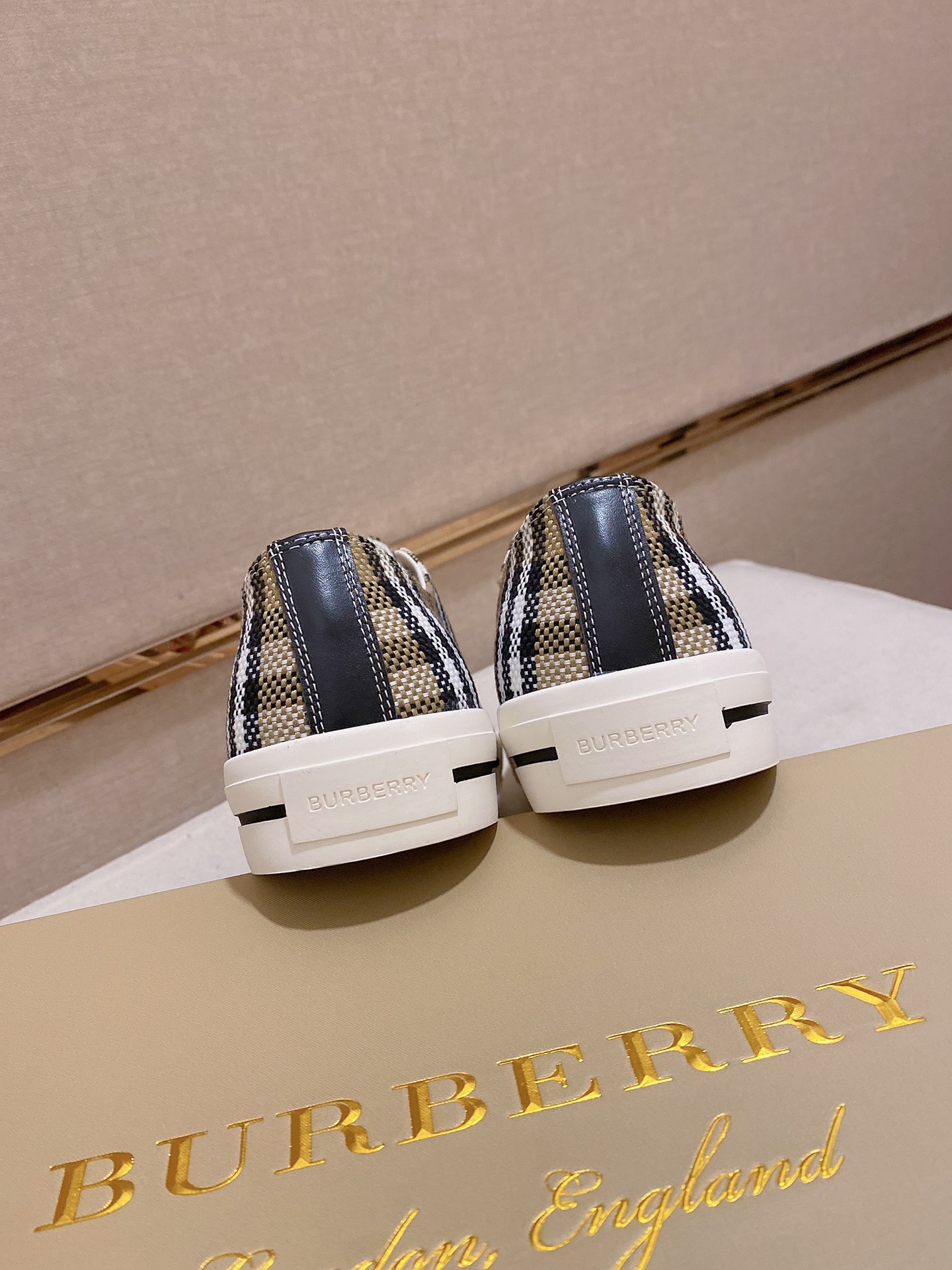 I5 2022 Burberry 巴宝莉 家男士经典低帮运动鞋,以 Vintage 复古格纹棉材质搭配小牛皮焕新演绎,装饰焕新的品牌徽标。头层羊皮内里,鞋跟饰有 Burberry 字母压花徽标,TPU原版大底
