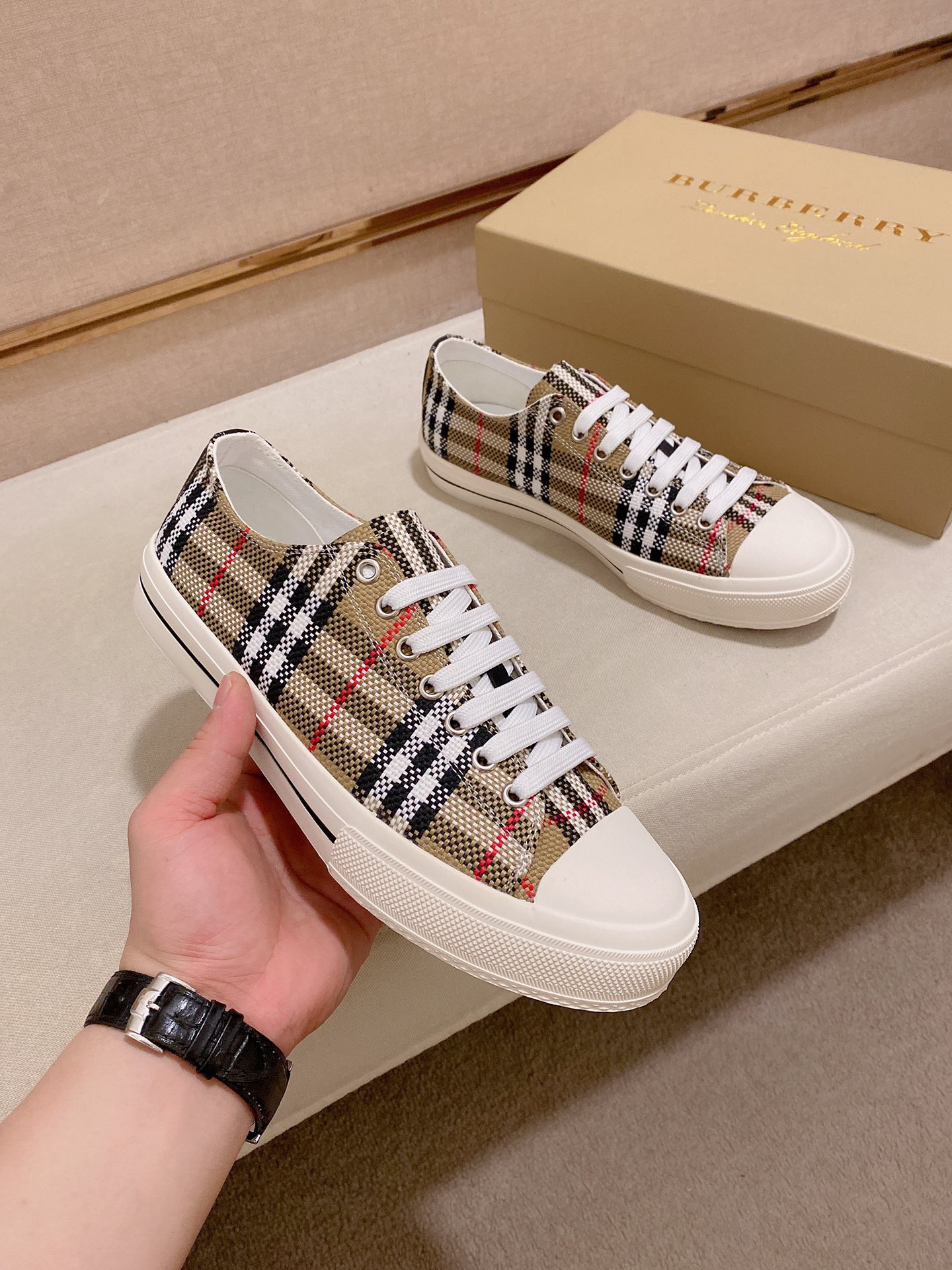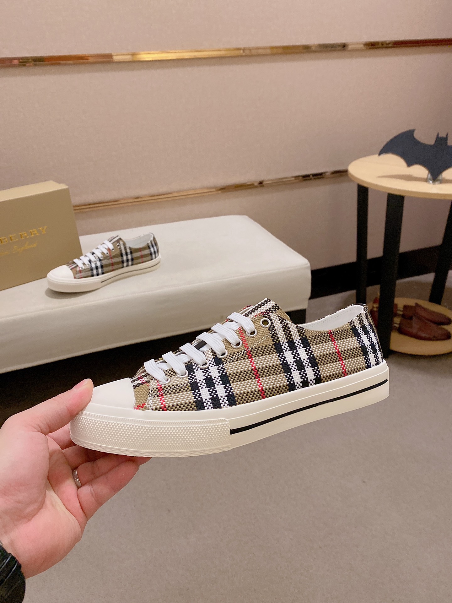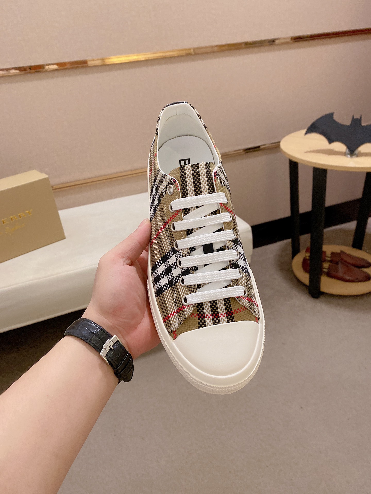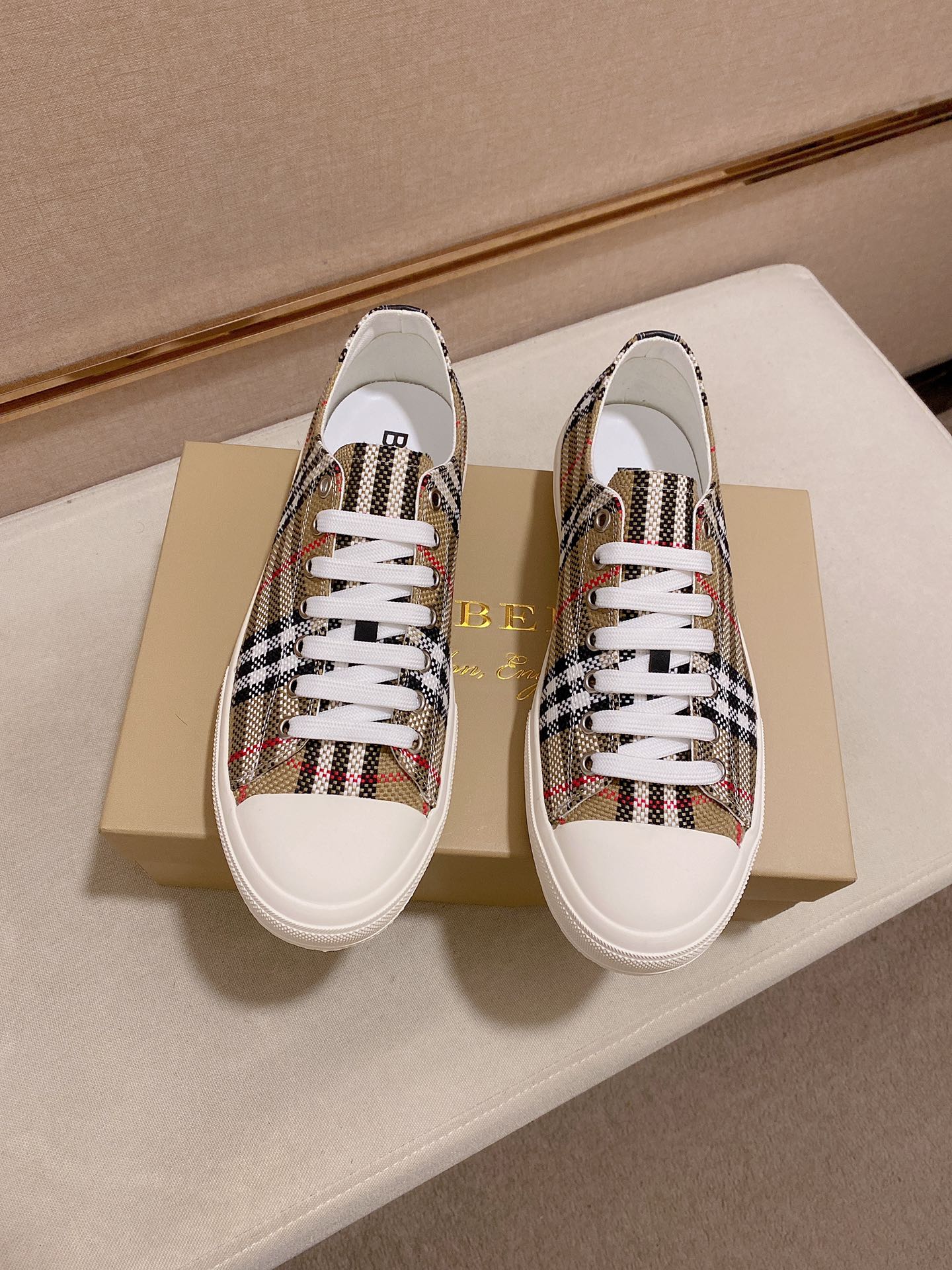 I5 2022 Burberry 巴宝莉 家男士经典低帮运动鞋,以 Vintage 复古格纹棉材质搭配小牛皮焕新演绎,装饰焕新的品牌徽标。头层羊皮内里,鞋跟饰有 Burberry 字母压花徽标,TPU原版大底