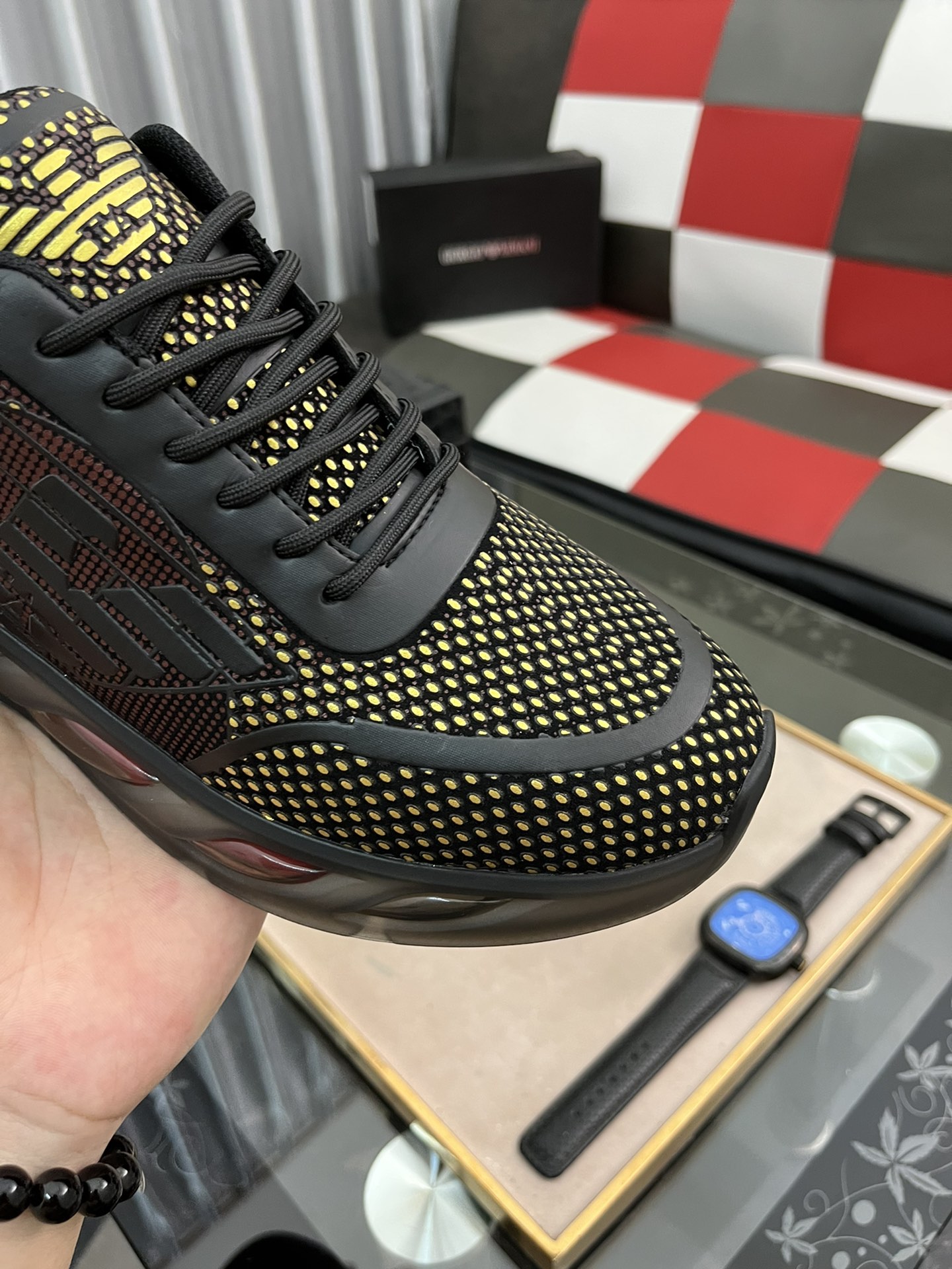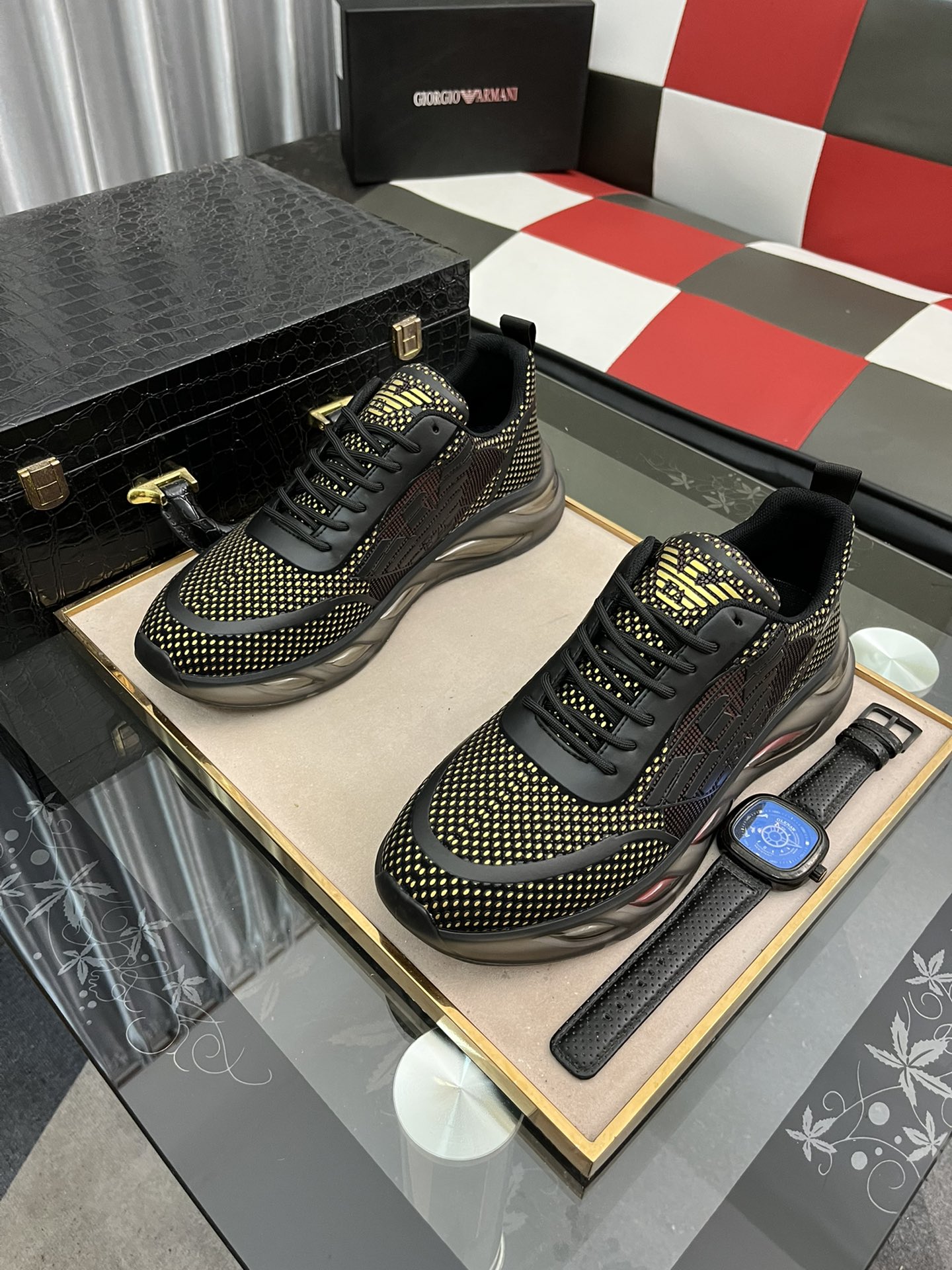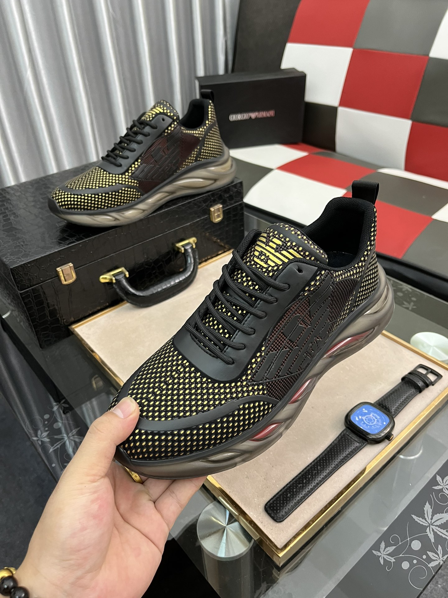 I5 Armani阿玛尼休闲鞋香港🆙顶级原单 经典回归 🙏 进口意大利进口飞织透气面料🙏真皮垫脚。柔软防滑橡胶大底, 高品质打造👟 流畅的宣型 精细的做工 ,时尚又休闲,😍码数:38-444⃣️色可选