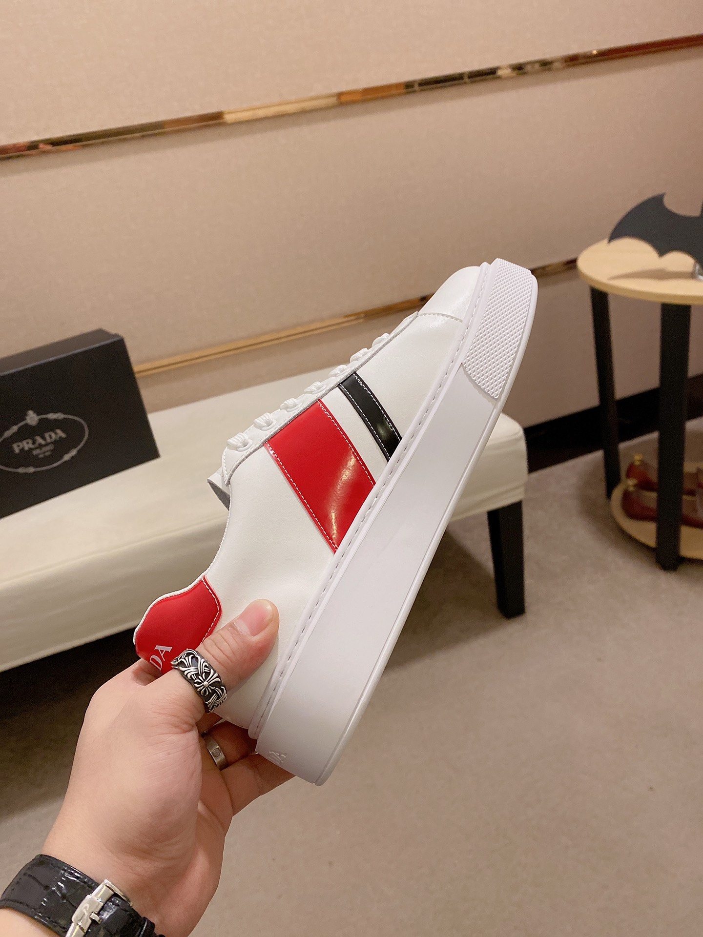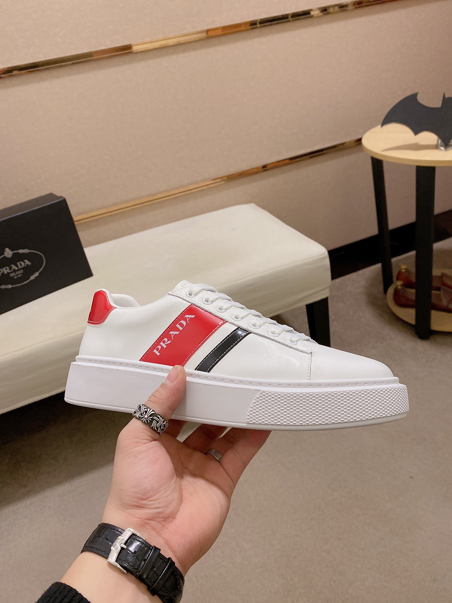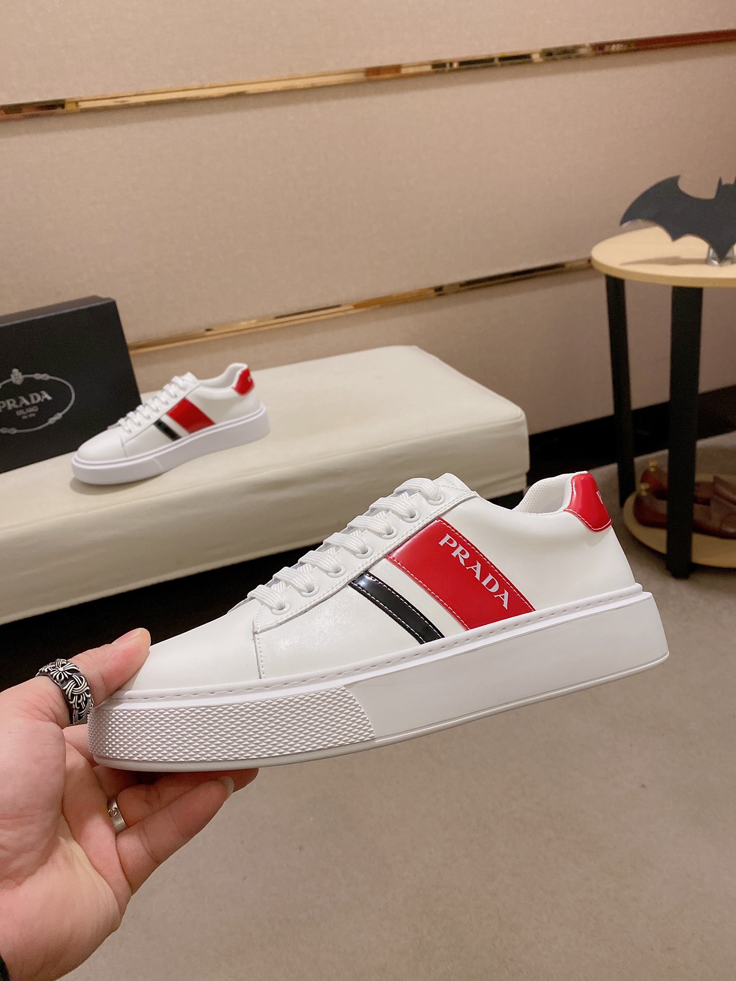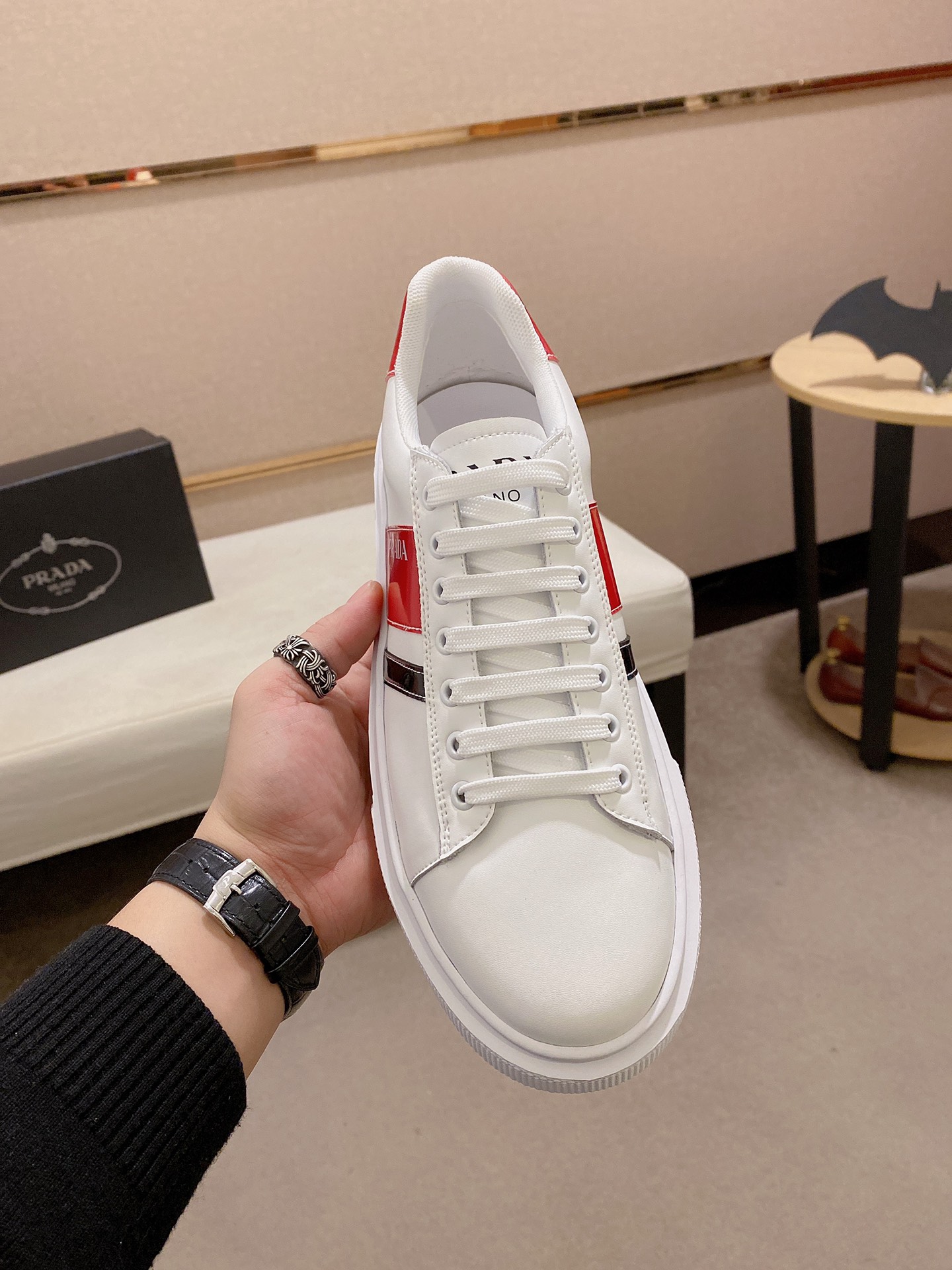 I5 Prada ~普拉达潮流上市 官网同款 专柜品质 原版搭配 精选头层小牛皮面料。舒适透气羊皮内里 做工精细 用料上层 G5 %纯牛皮打造 原版楦型 上脚舒适 鞋码38到44
