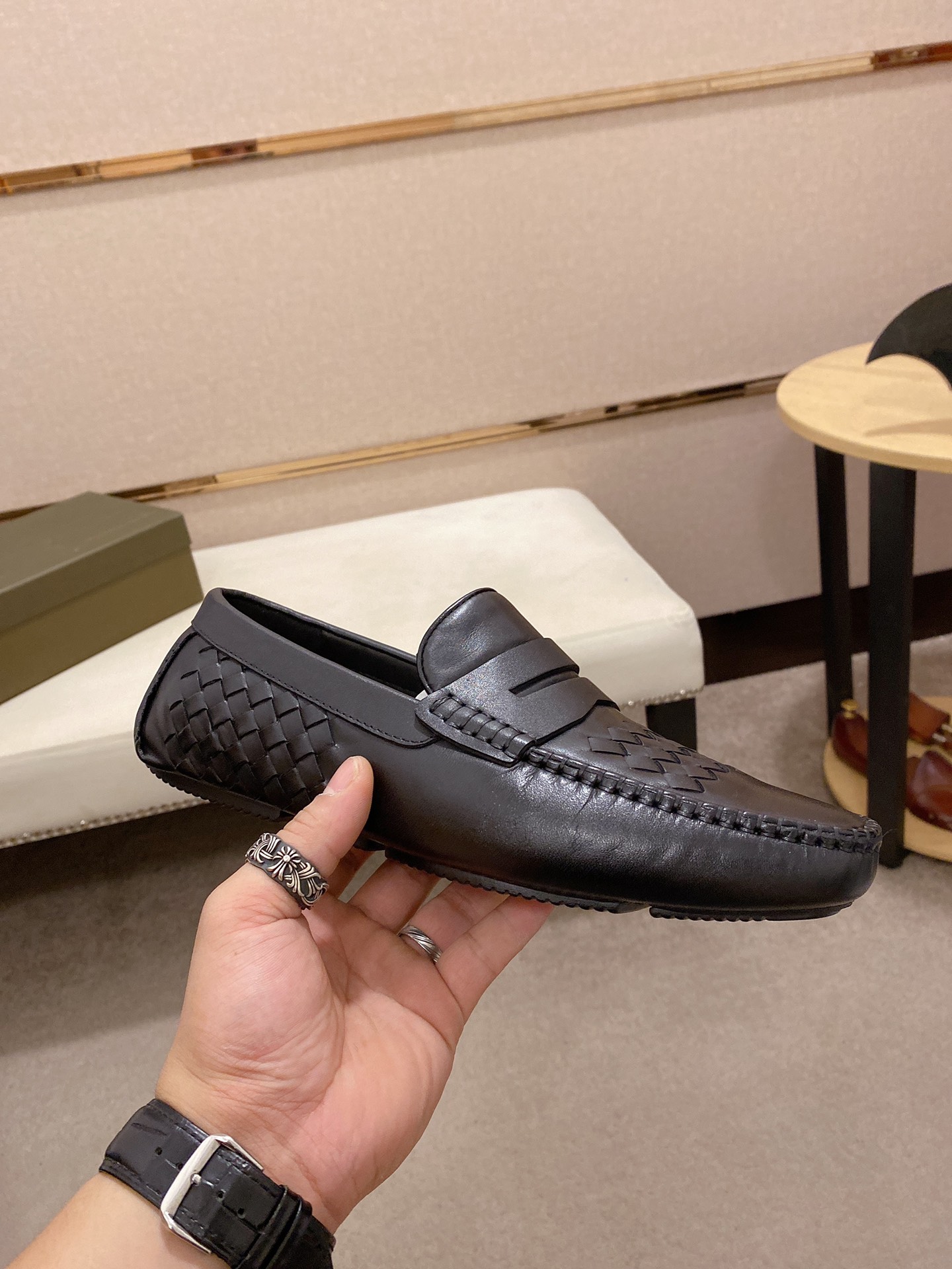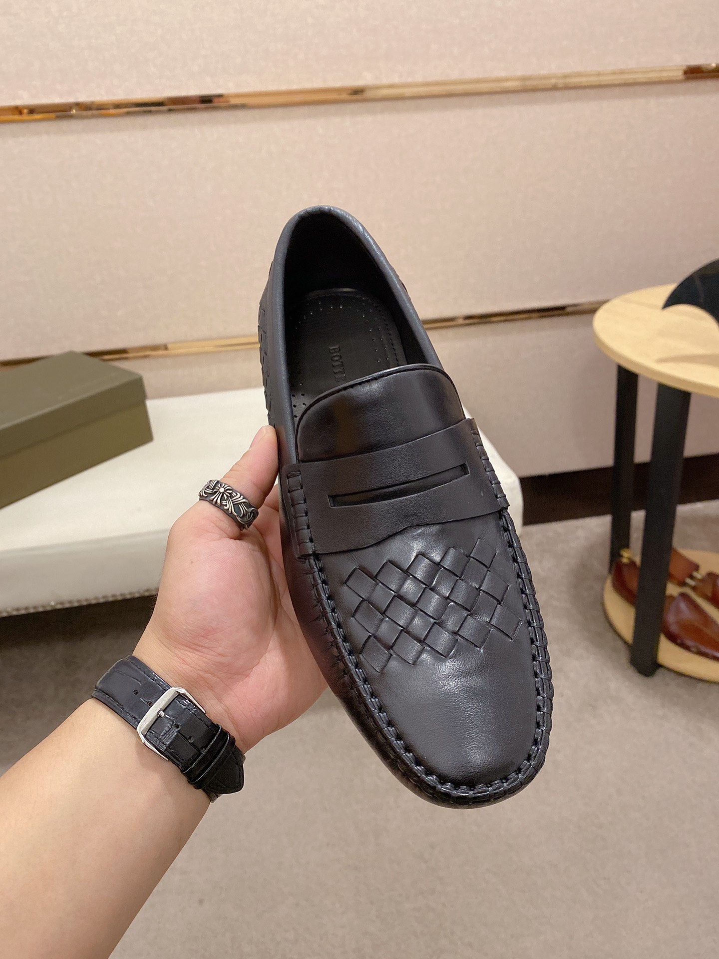 J0 牛里+牛垫Bottega Veneta 最新爆款‼️休闲男鞋 鞋面进口头层牛皮➕全进口牛皮内里✔️做工精致、脚感极佳,特殊橡胶底✔️,炫酷时尚,最新流行、时尚大底、赶紧行动吧。